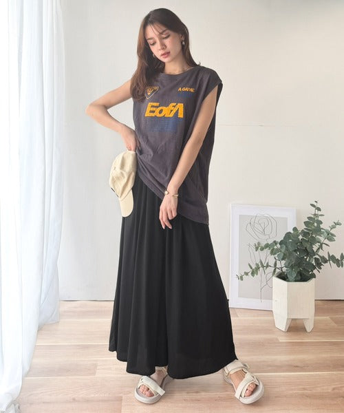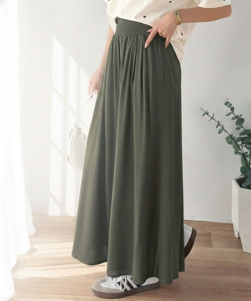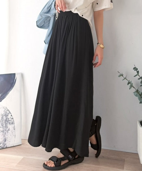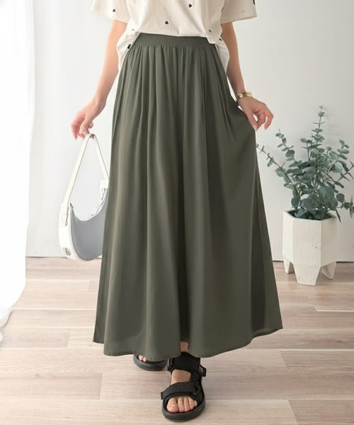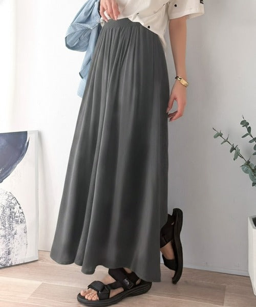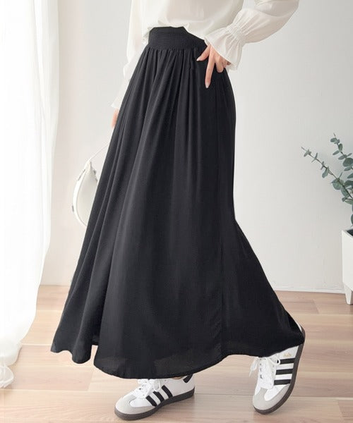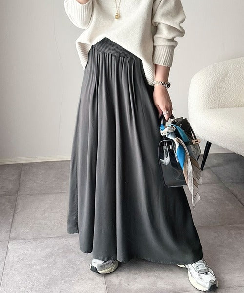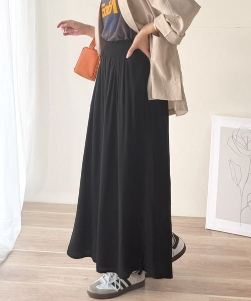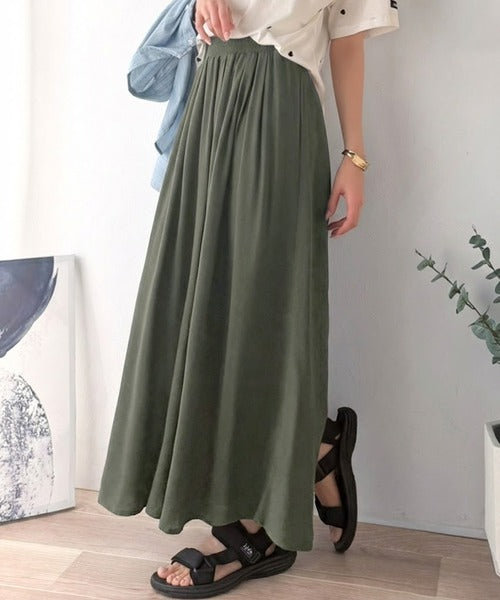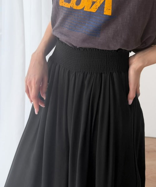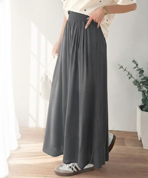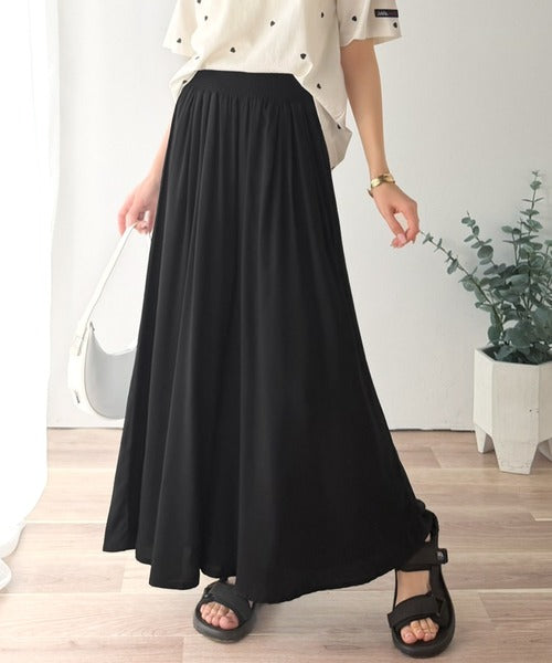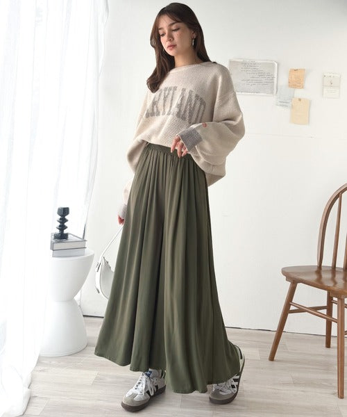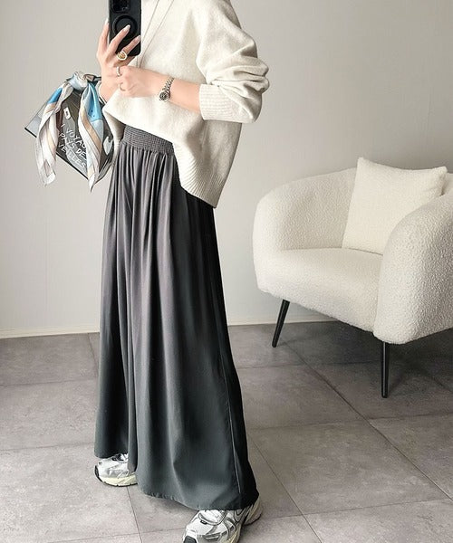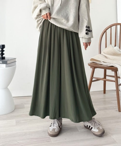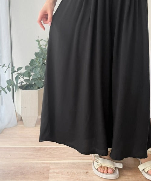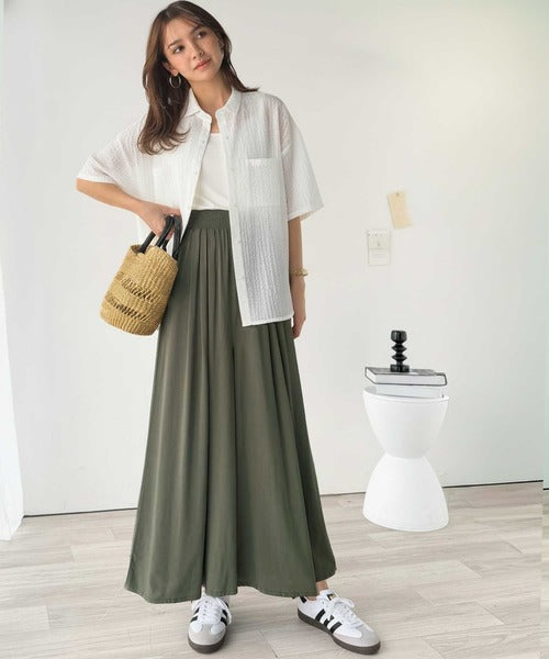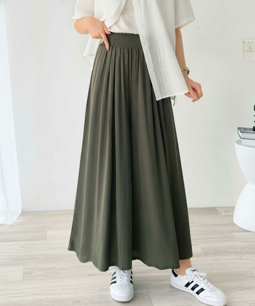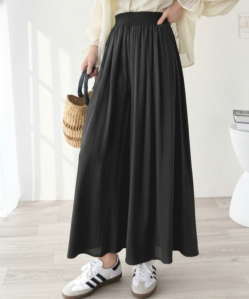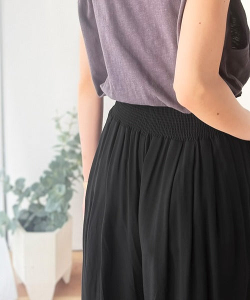 さらり、軽やか。リラックスstyleキマる。レーヨン素材ウエストギャザーフレアシルエットワイドパンツ ce1015084