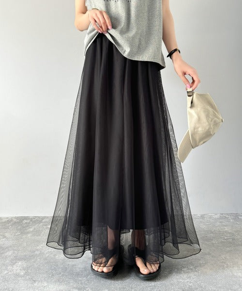 ダブルチュールでボリュームたっぷりの表情豊かなチュールスカート。