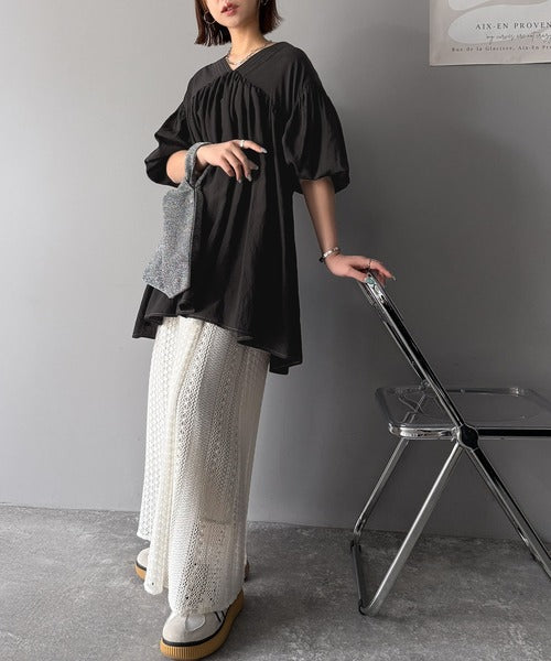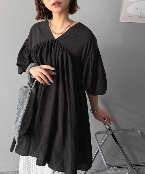 ふんわり袖とボリューム感のあるギャザーデザインがトレンド感満載!