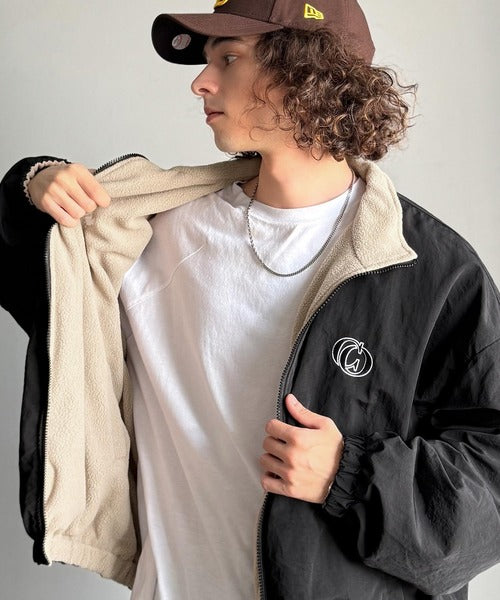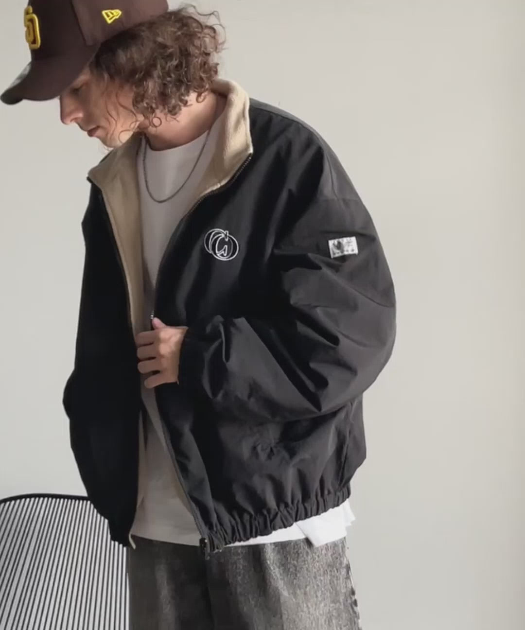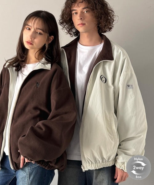 【Classical Origin】「これ1着で実質2着分の価値。」ナイロン×ボア2wayリバーシブル胸元刺繍ブルゾン/2WAY Reversible Nylon Boa Blouson co1150079