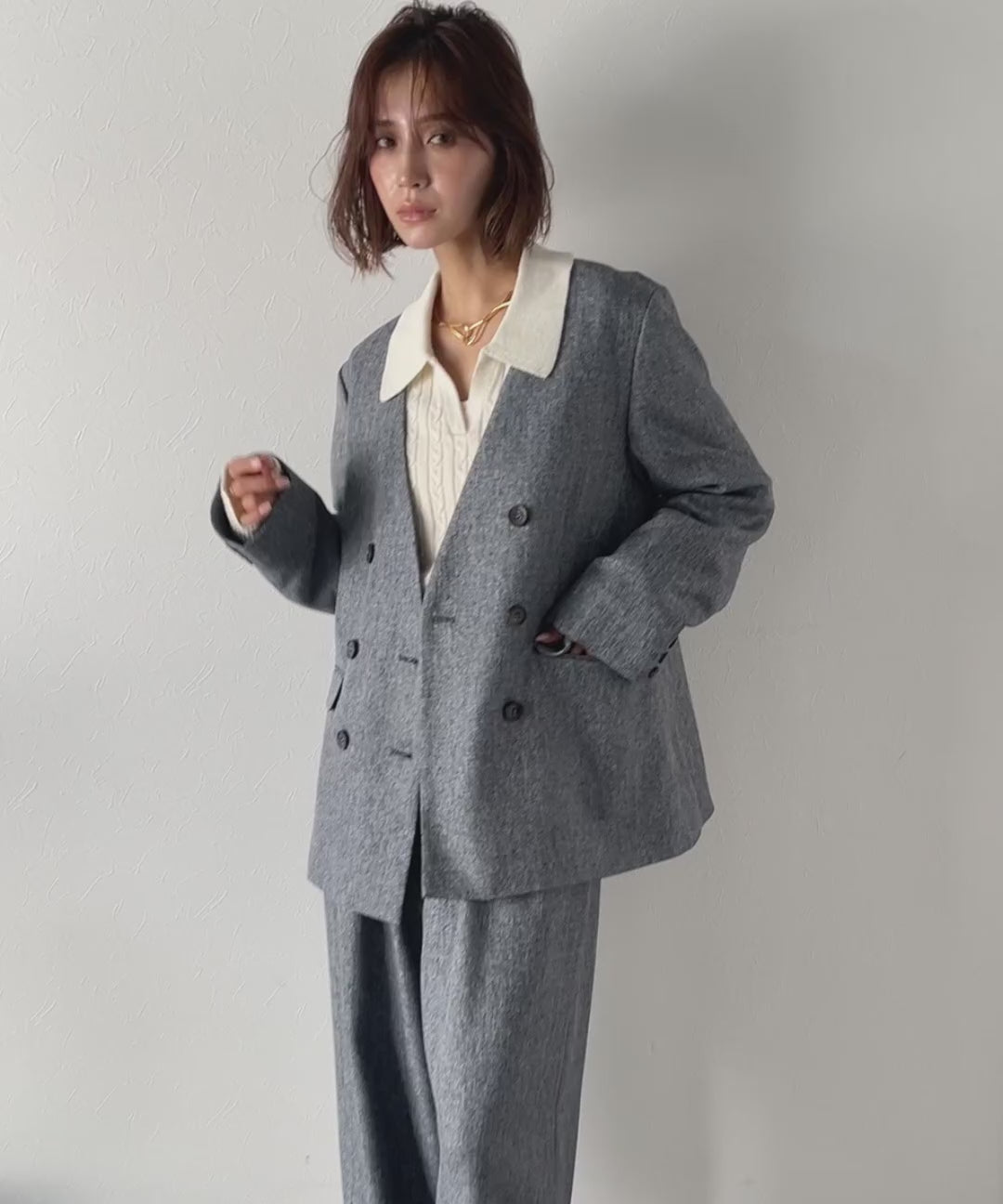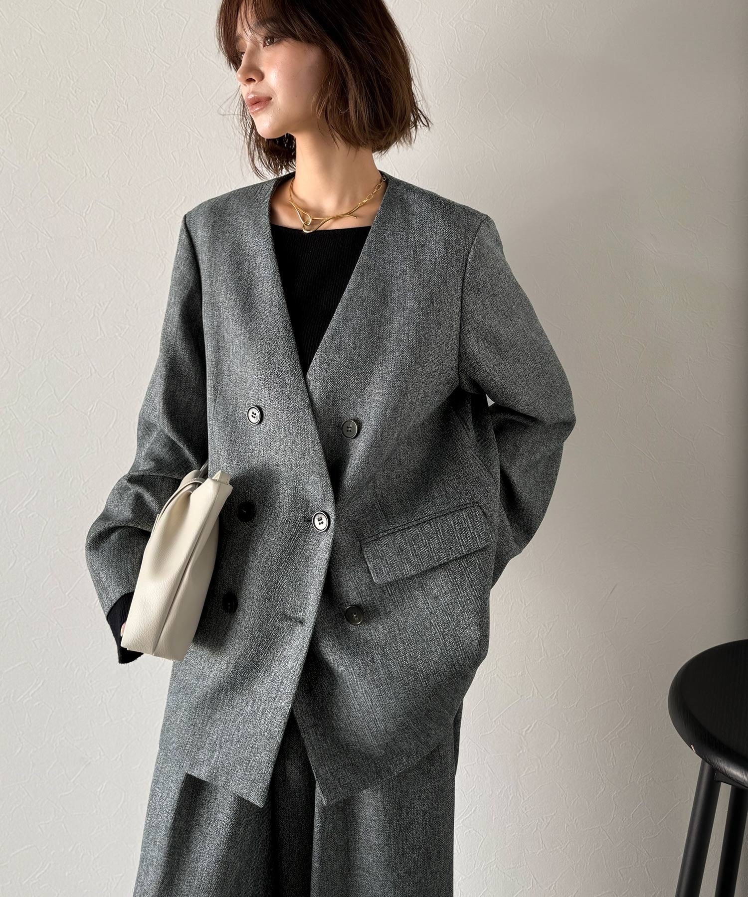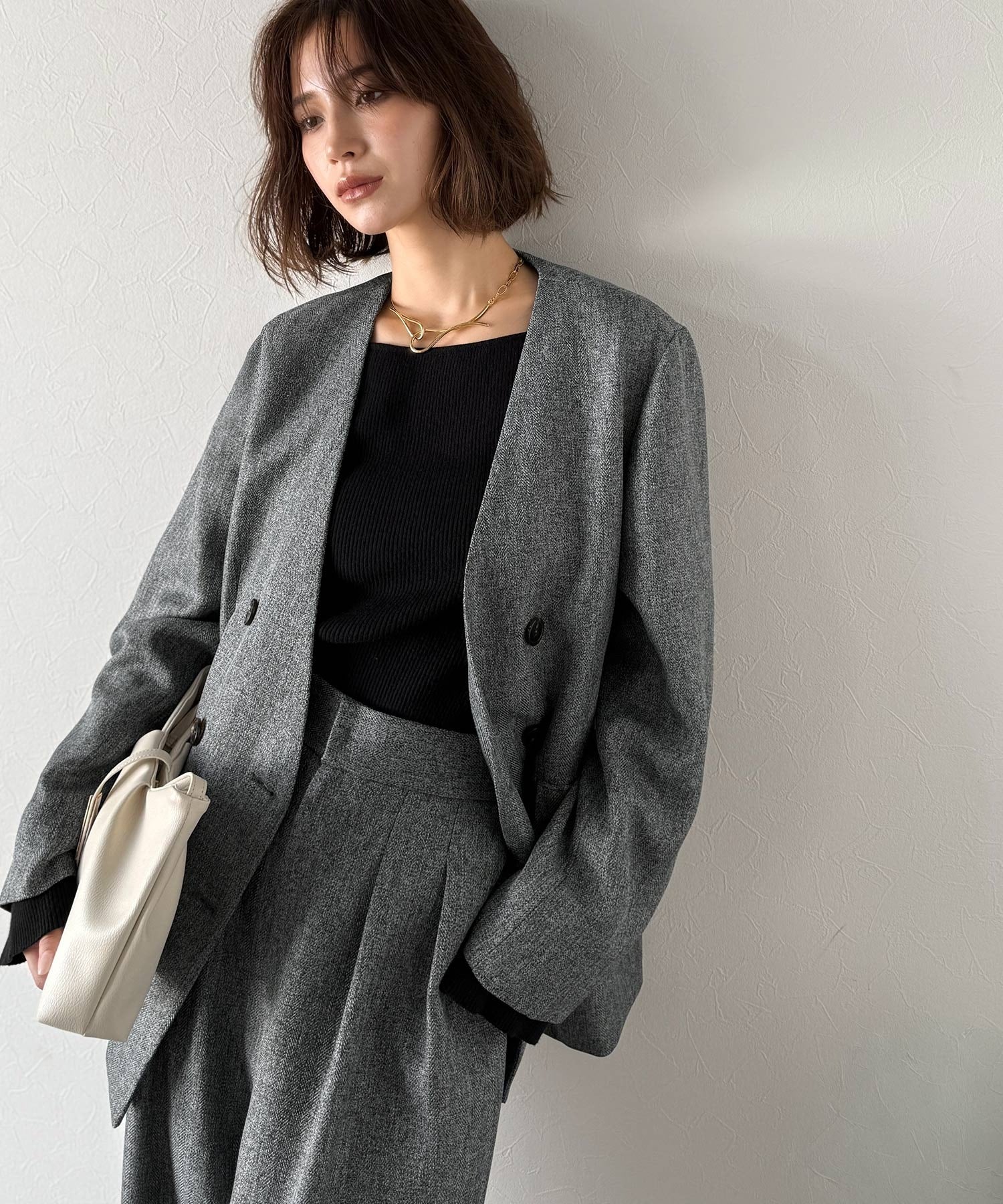 パンツやデニムと合わせてカジュアルダウンするのはもちろん、同素材のタックワイドパンツとセットアップにすれば、シーンを選ばず秋冬シーズンを通して活躍する大人のワードローブに。
