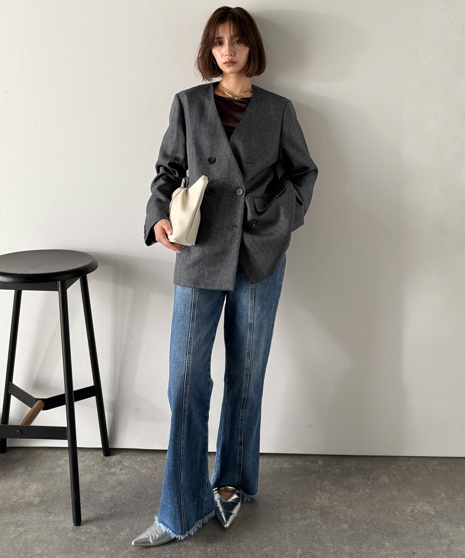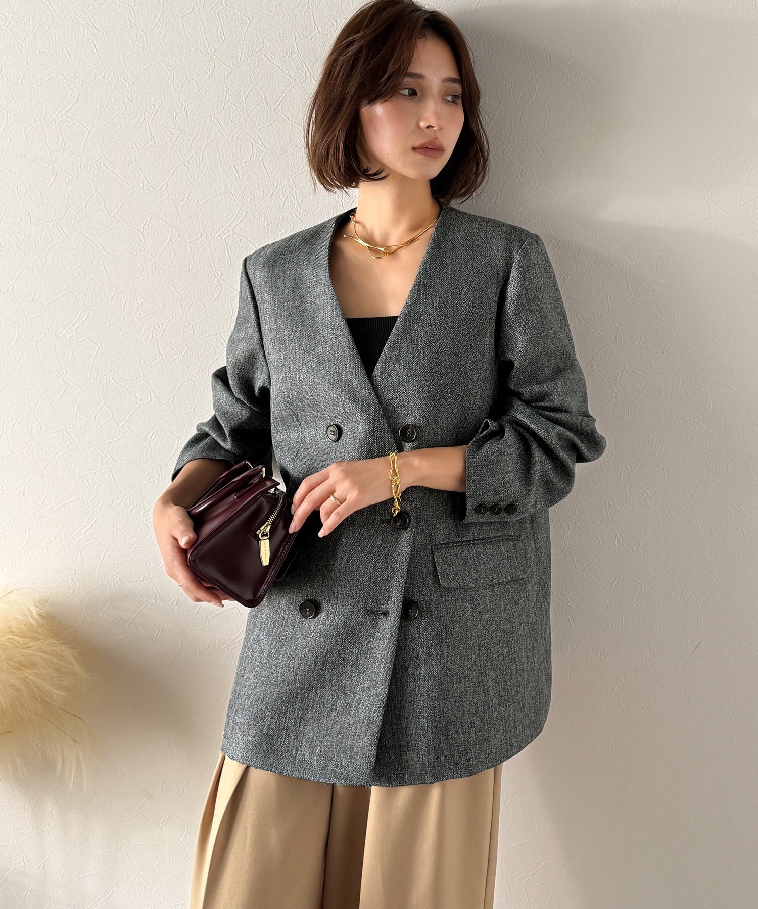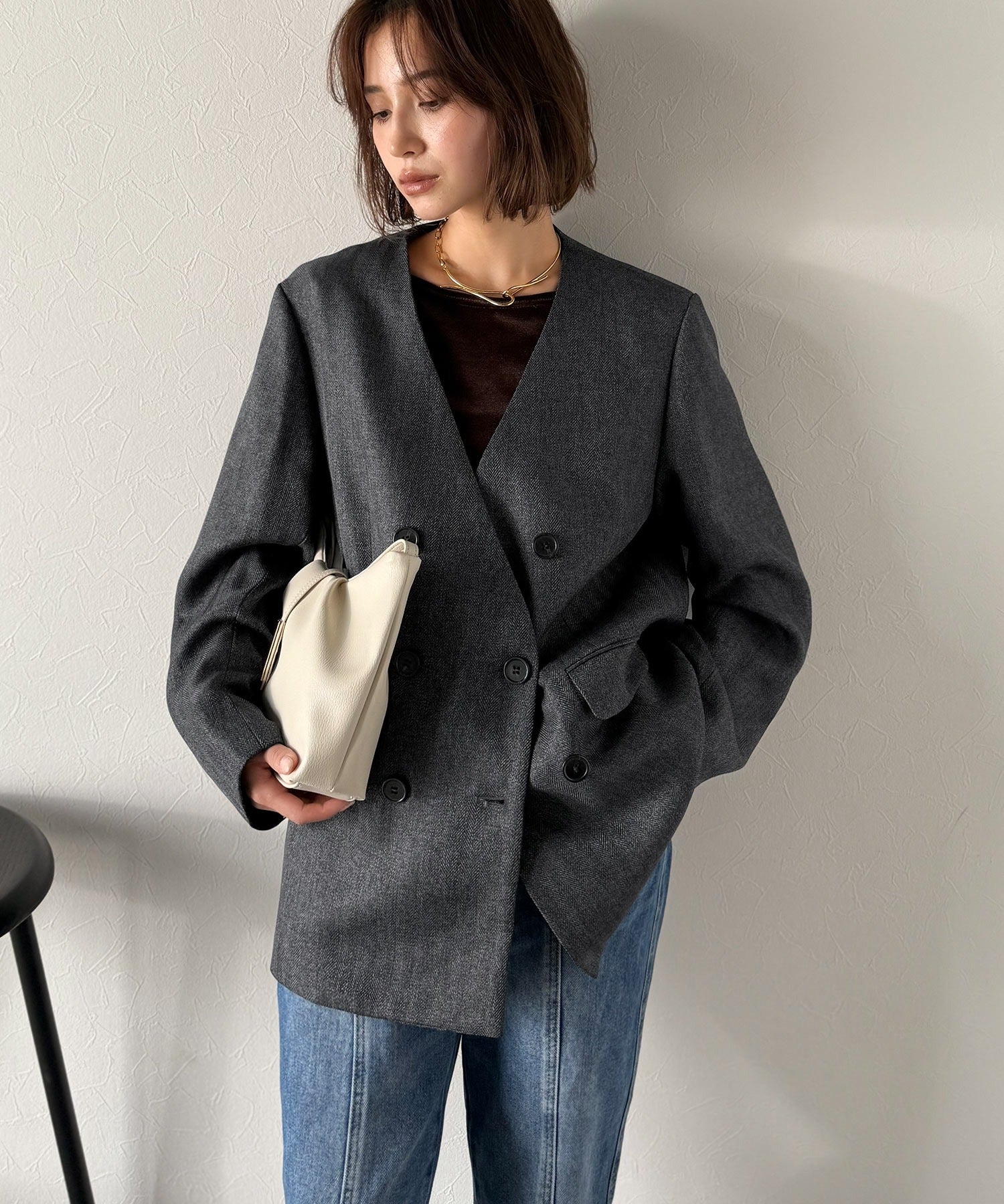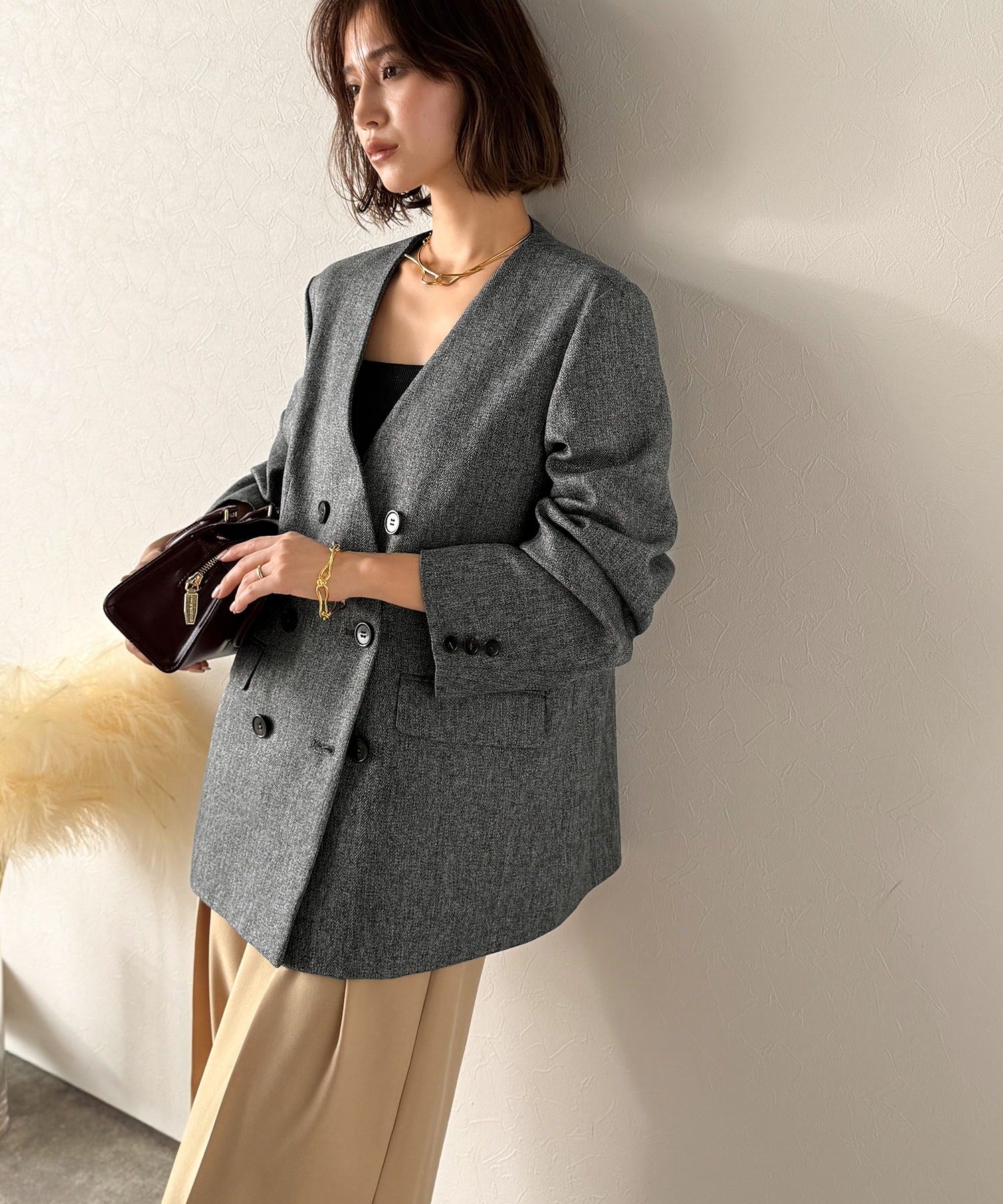パンツやデニムと合わせてカジュアルダウンするのはもちろん、同素材のタックワイドパンツとセットアップにすれば、シーンを選ばず秋冬シーズンを通して活躍する大人のワードローブに。