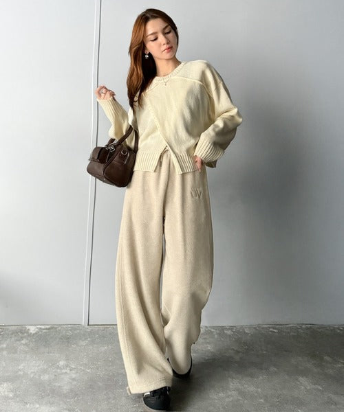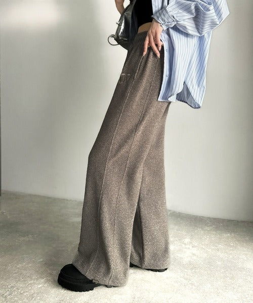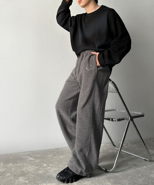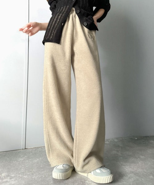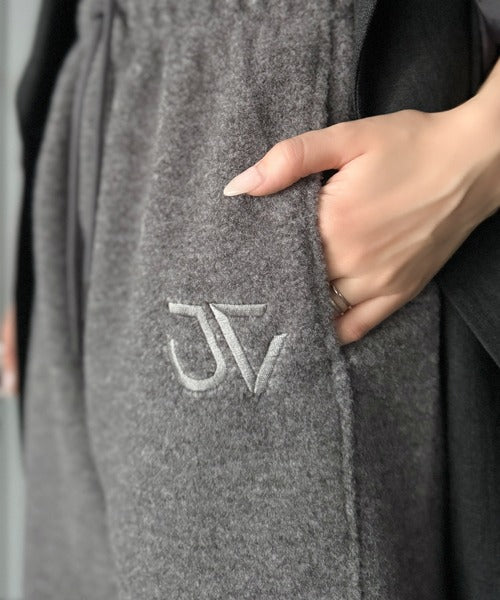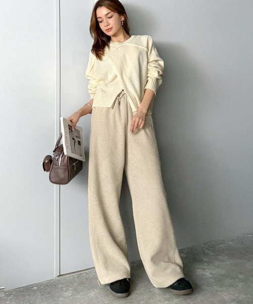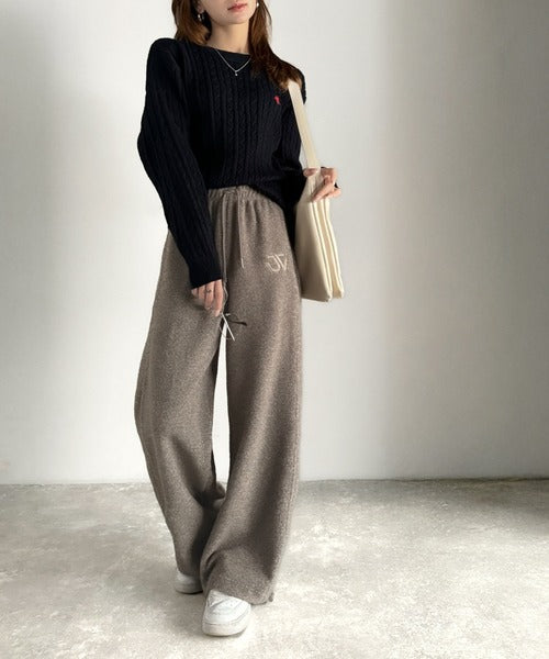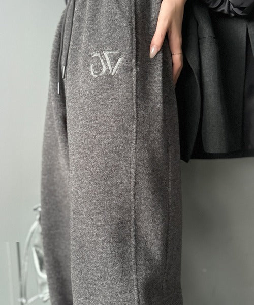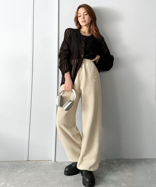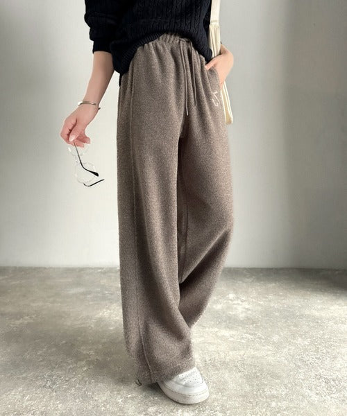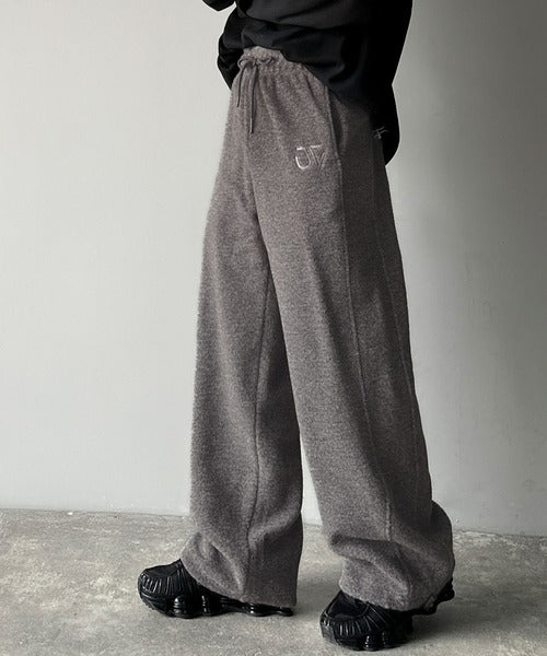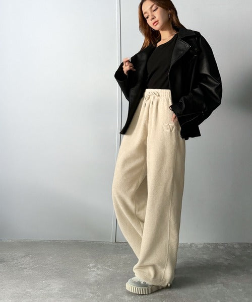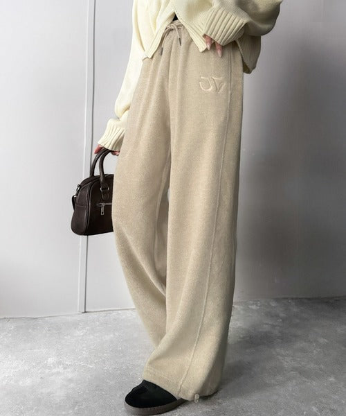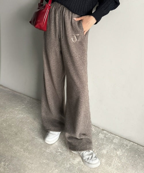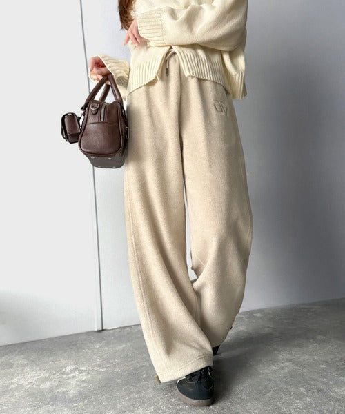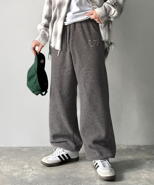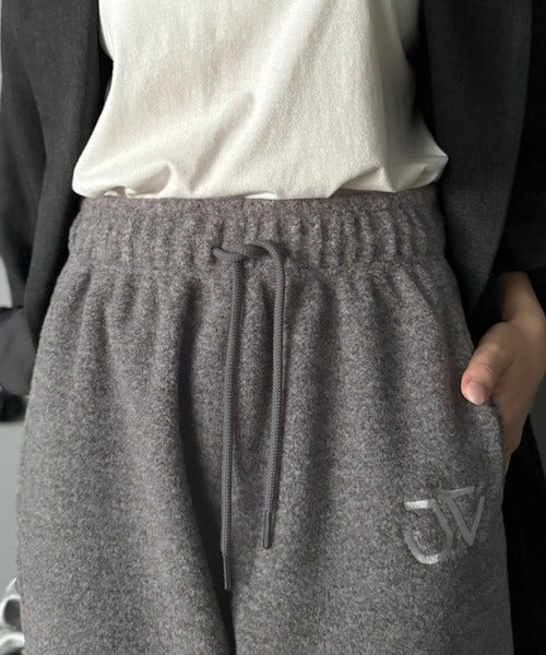 《JaVaジャバコラボ》ぬくぬく暖か。裾ドロストロゴ刺繍ミックスフリースパンツ jm0789010