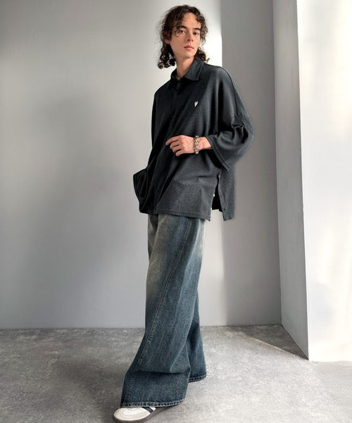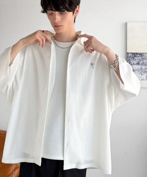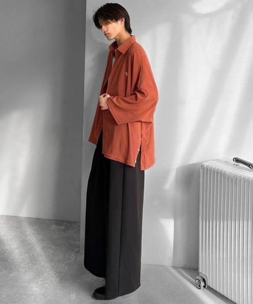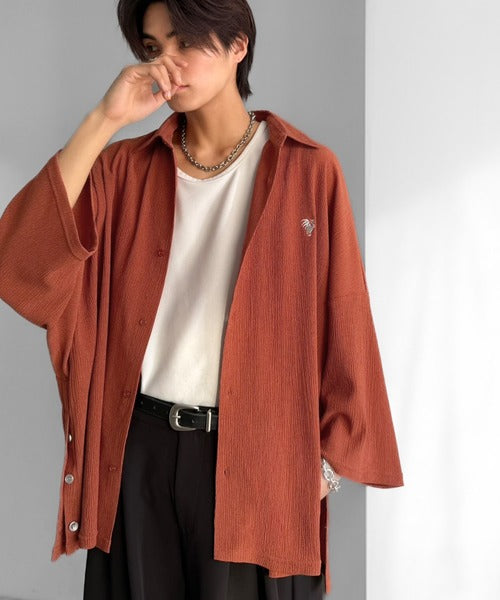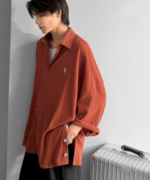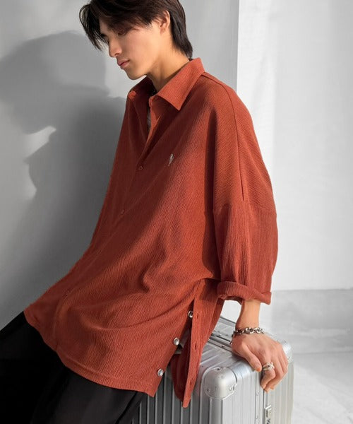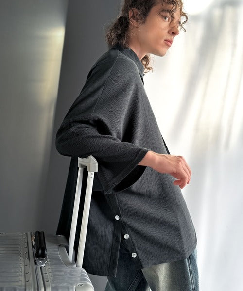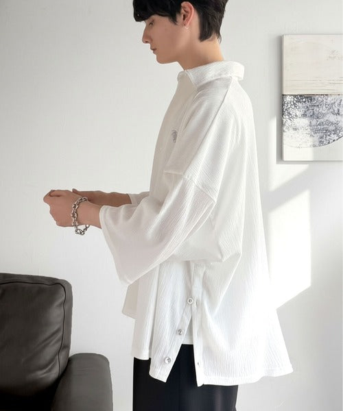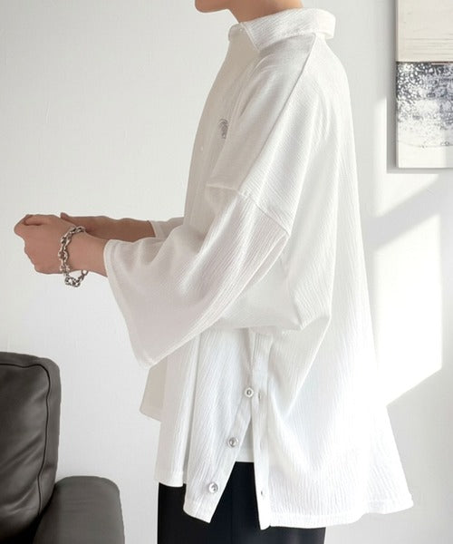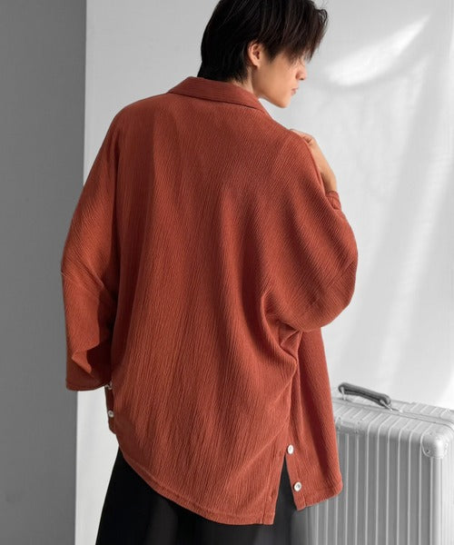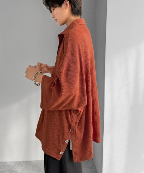 《JaVaジャバコラボ》スリットボタン仕様リンクル加工オーバーサイズドルマンシャツ jo1010041
