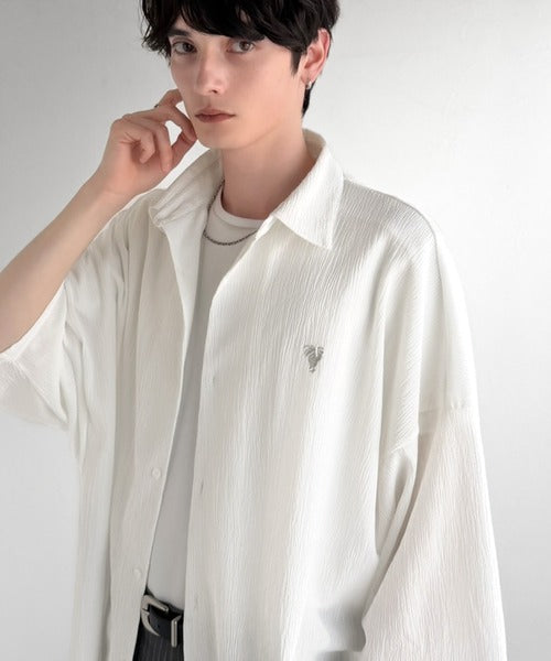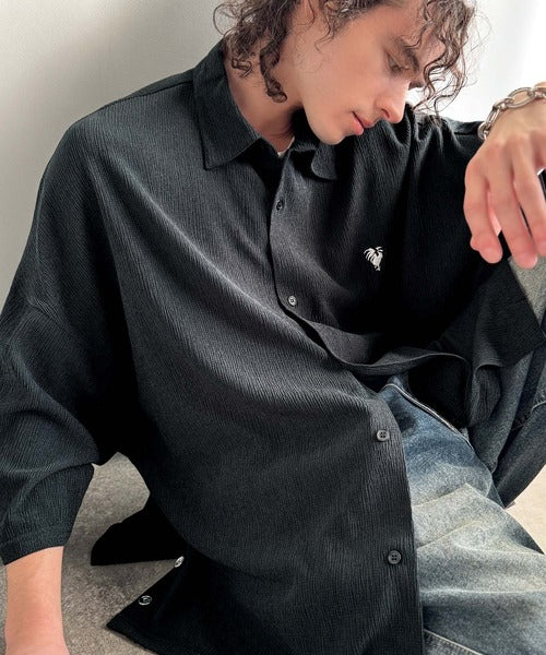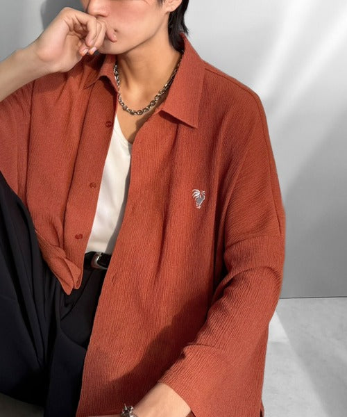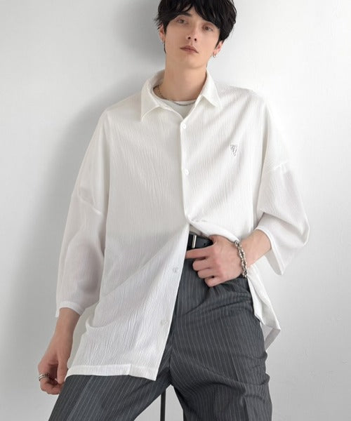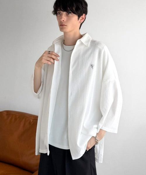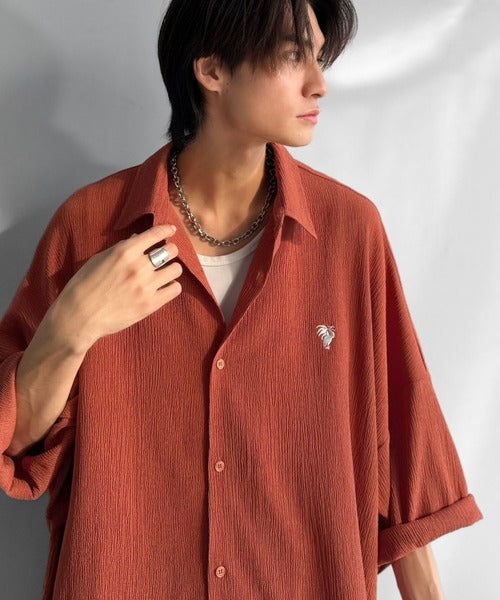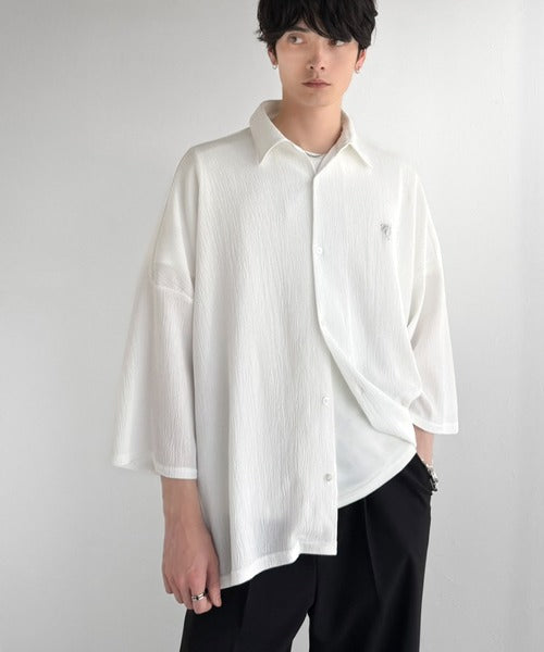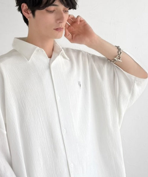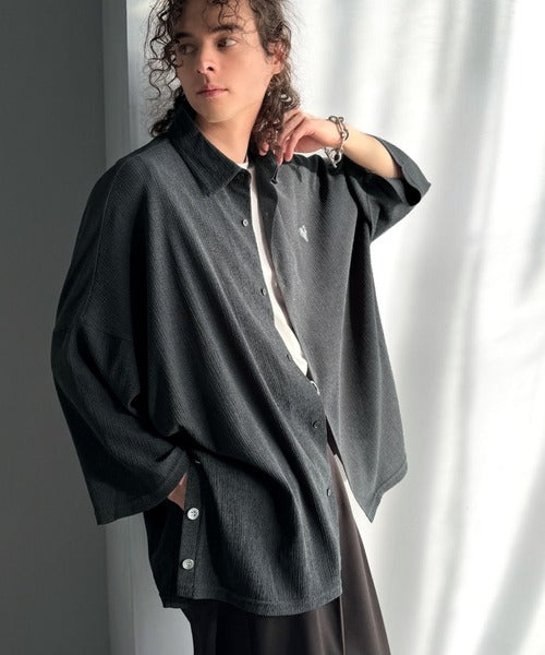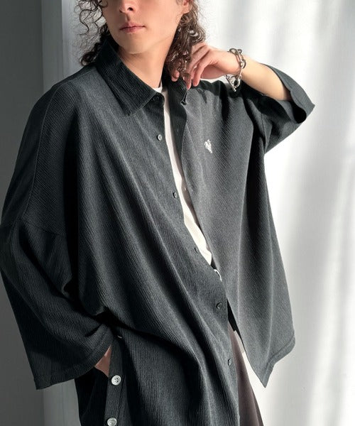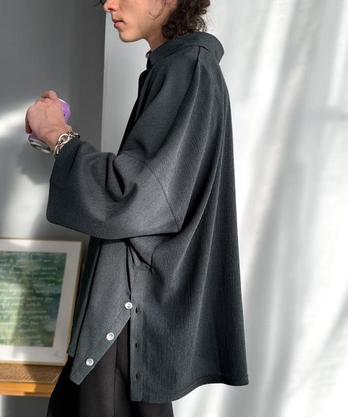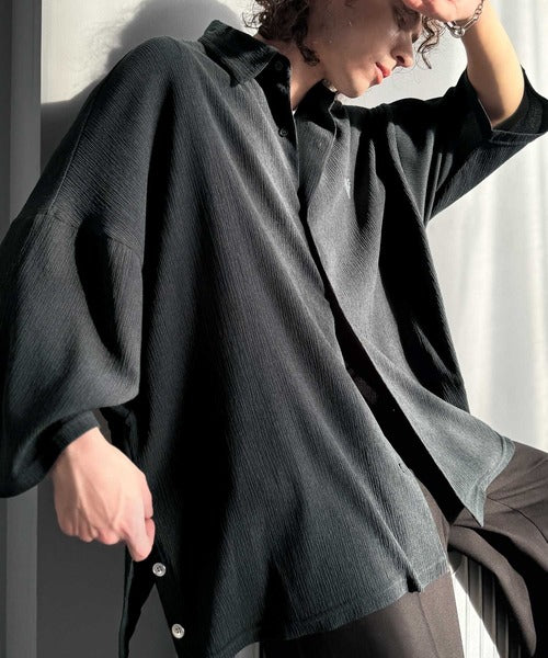 豊かな風合いのリンクルワッシャー素材を採用したオーバーサイズシャツ。