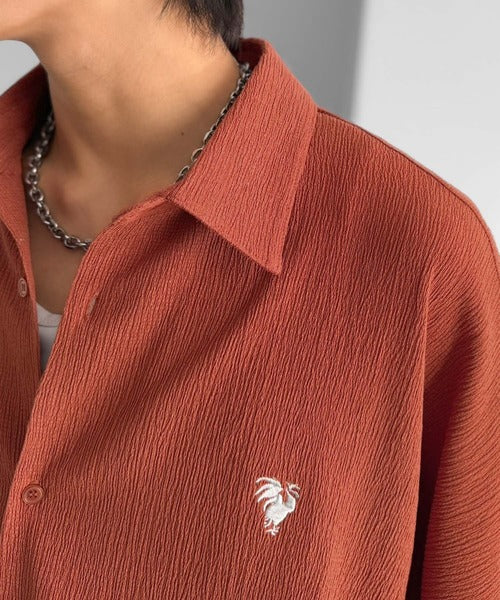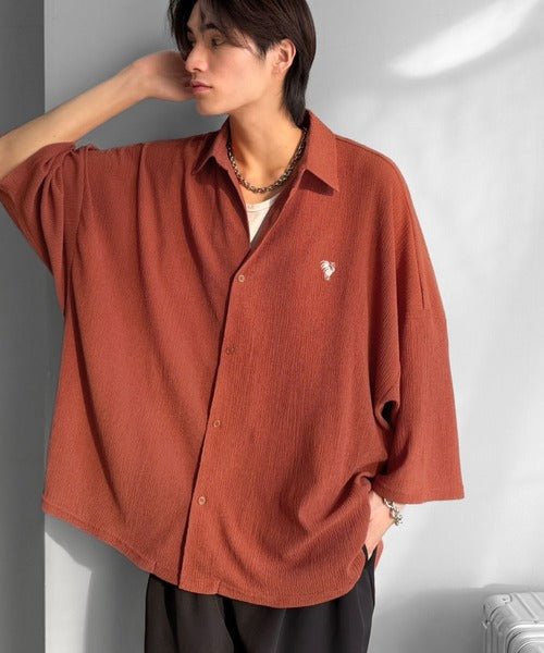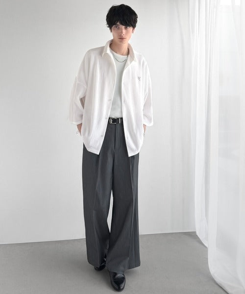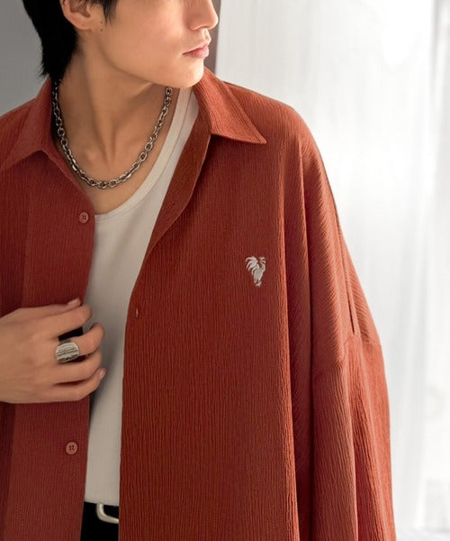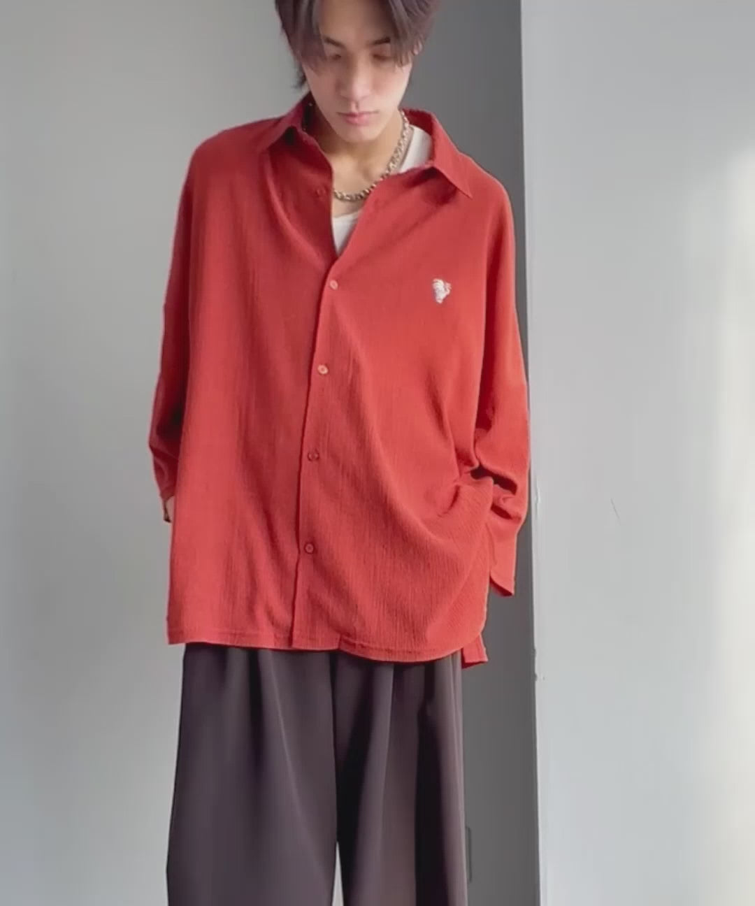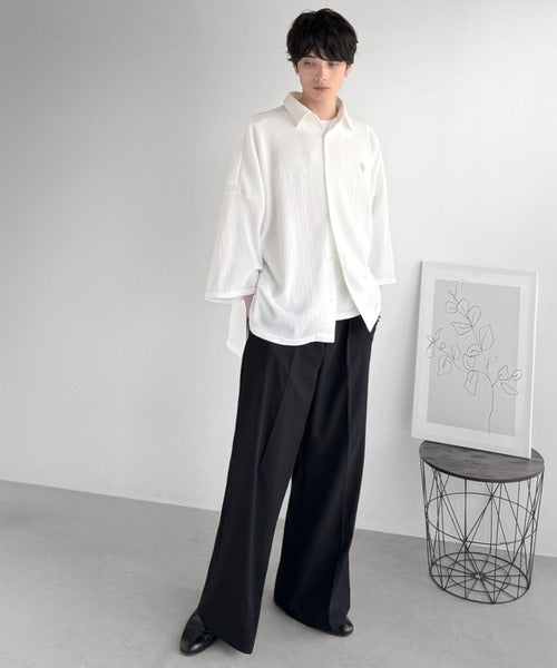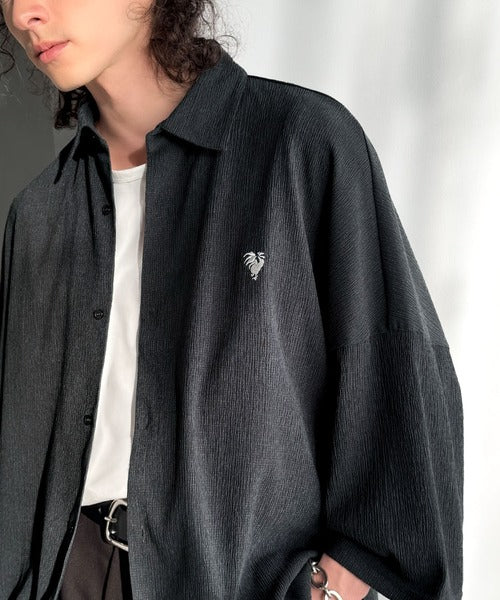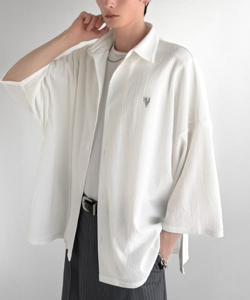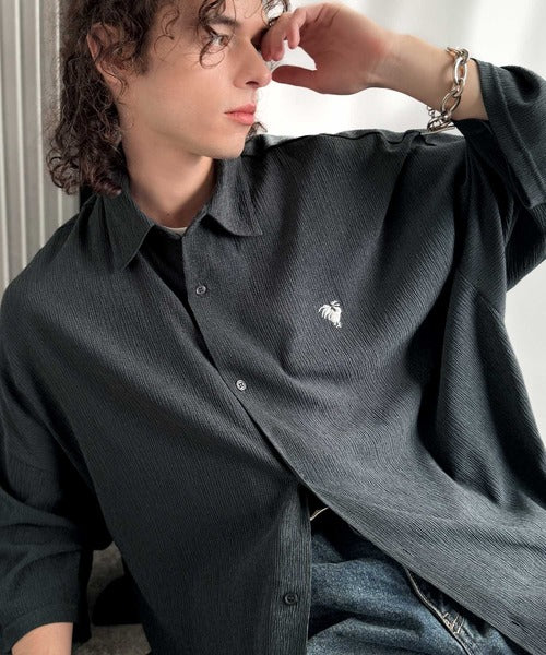 豊かな風合いのリンクルワッシャー素材を採用したオーバーサイズシャツ。
