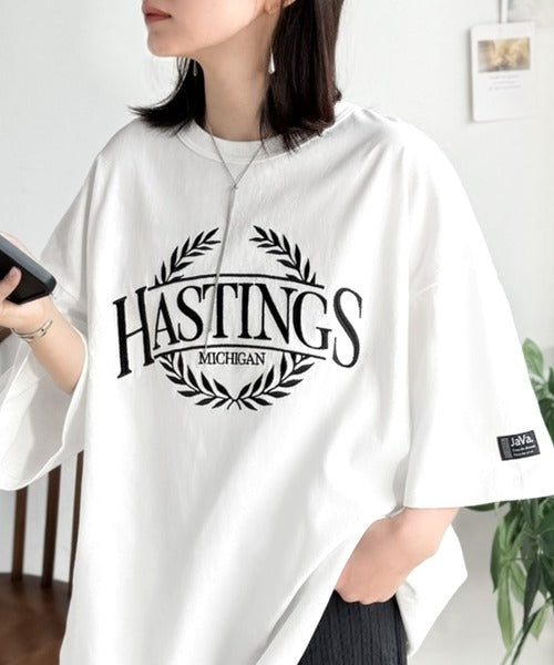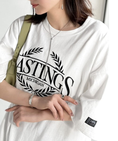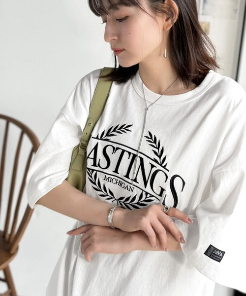 《JaVaジャバコラボ》スタイリングに“雰囲気”を足す。綿100%オーバーサイズ古着デザイン風刺繍Tシャツ(半袖) jv1330087