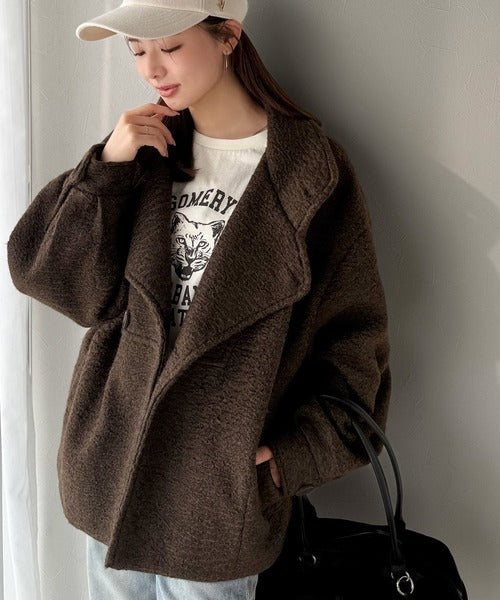 【mily bilet】コクーンで魅せる。ウールライクリングニットスタンドカラーコート mi1019095