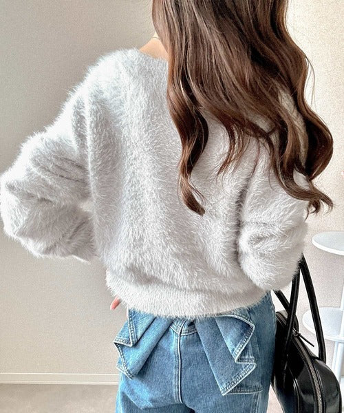 【mily bilet】ふわっと贅沢、きらめきビジューが映えるシャギーカーデ♪フェザーシャギーニットカーディガン mi1029133