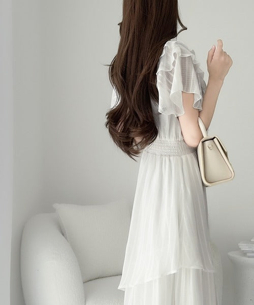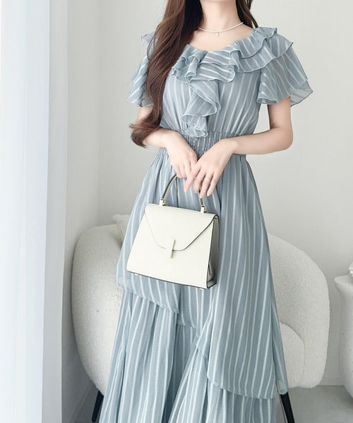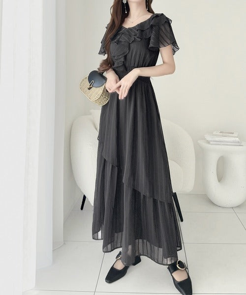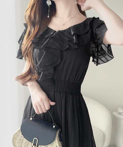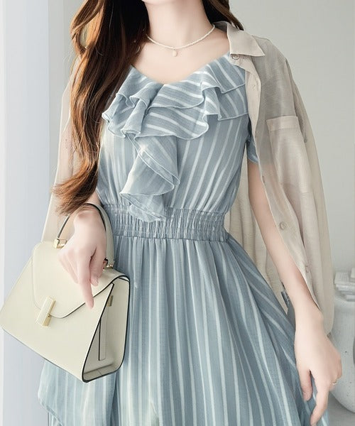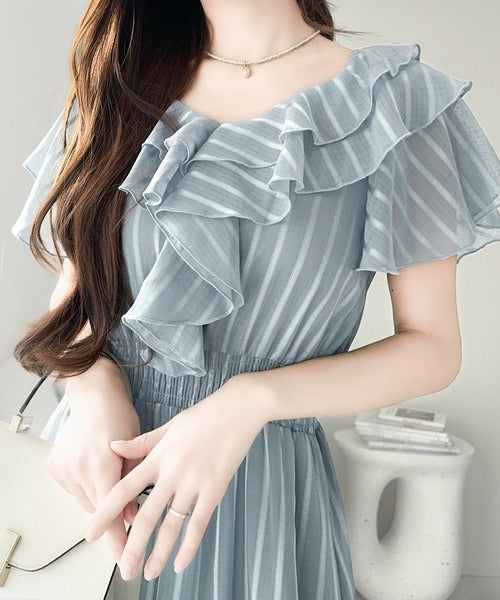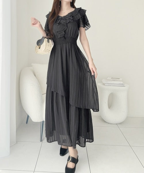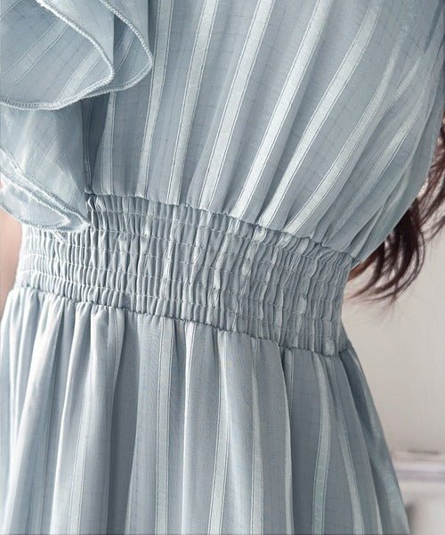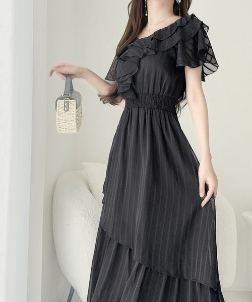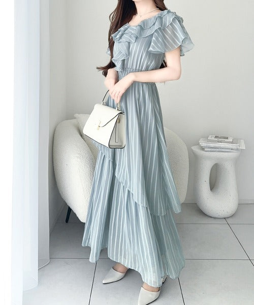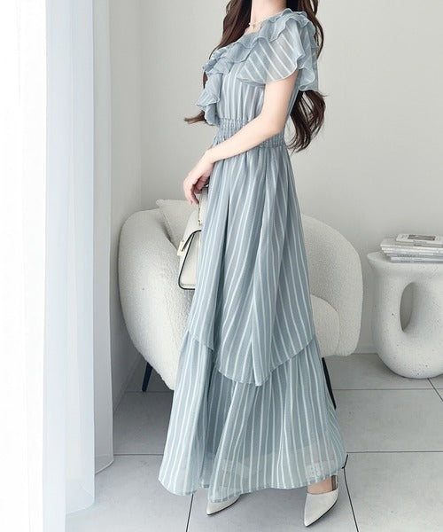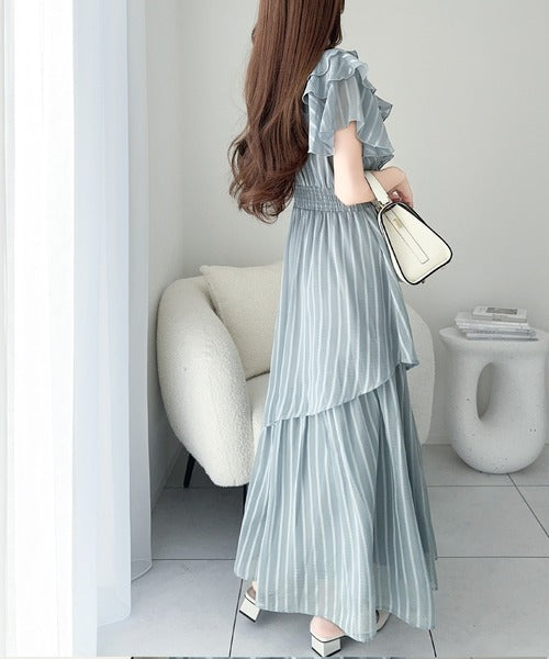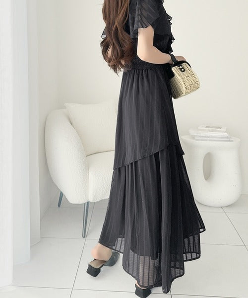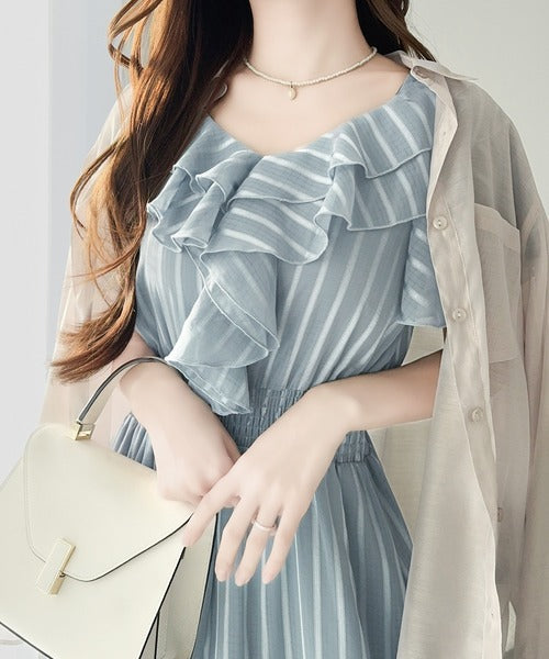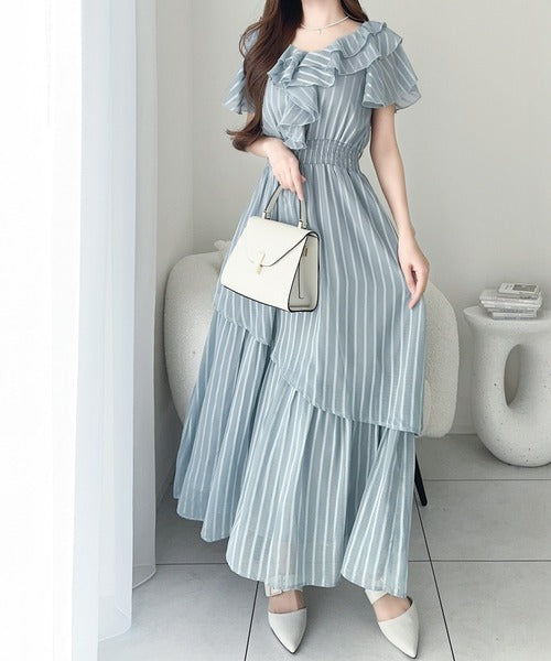 【mily bilet】揺れ感、透け感、ときめき感♪シアーストライプアシメスカートワンピース(ロング丈) mi1139106