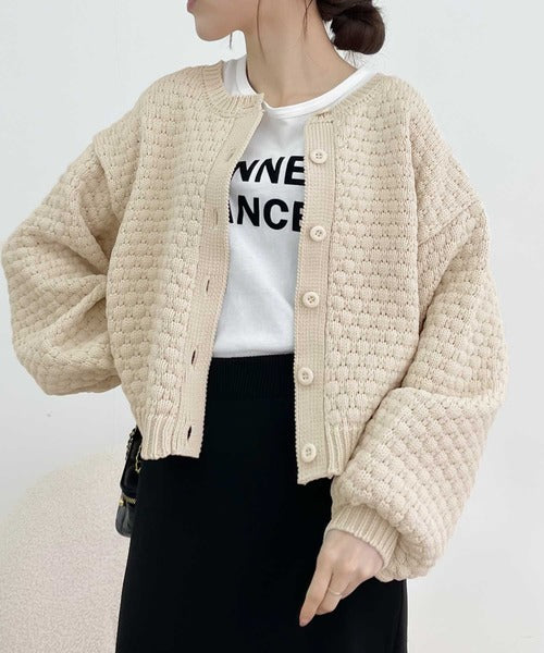 【mily bilet】印象的1枚。2wayぽこぽこ軽量クロップド丈ニットカーディガン mi1149004