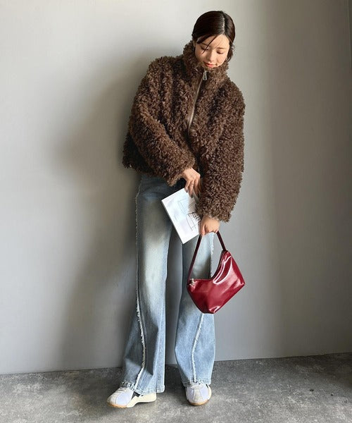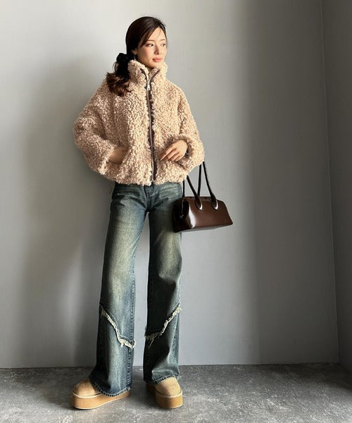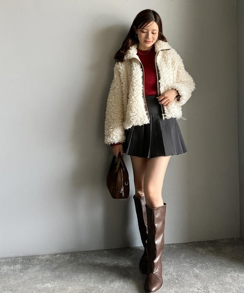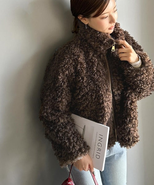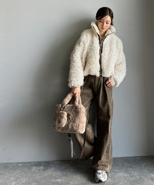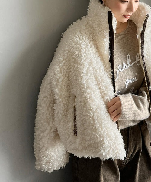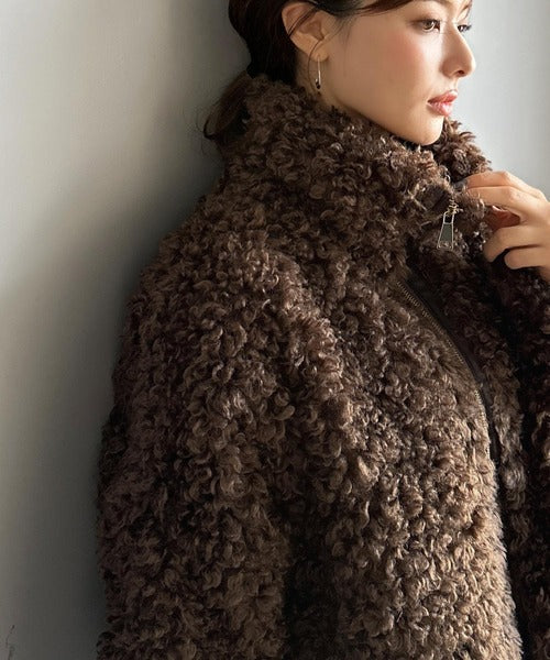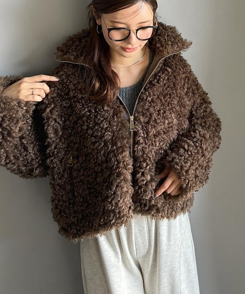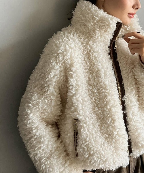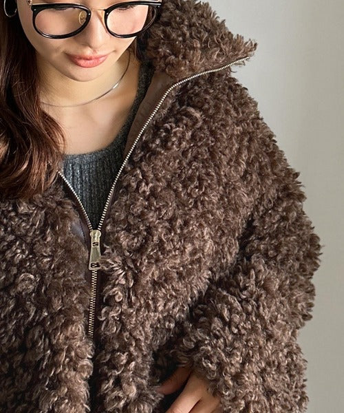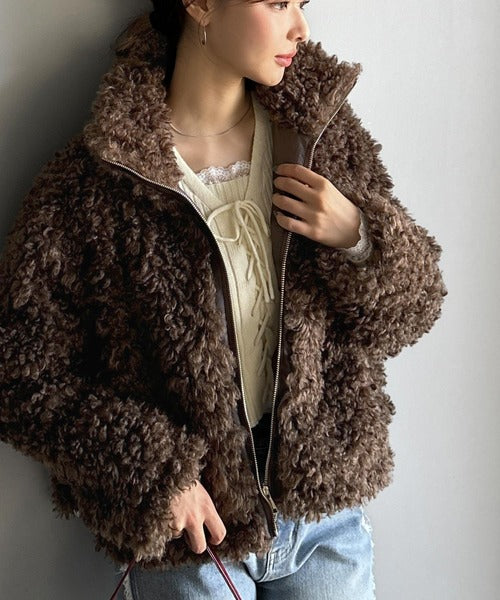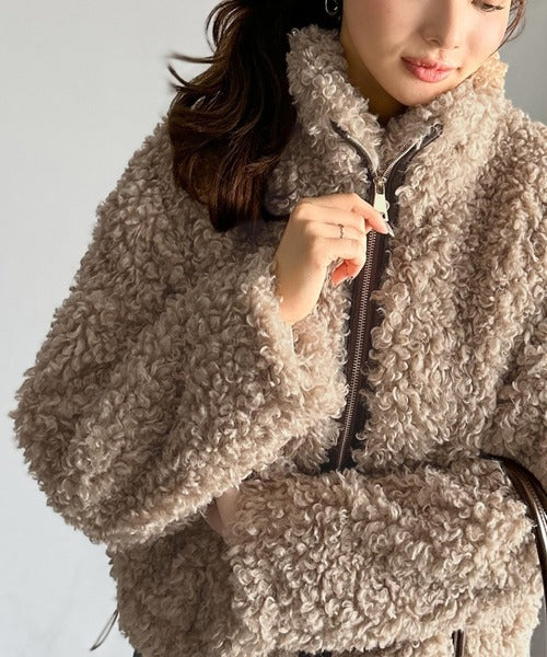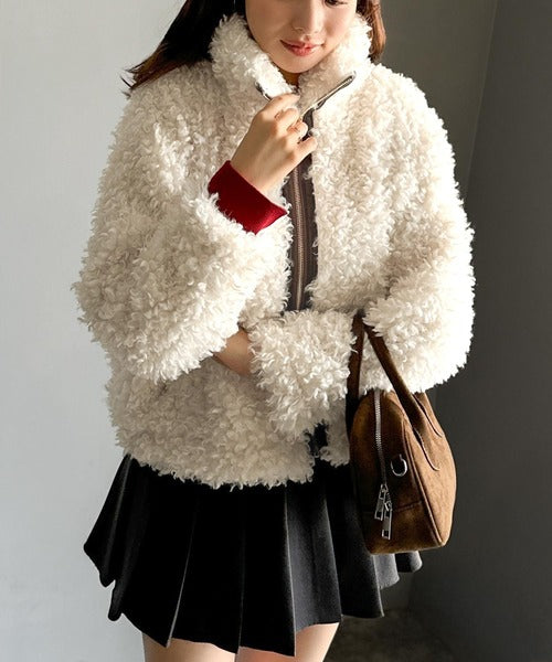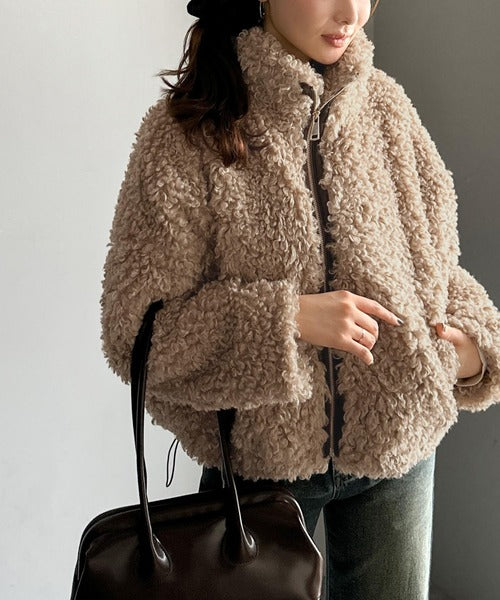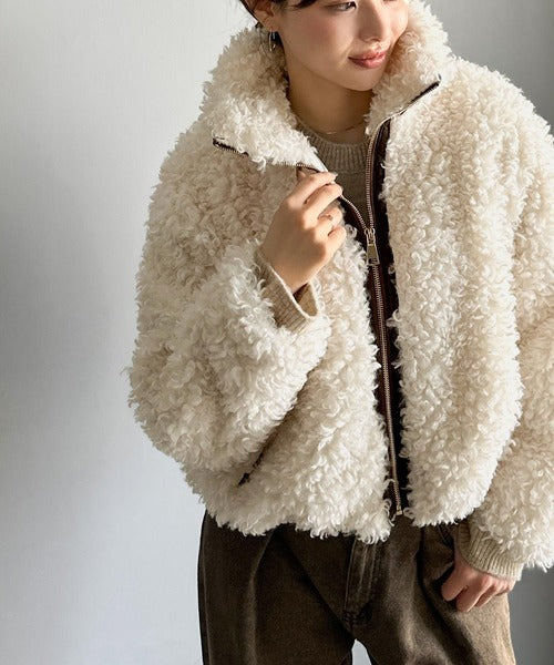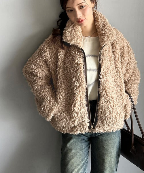 柔らかなプードル調のフェイクファーを使用したショートブルゾン。