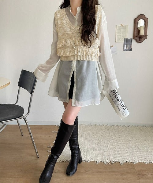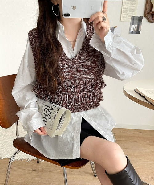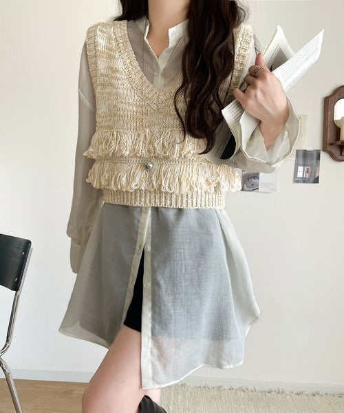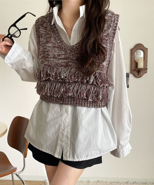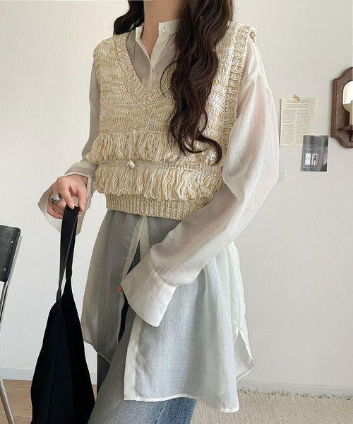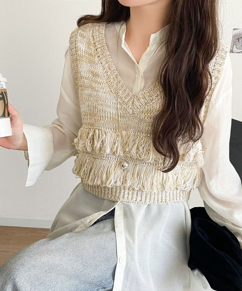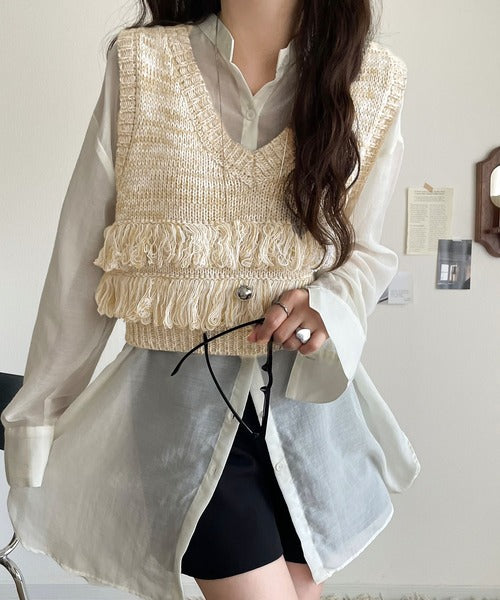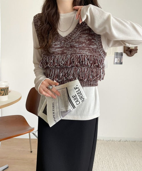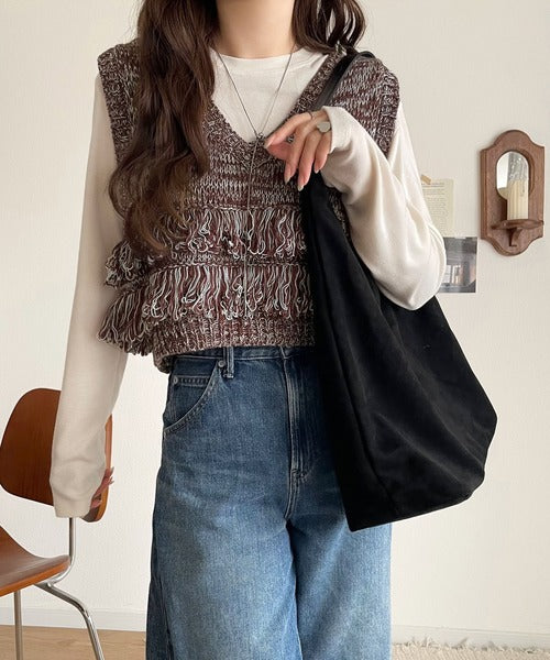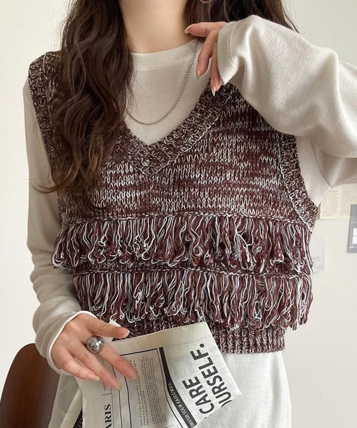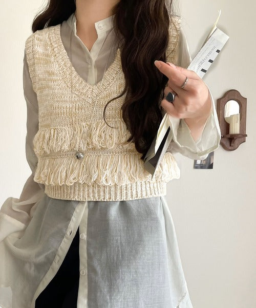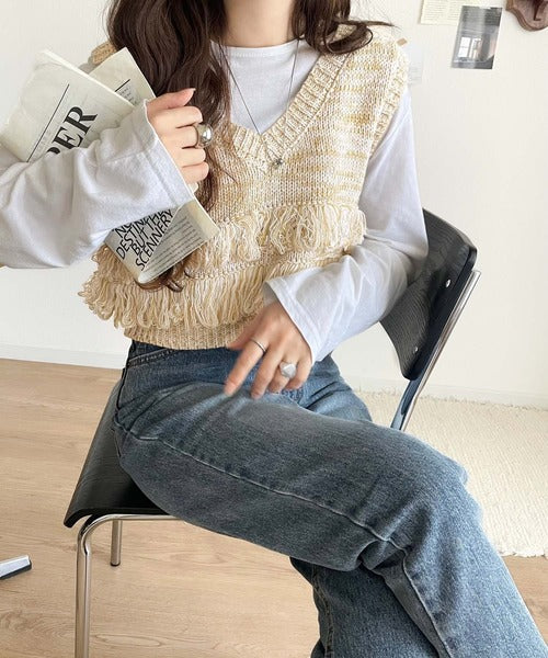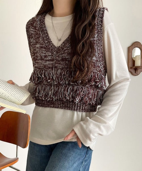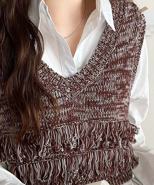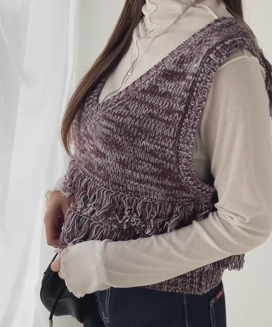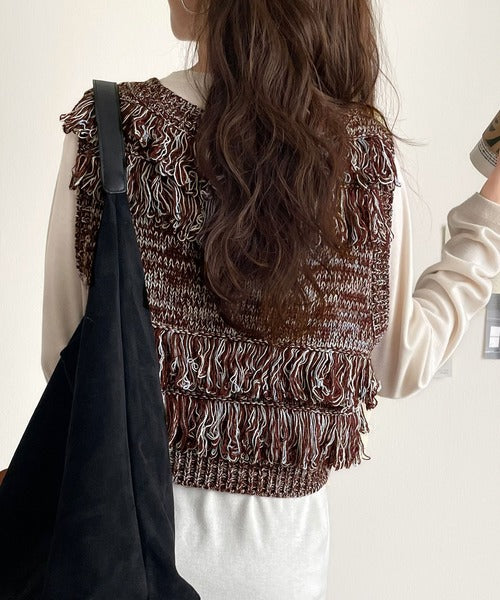 ループ編みのフリンジディテールがポイントのニットベスト。