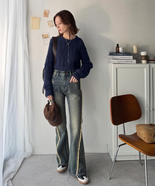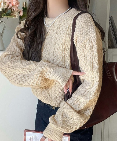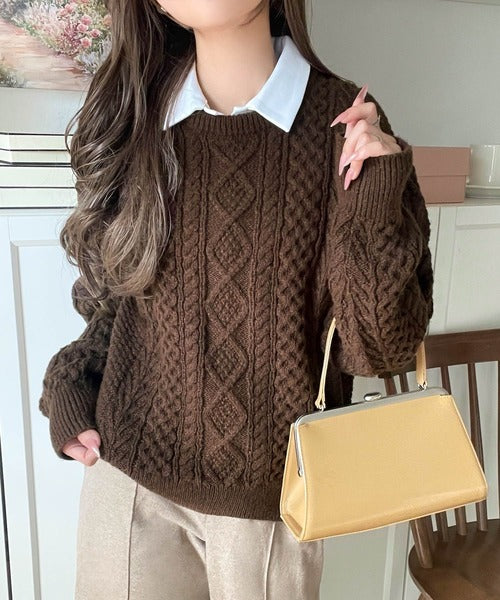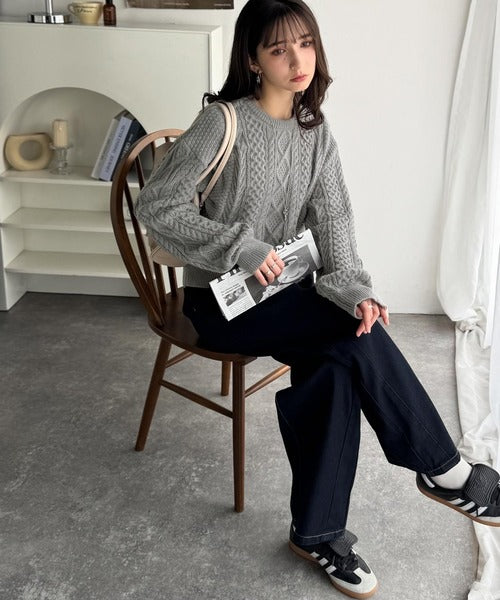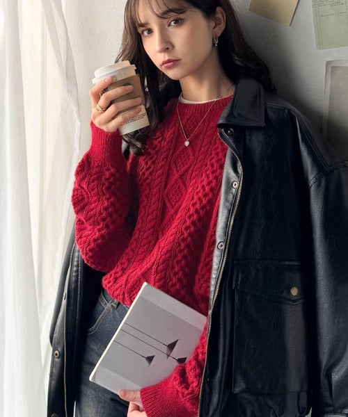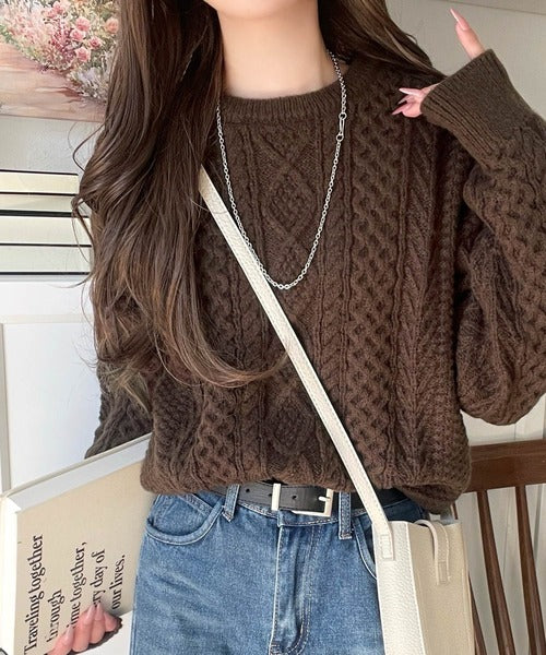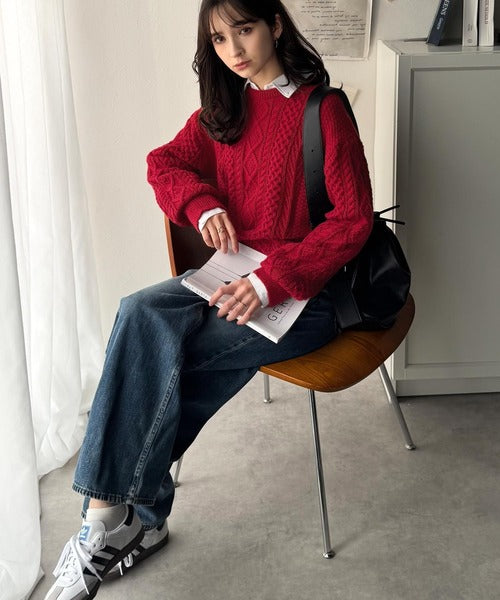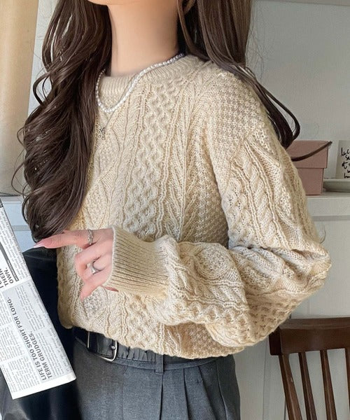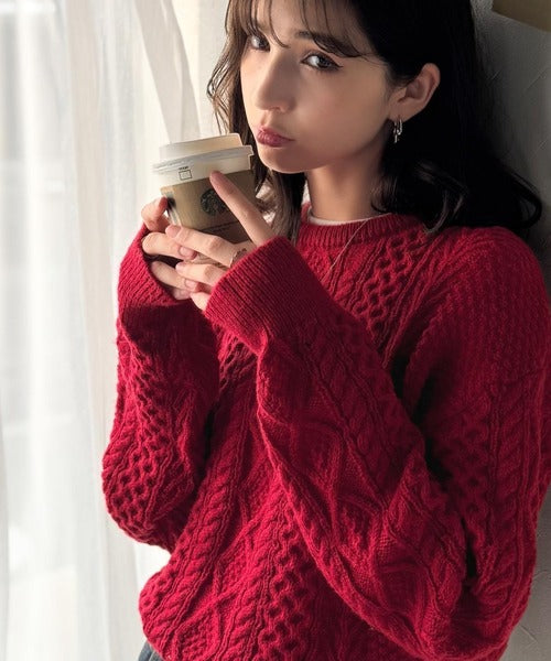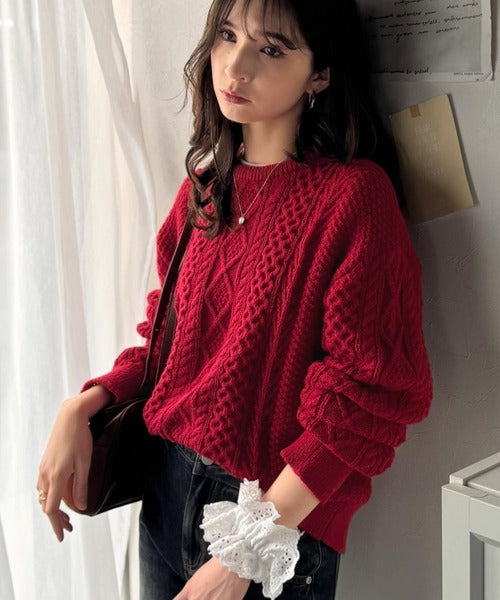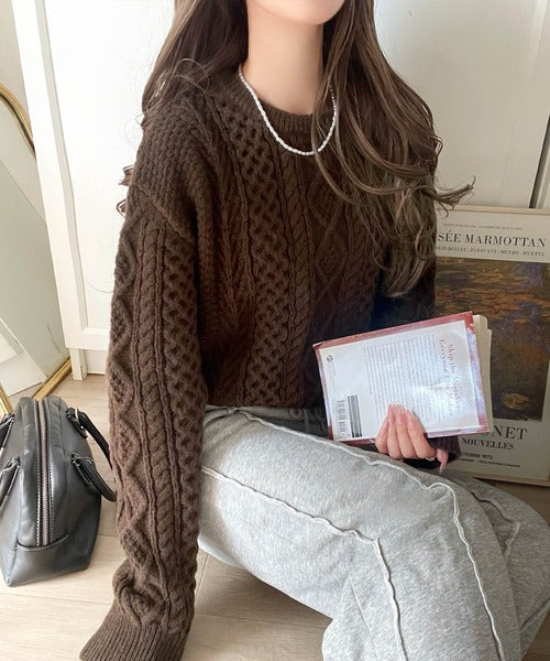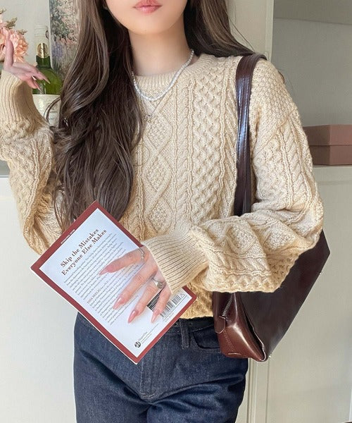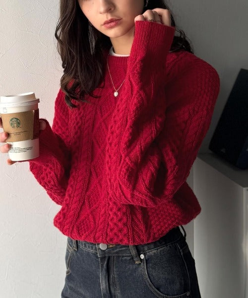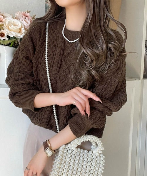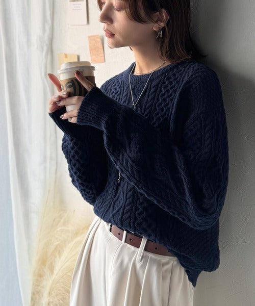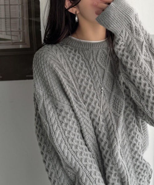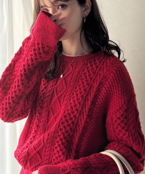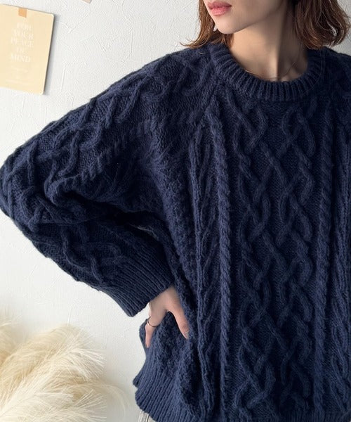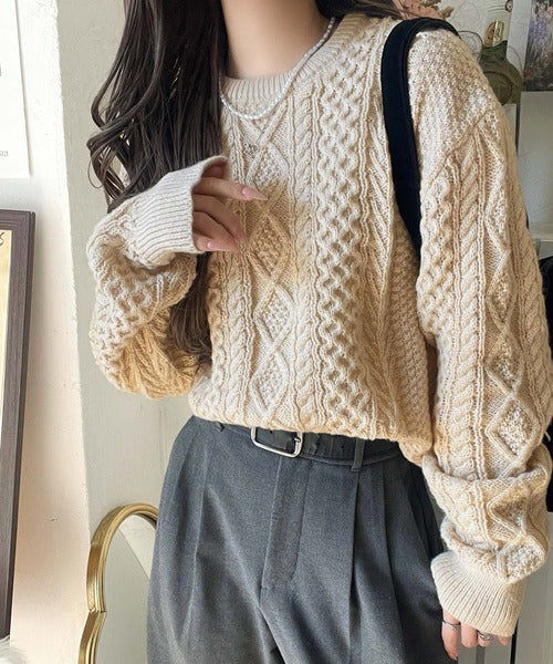 クラシカルなアラン編みが映える♪秋冬ムードをグッと高めるケーブルニットセーター ce1020297