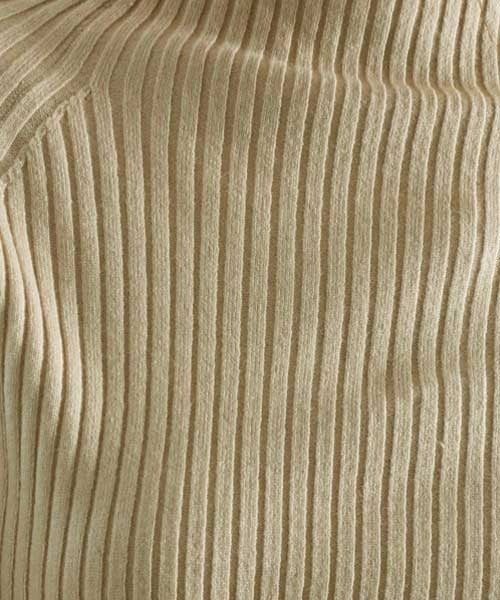 柔らかな肌触りと程よい収縮が心地いいリブ編みニット。