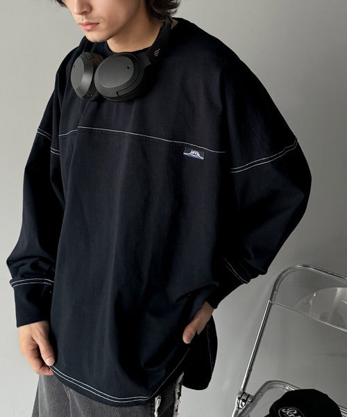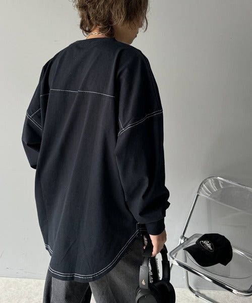 胸元の切替えデザインがこなれ感漂う、フットボールTシャツ。