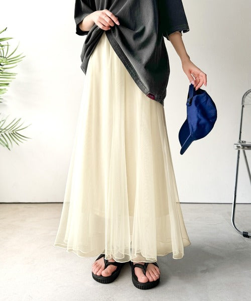 ダブルチュールでボリュームたっぷりの表情豊かなチュールスカート。