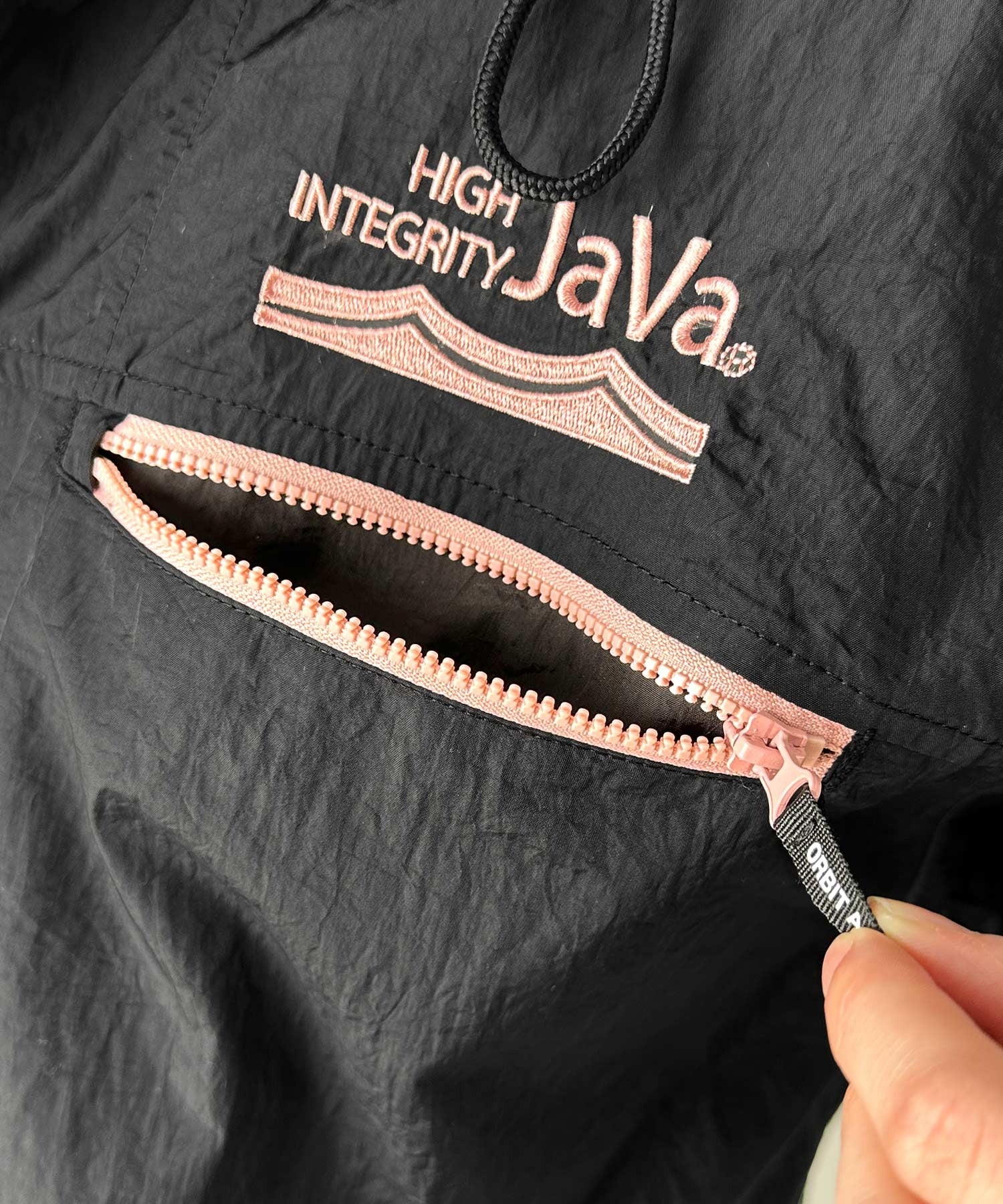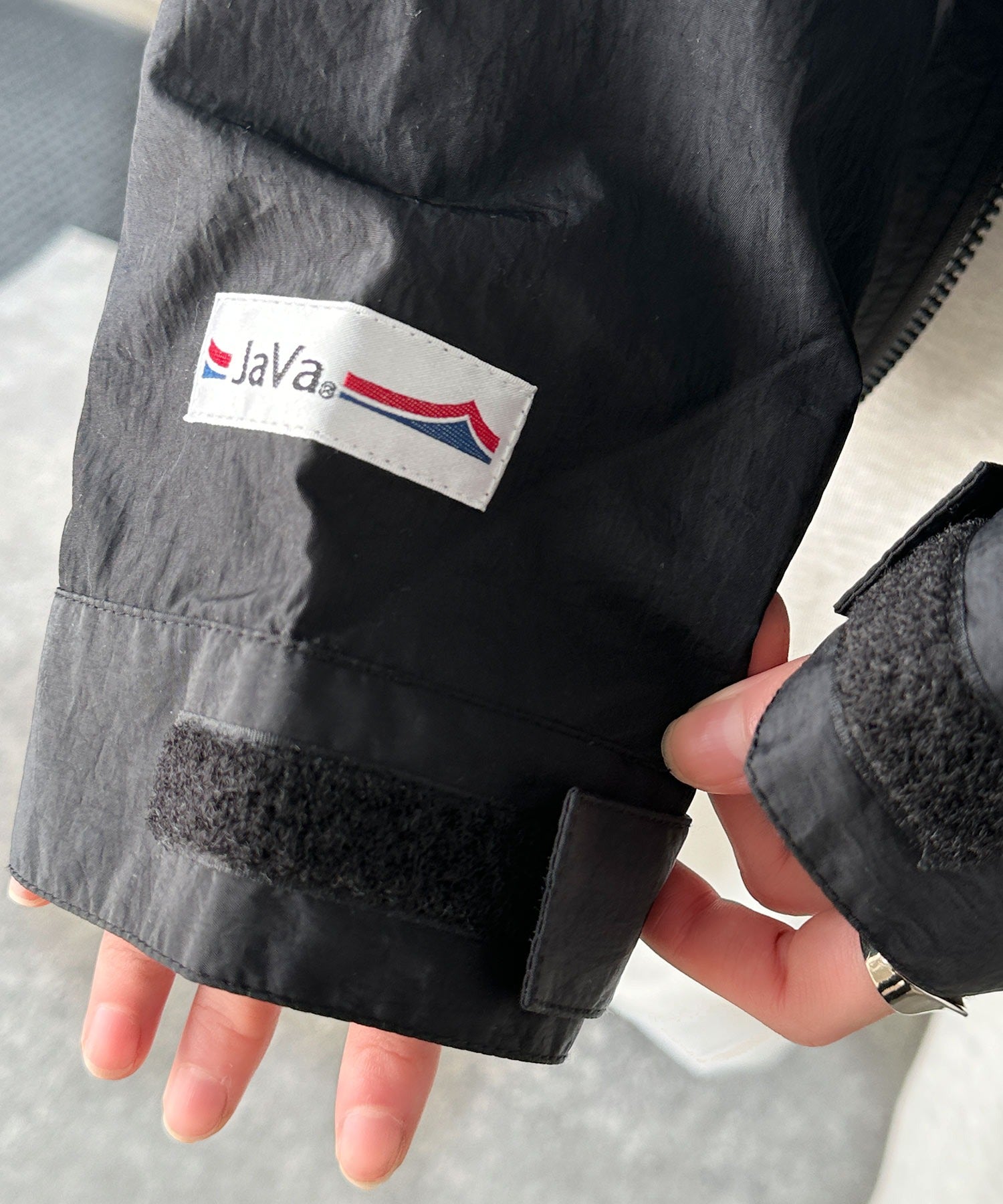 胸元のJaVaロゴが着こなしのデザインアクセント。