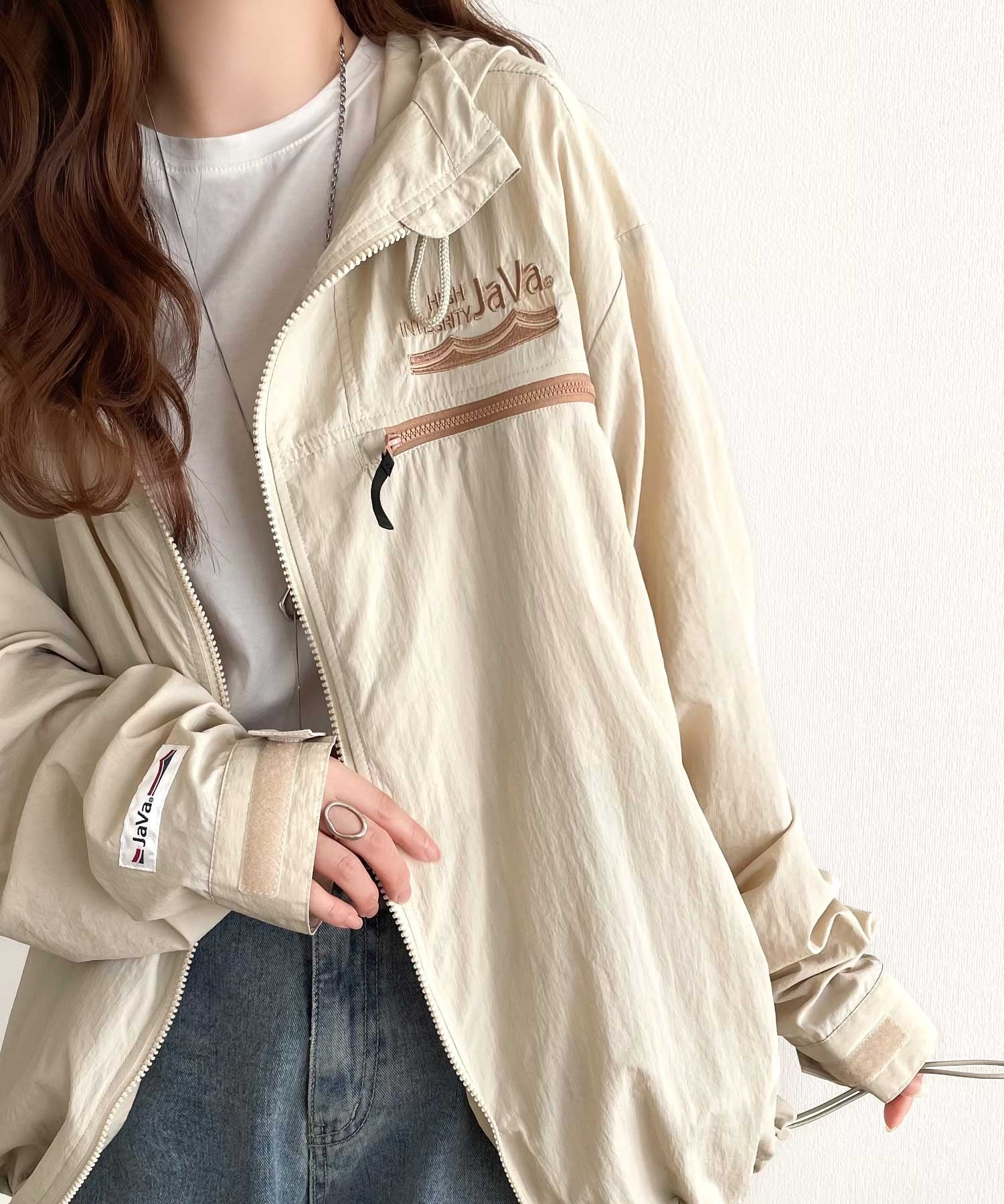 《Javaジャバコラボ》洗練されたカジュアルスタイル。オーバーサイズジップアップ軽量パーカー jv1260312