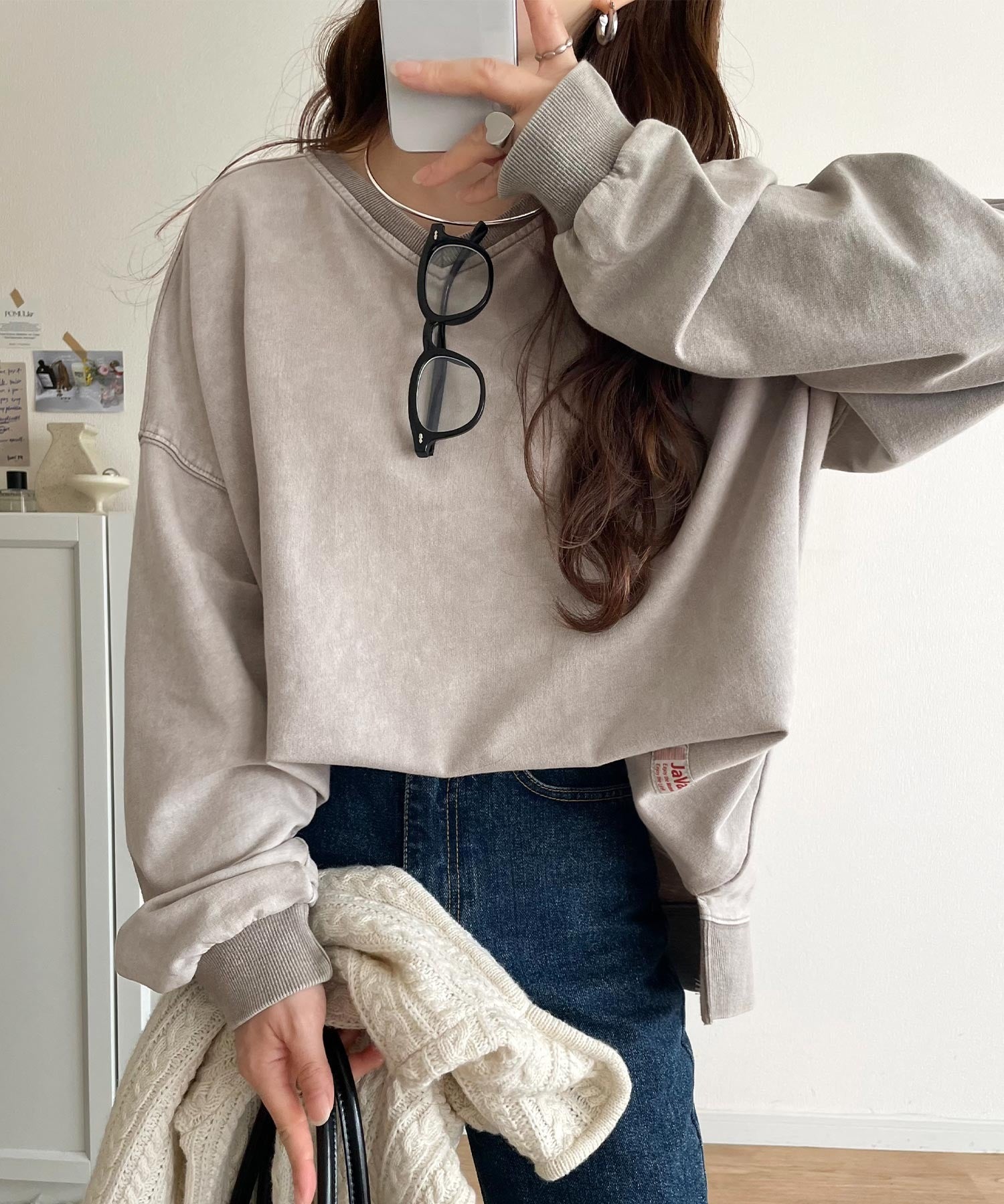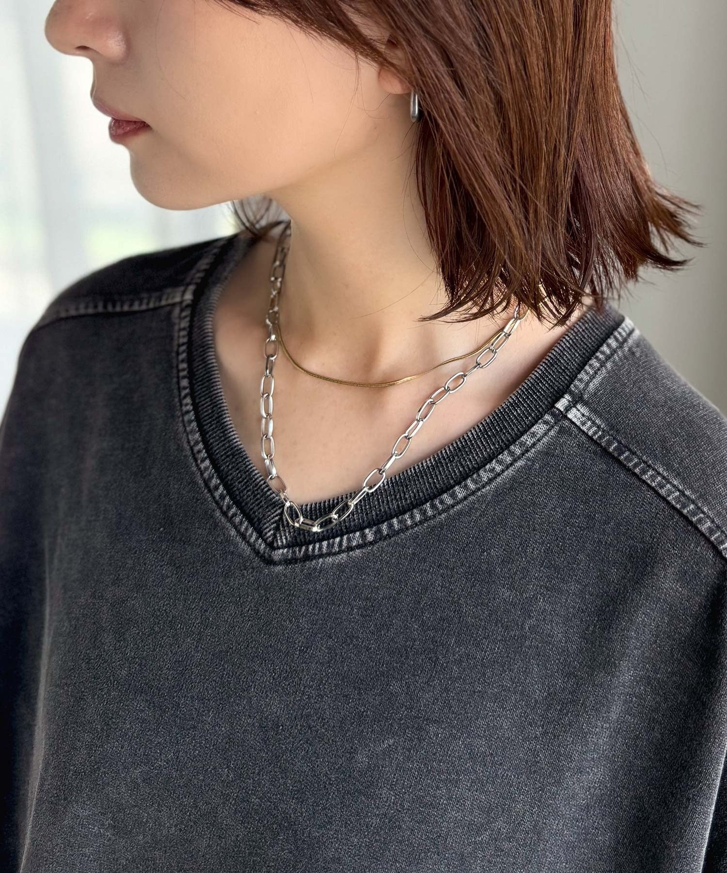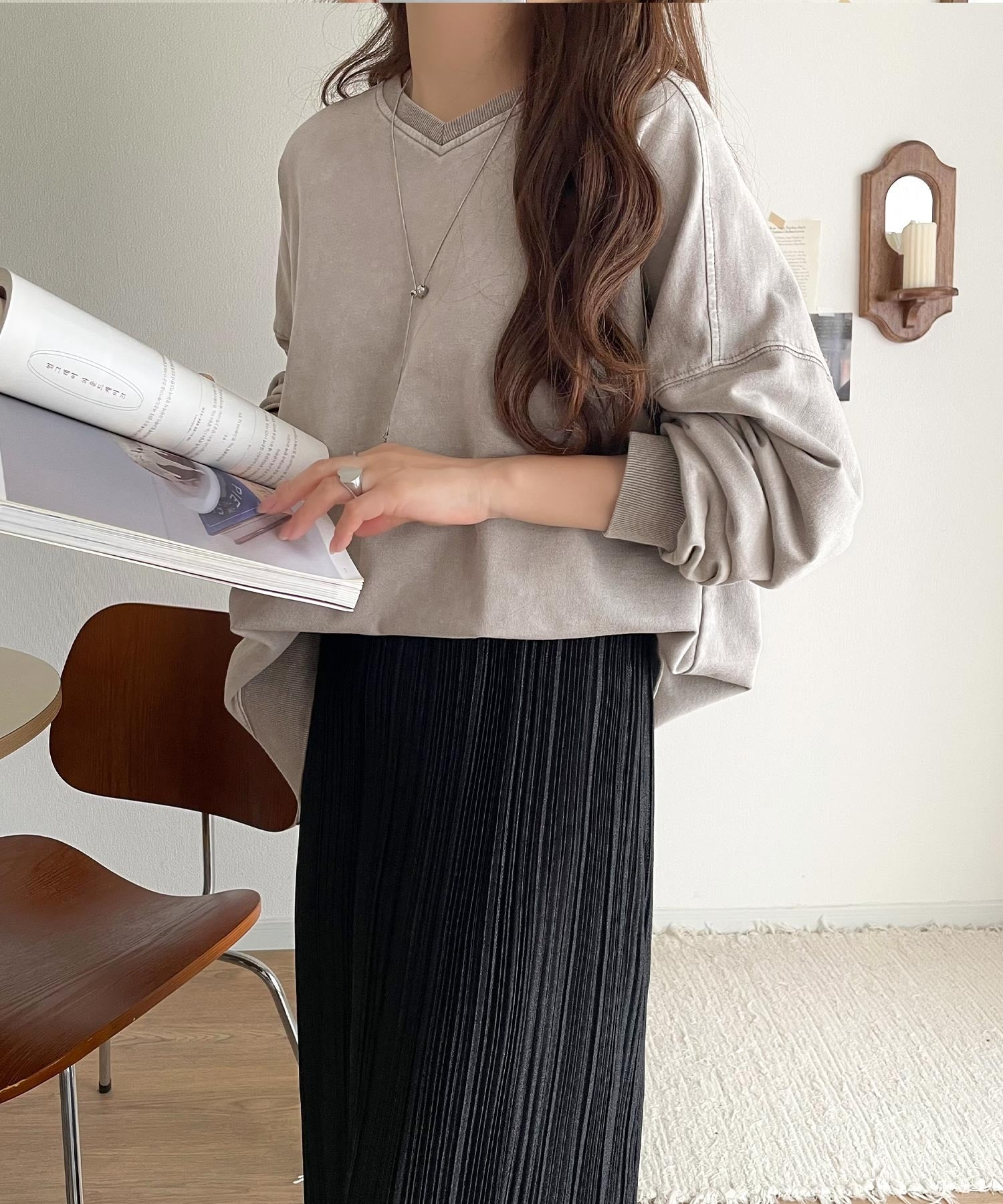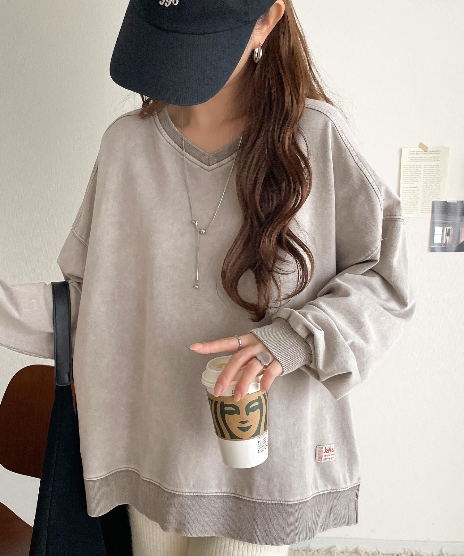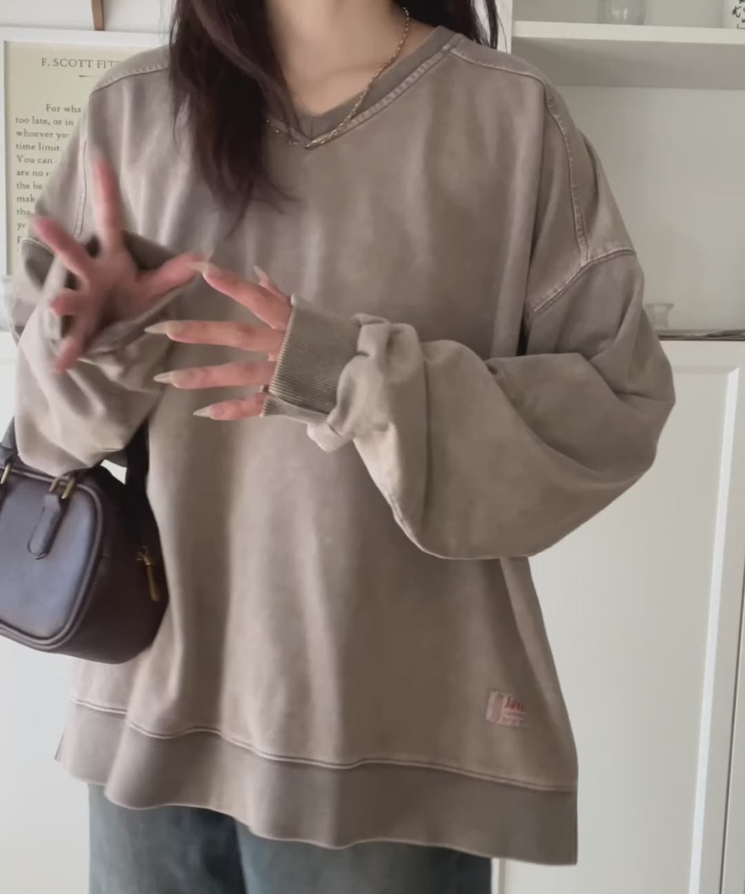 ヴィンテージライクな質感が特徴のVネック切り替え裏毛ロンT。