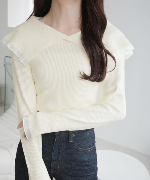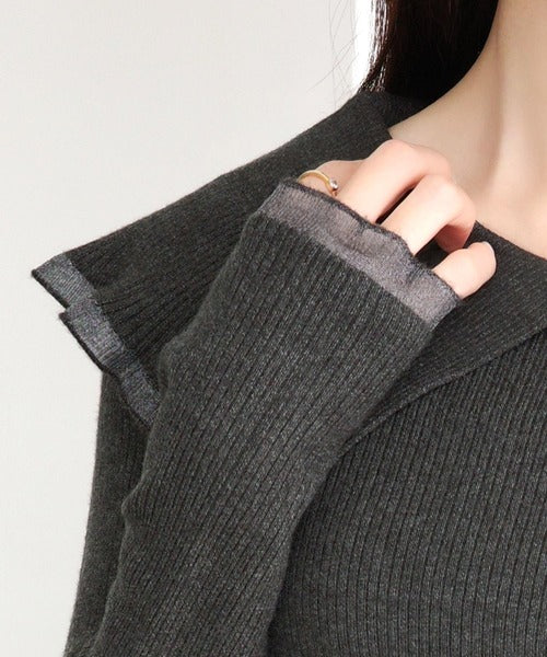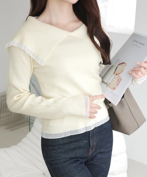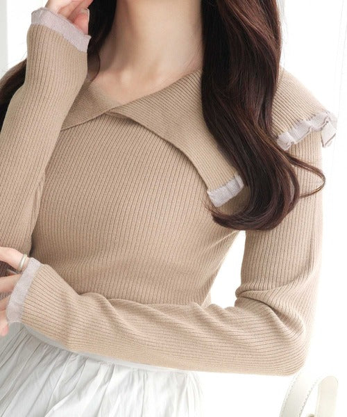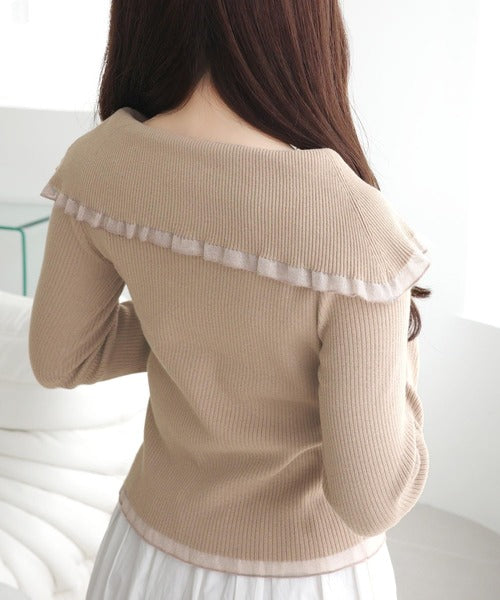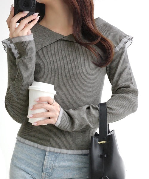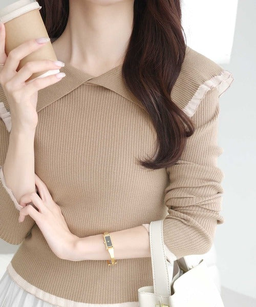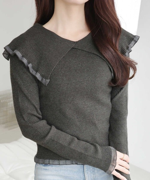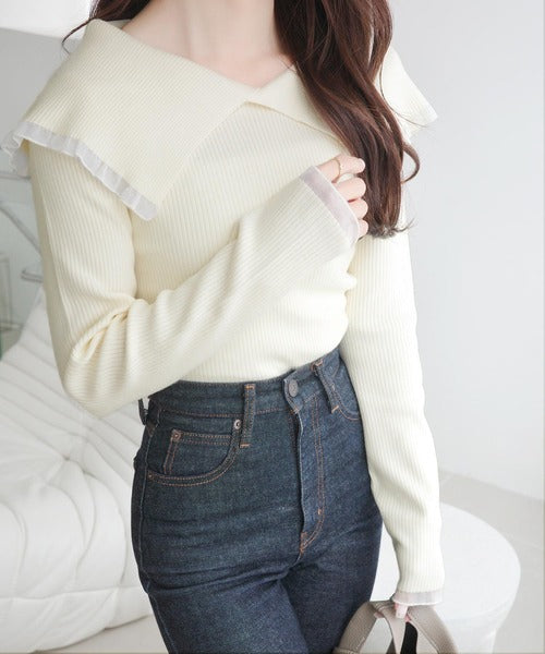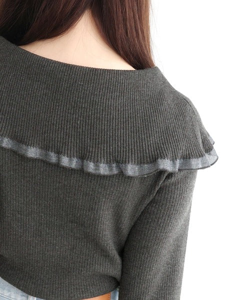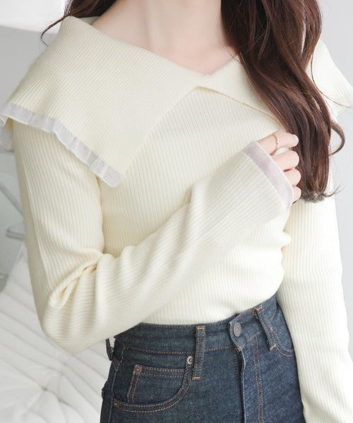 【mily bilet】着るだけでこなれ感。オーガンジーフリル襟リブニット mi1029149