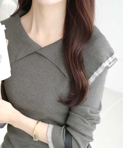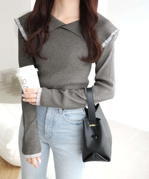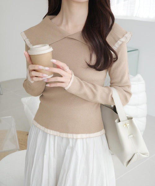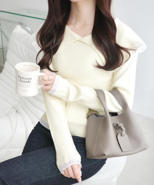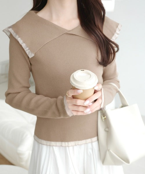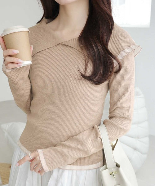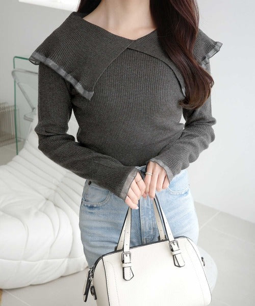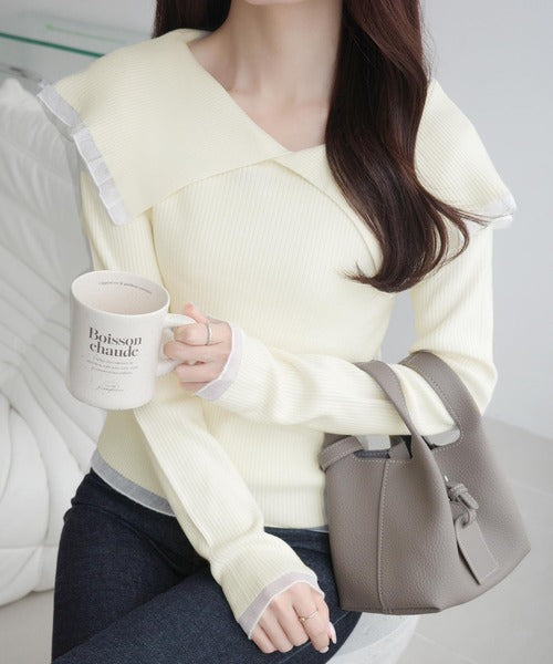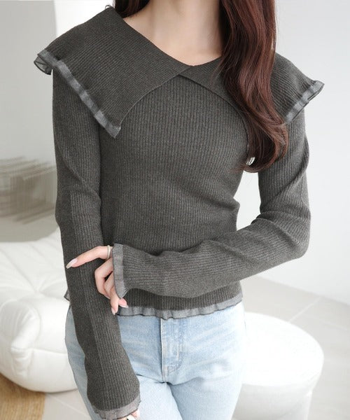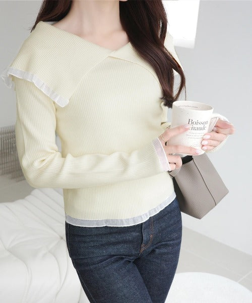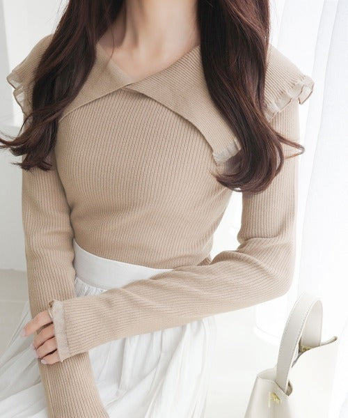 【mily bilet】着るだけでこなれ感。オーガンジーフリル襟リブニット mi1029149