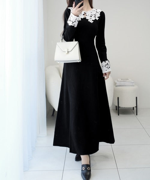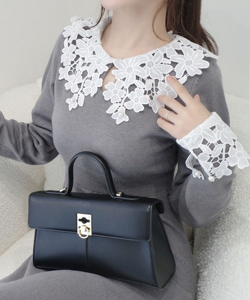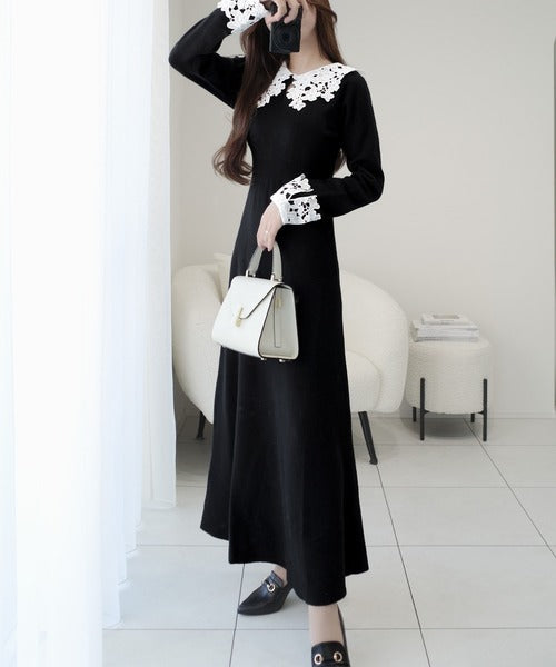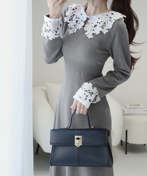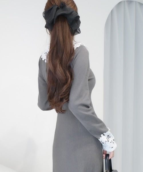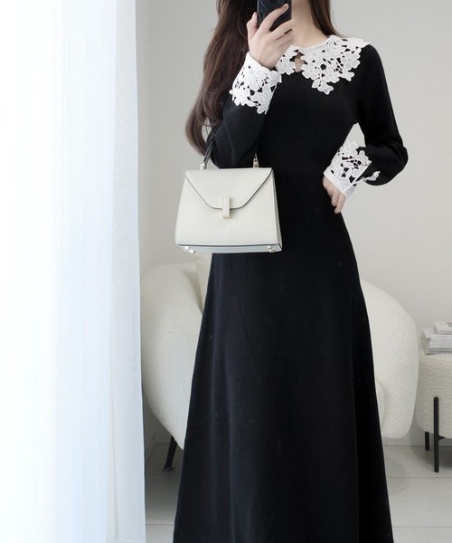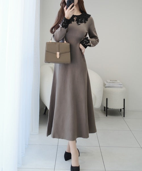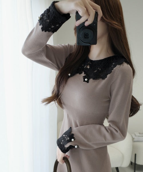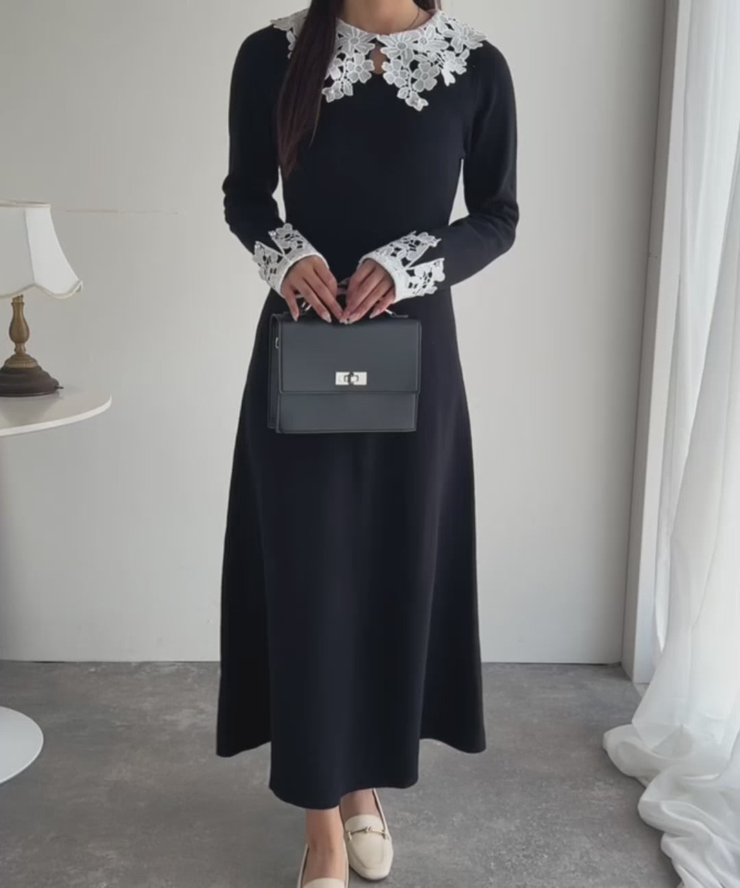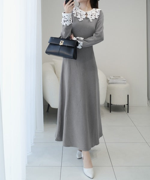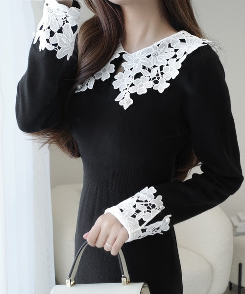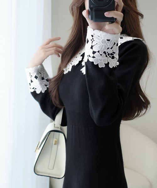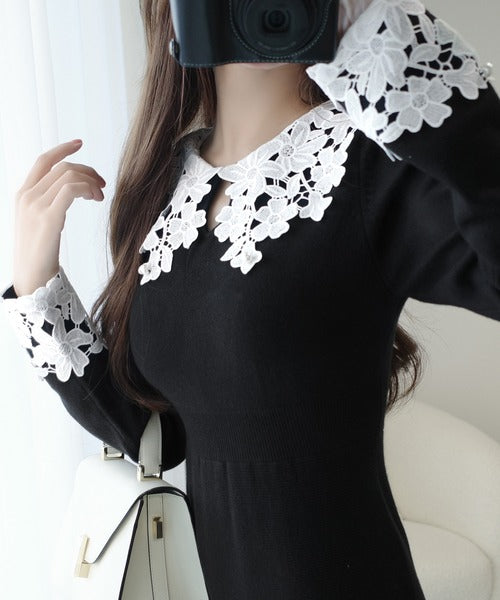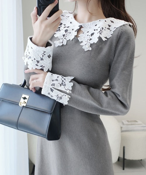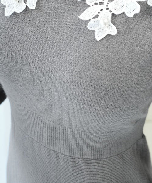 【mily bilet】華やかさと上品さを纏う。パール使いレースカラーニットワンピース mi1139091