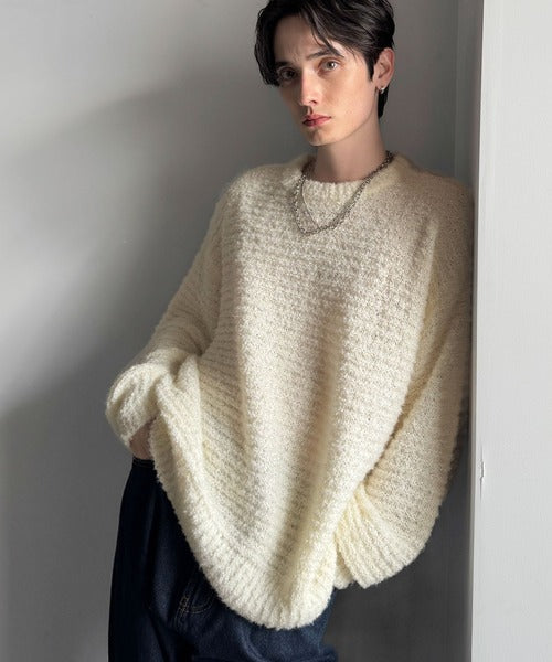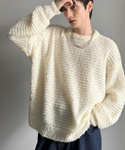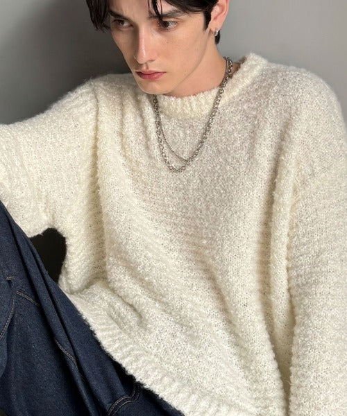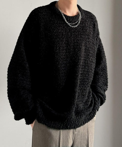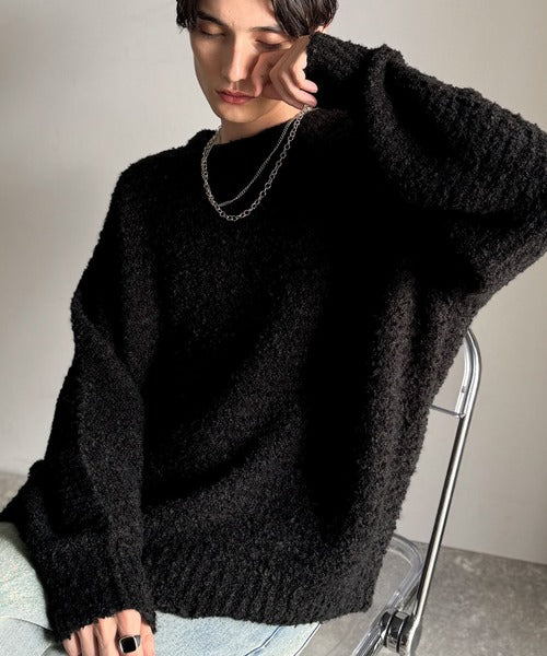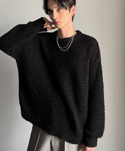 【Classical Origin】「優しさに包まれる。」ブークレー糸クルーネックニットトップス(長袖)/Boucle yarn crew neck knit top ao1020302