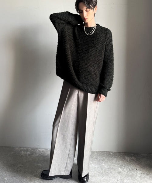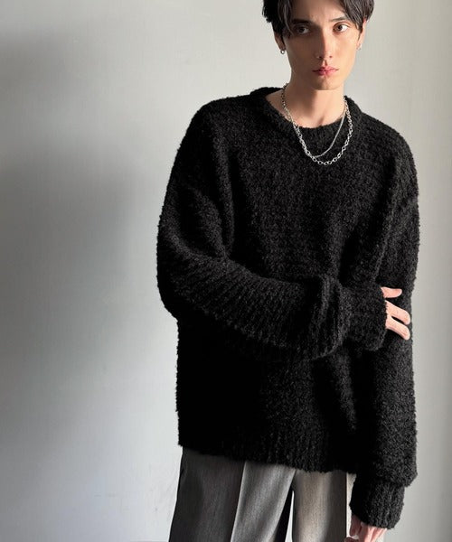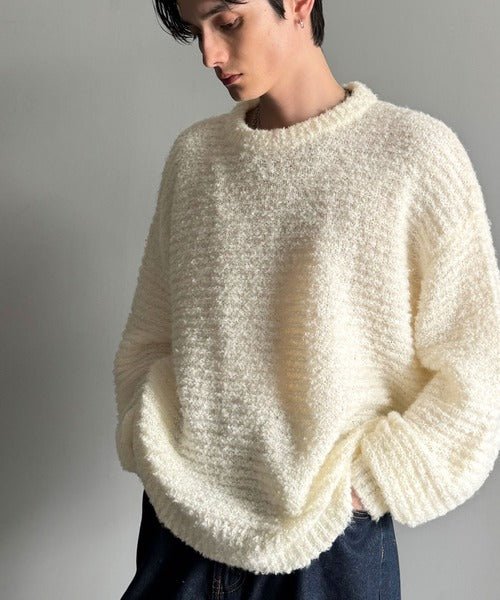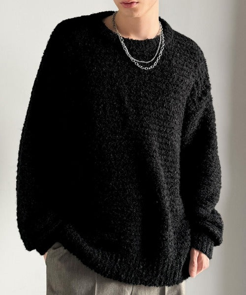 「ブークレー糸クルーネックニットトップス(長袖)/Boucle yarn crew neck knit top」