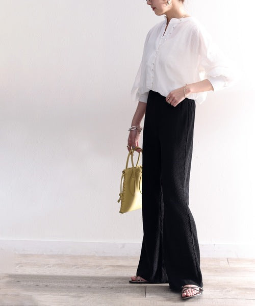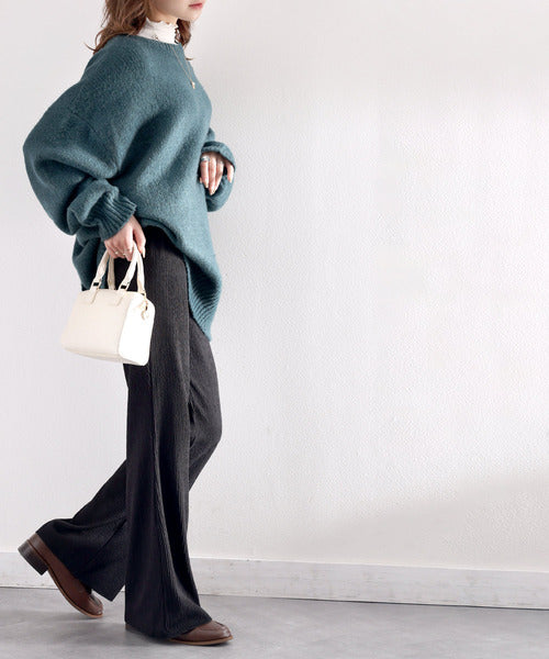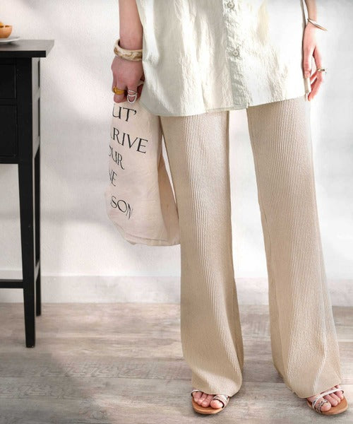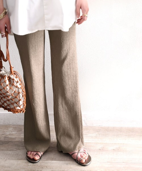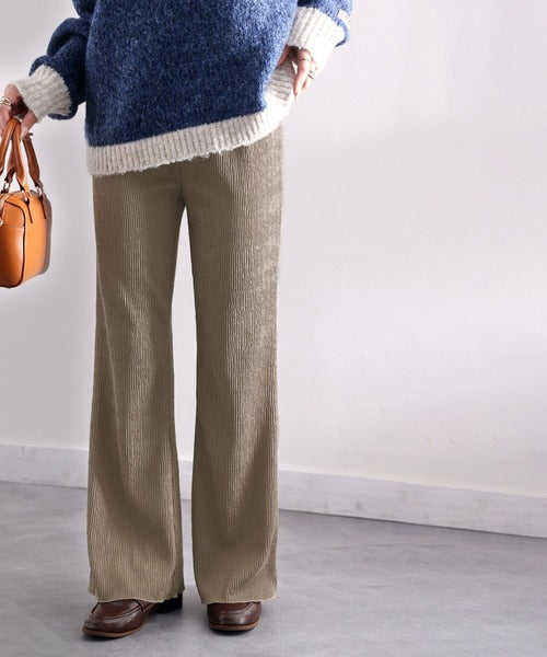 大人の程よいフィット感、美脚セミフレアイージーパンツ。