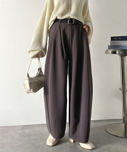 【防シワ、ウォッシャブル機能付き】1年中使えて、ONもOFFも主役級。高機能タックワイドカーブシルエットスラックスパンツ ce0940253