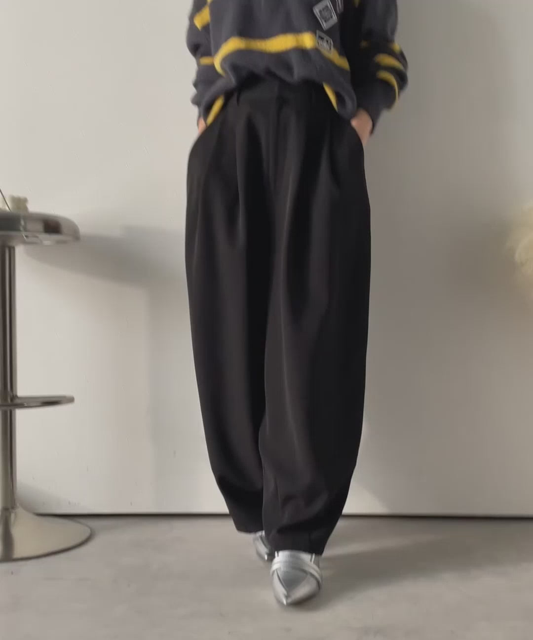 シャツやブラウスできれいめに、ロゴTやスウェットで抜け感を出してもサマになる“最旬スラックス”です。