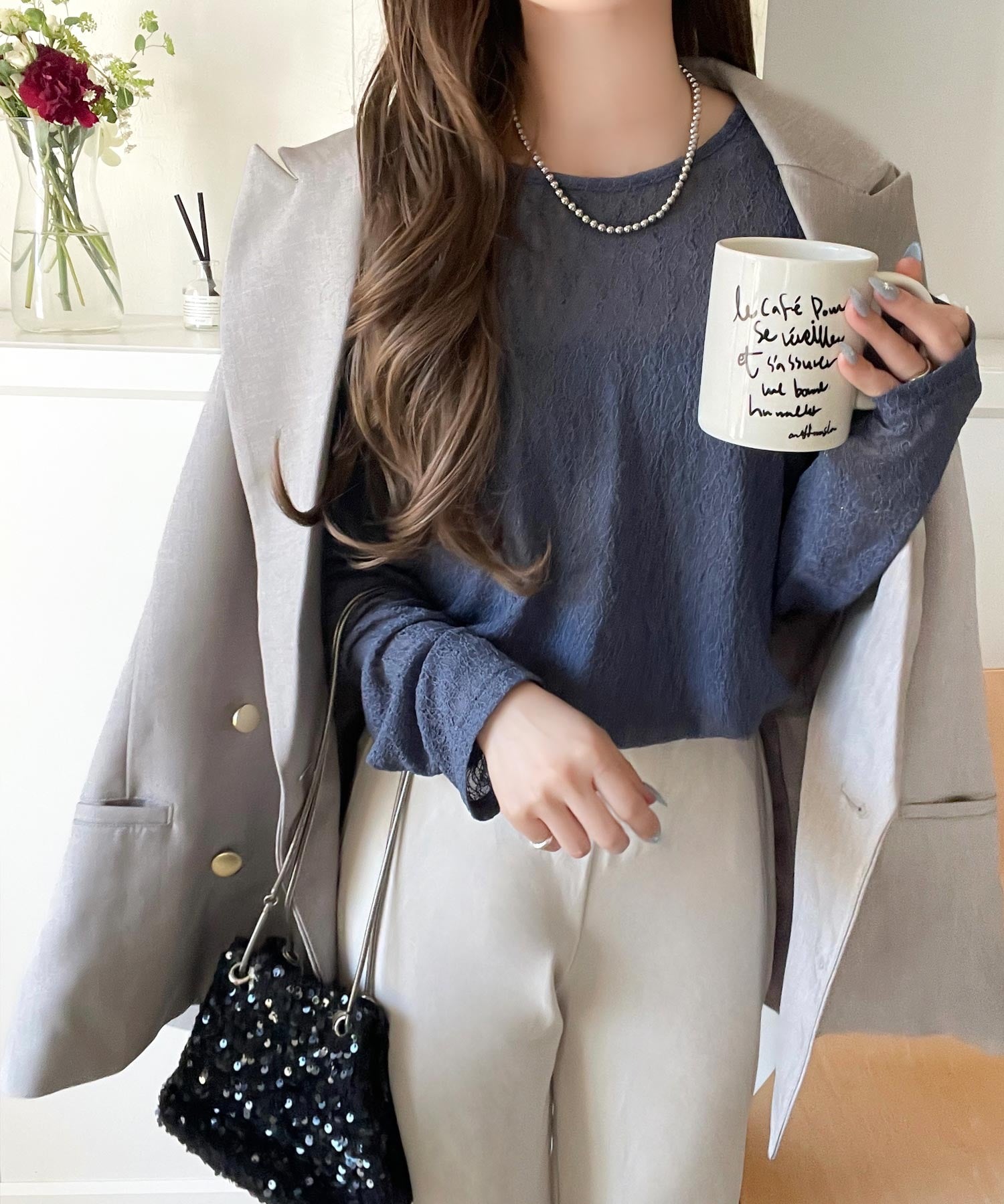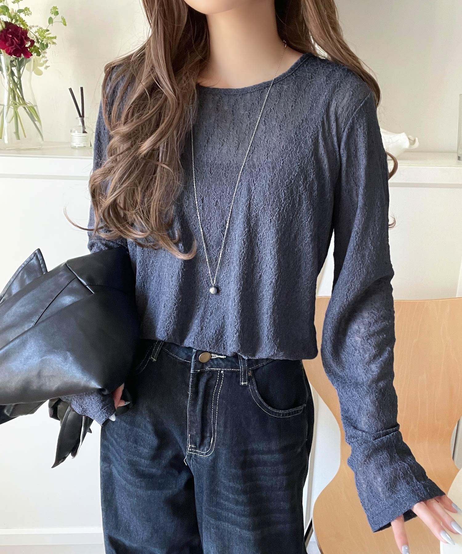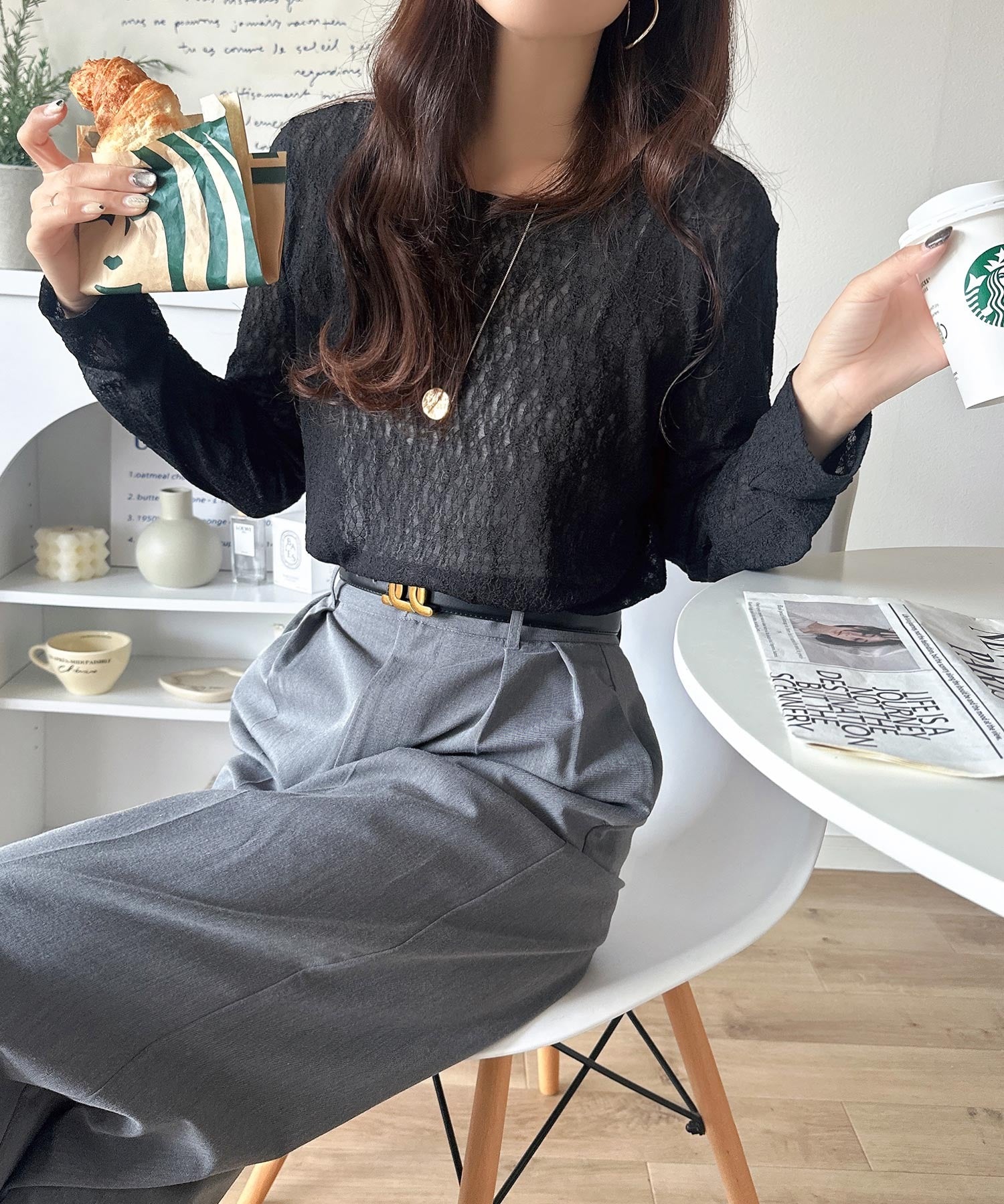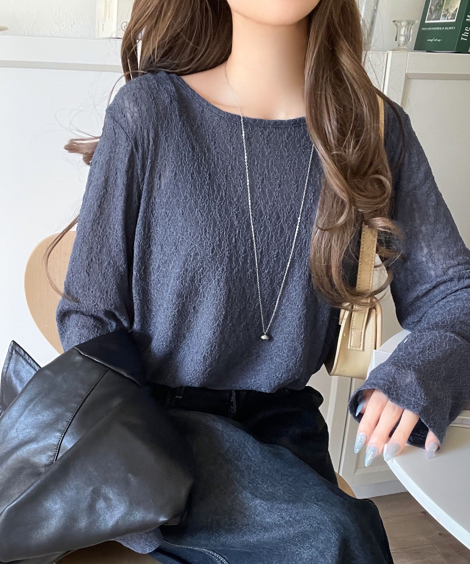 ほどよい透け感が大人上品。総柄シアーレーストップス(長袖) ce1010488
