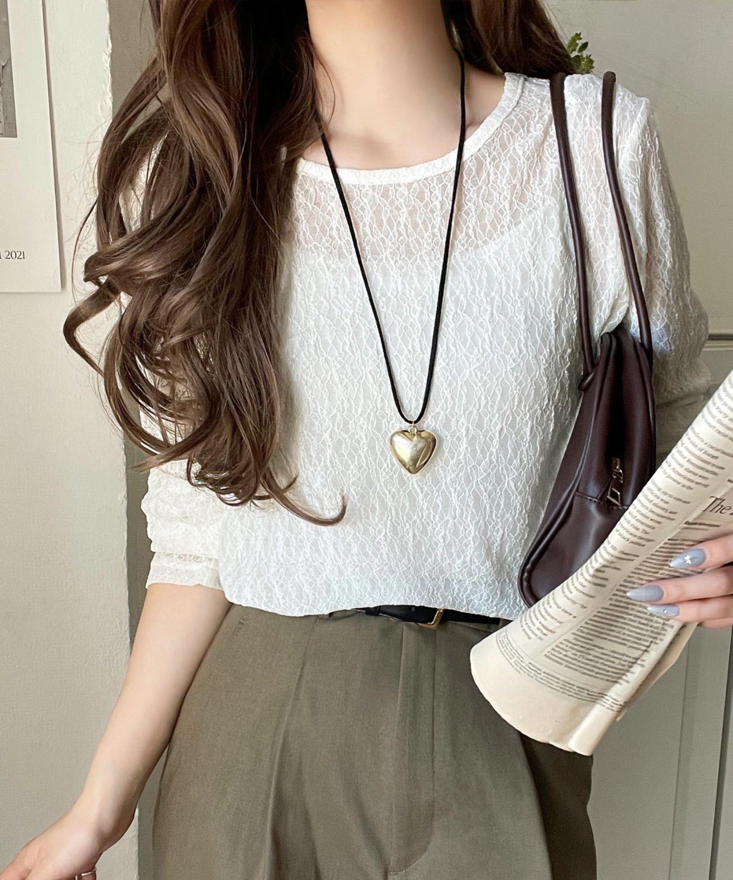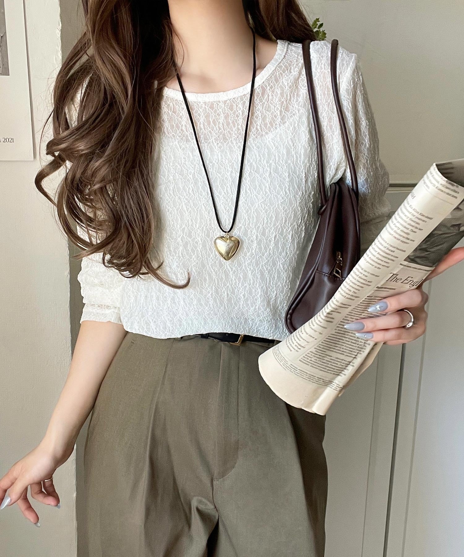 1枚で女性らしさを引き立てるレースのカットソーブラウスは