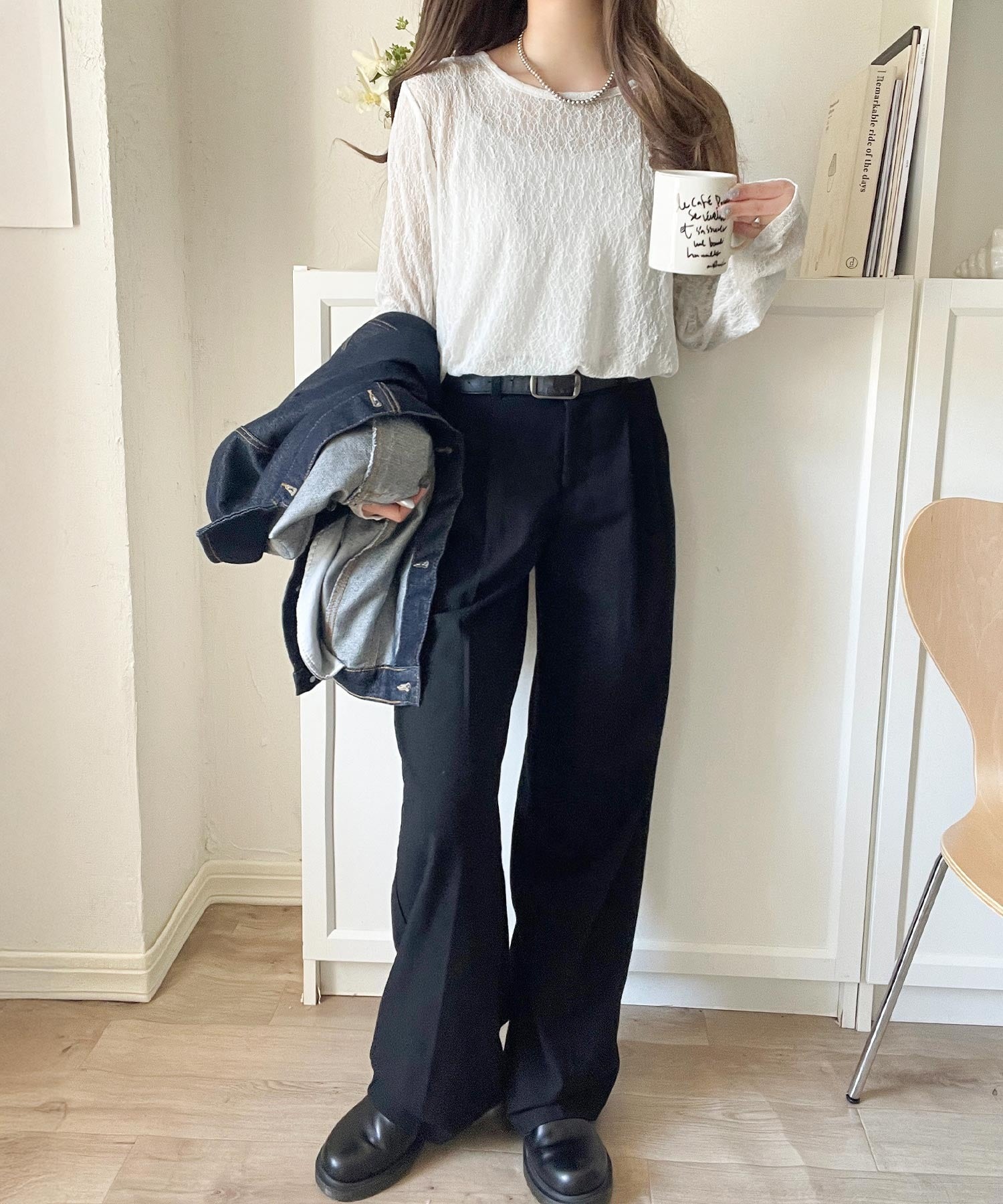 首元はクルーネック仕様なので、カジュアルからキレイ目まで