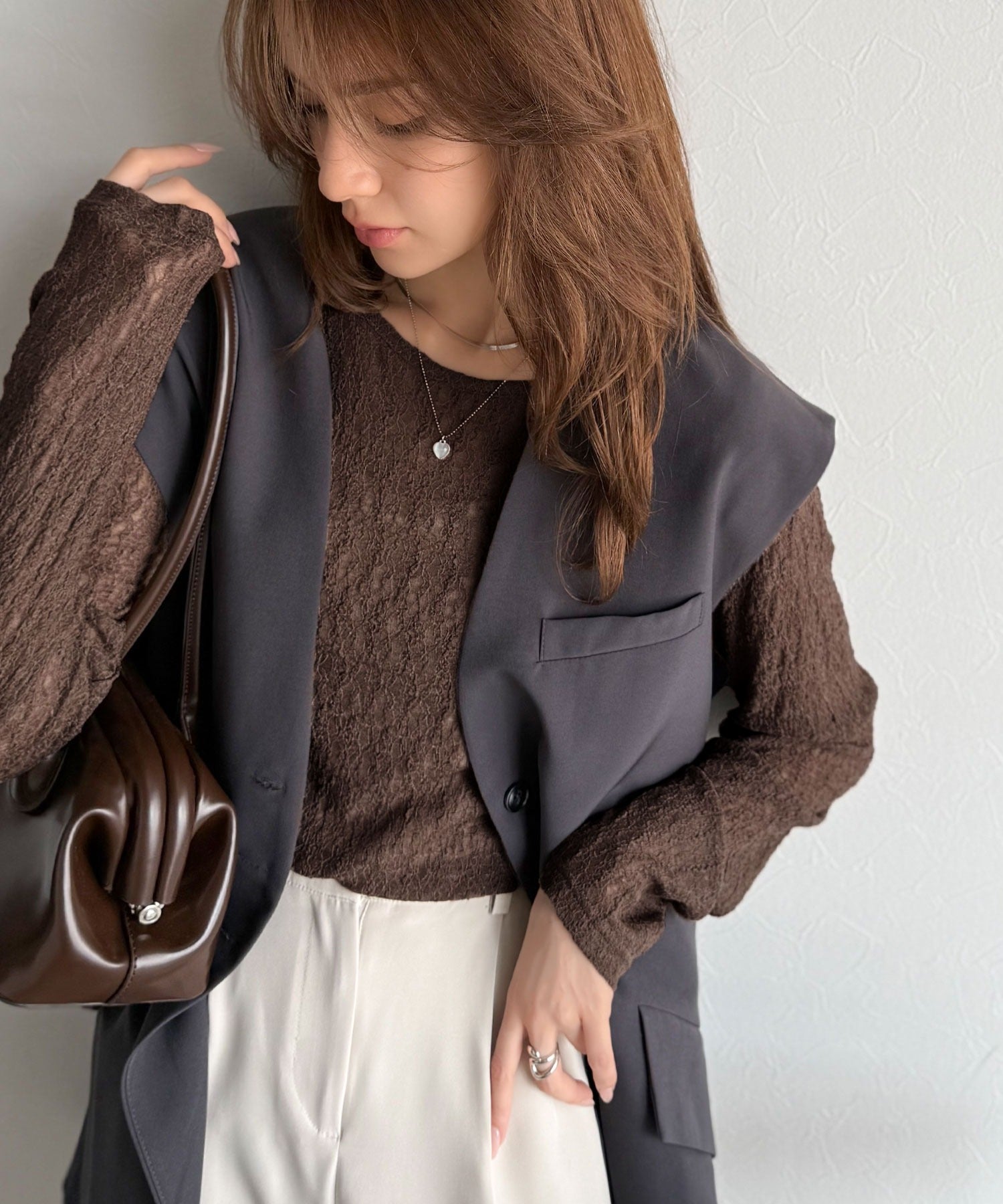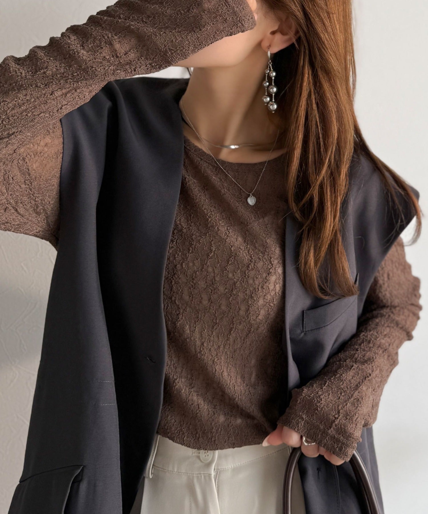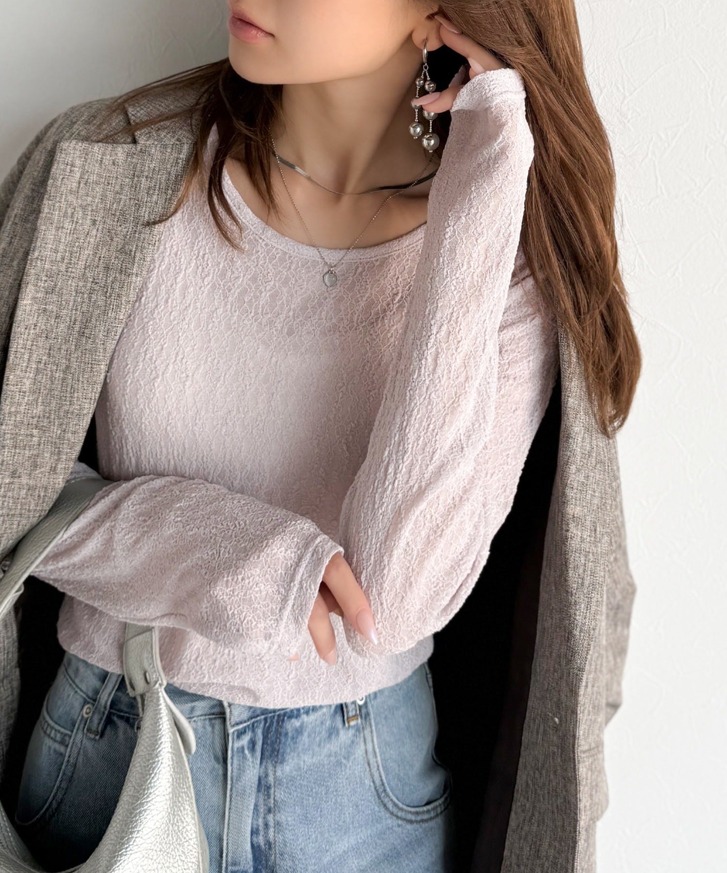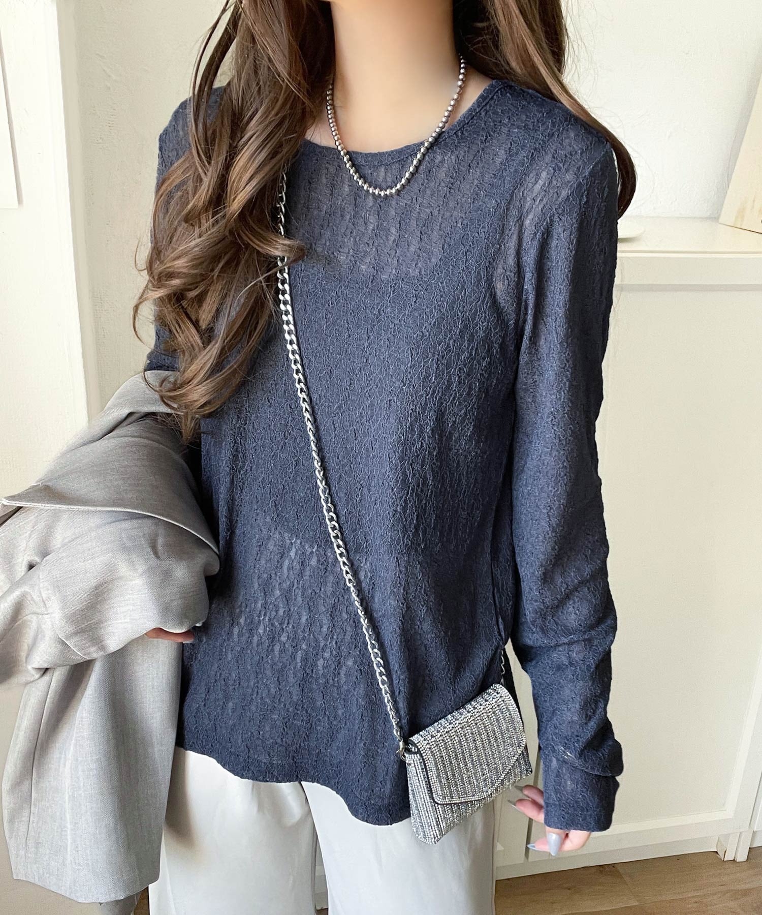 1枚で着てもレイヤードしてもサマになるシアーインナーです。