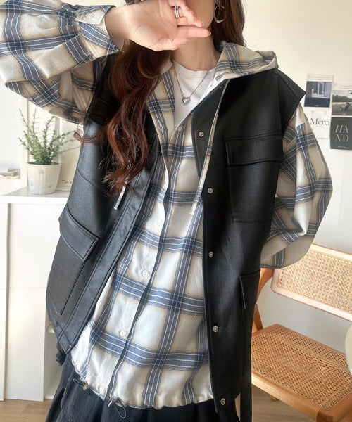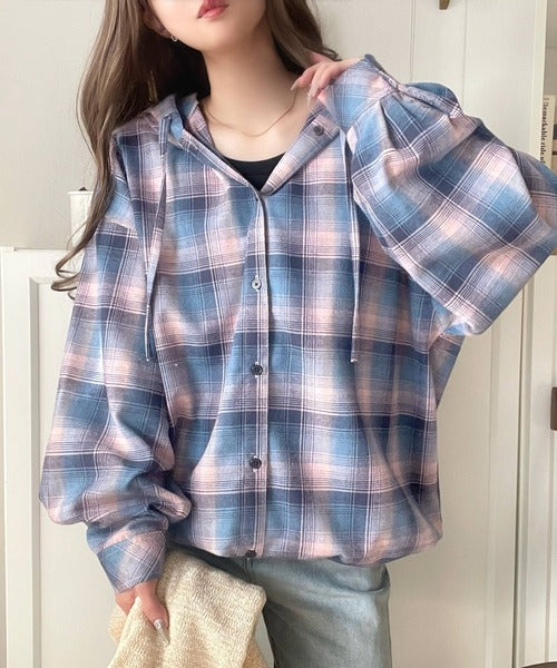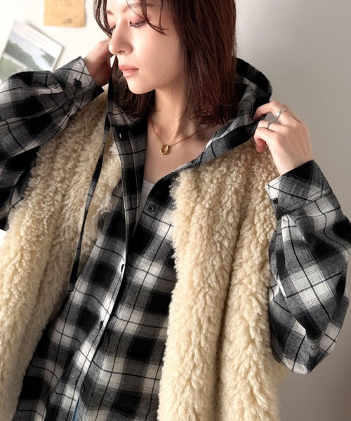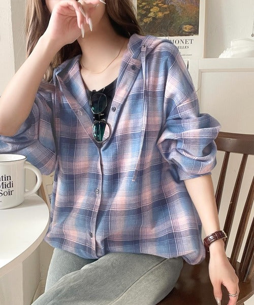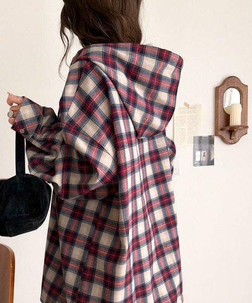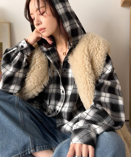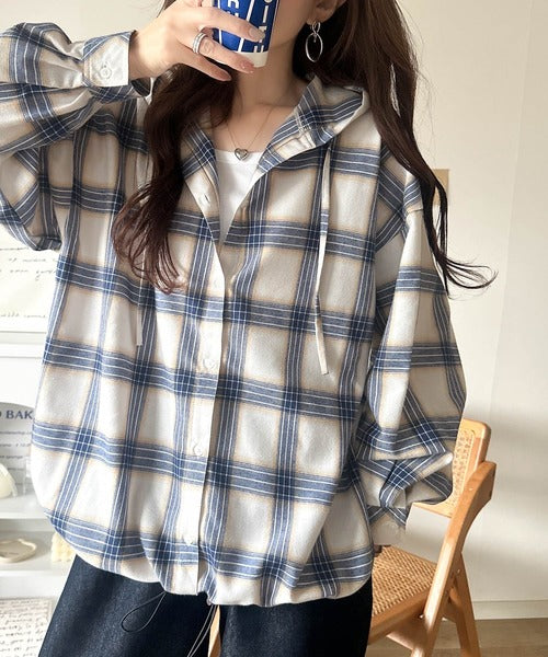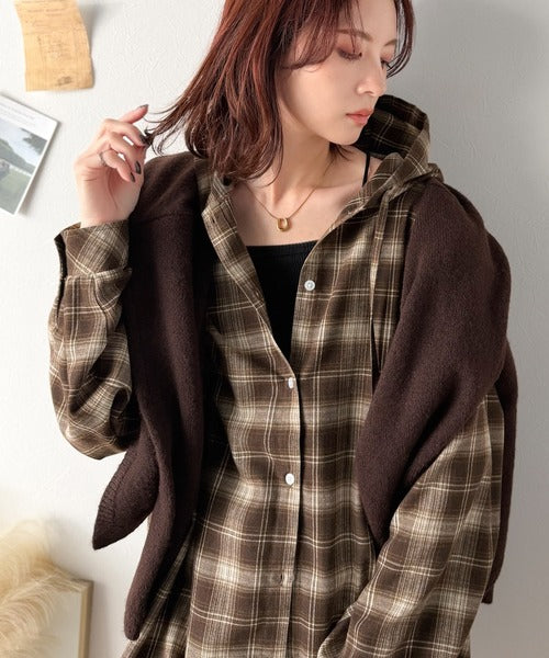 ふんわり抜け感をまとう、大人のためのチェックシャツパーカー。