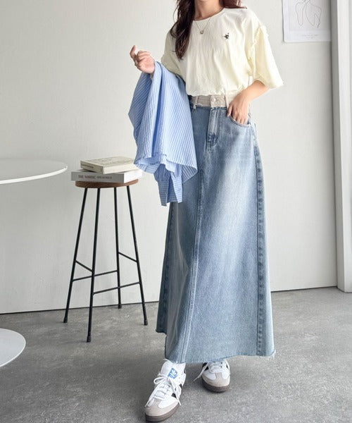 ロングスカートと合わせた甘辛ミックススタイルにも好相性です。