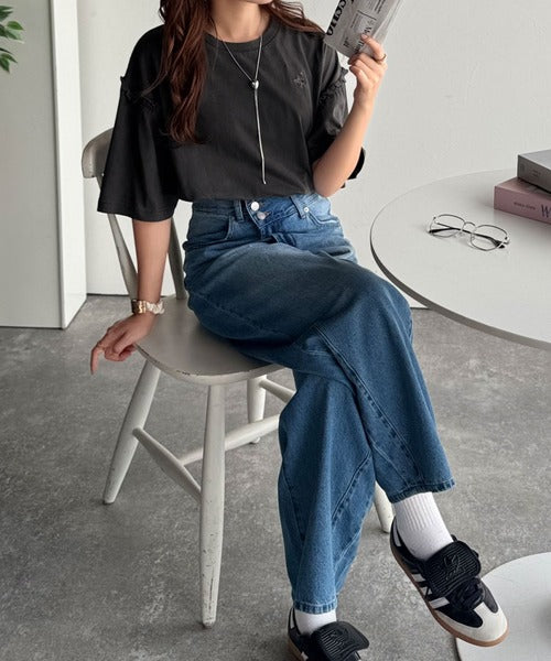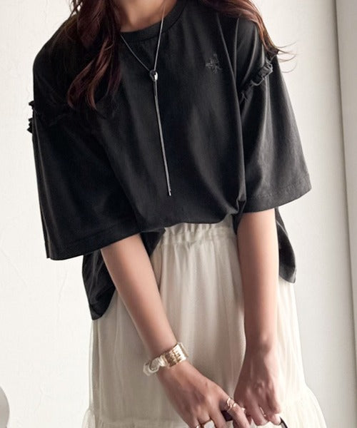 フリル袖で甘さを添えた、大人のカジュアルTシャツ。