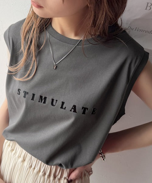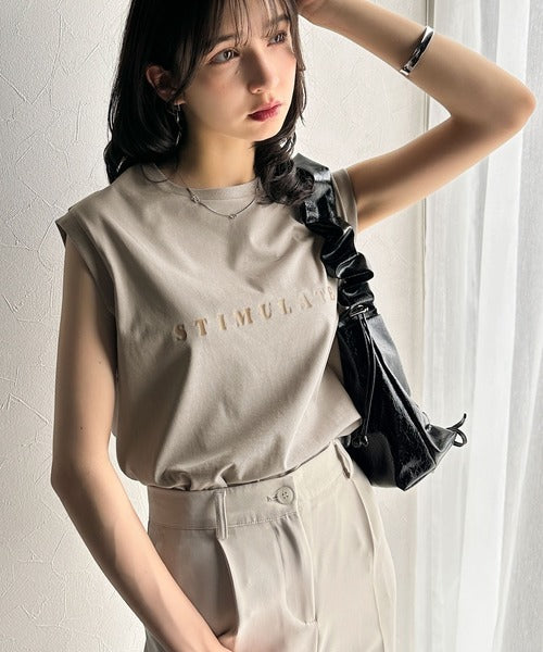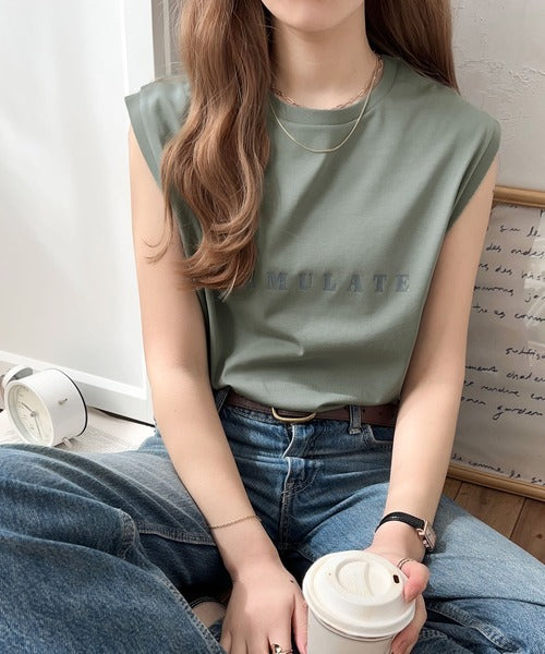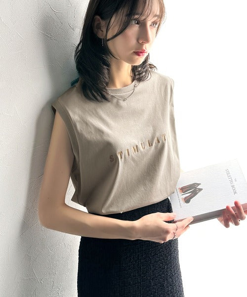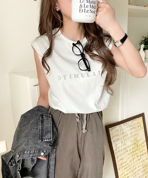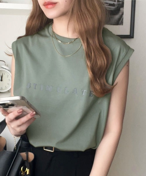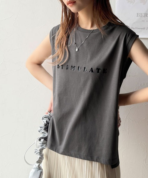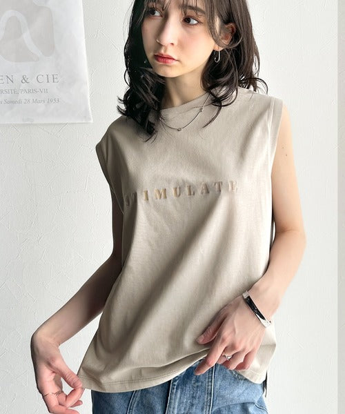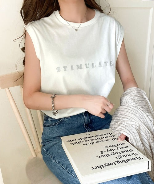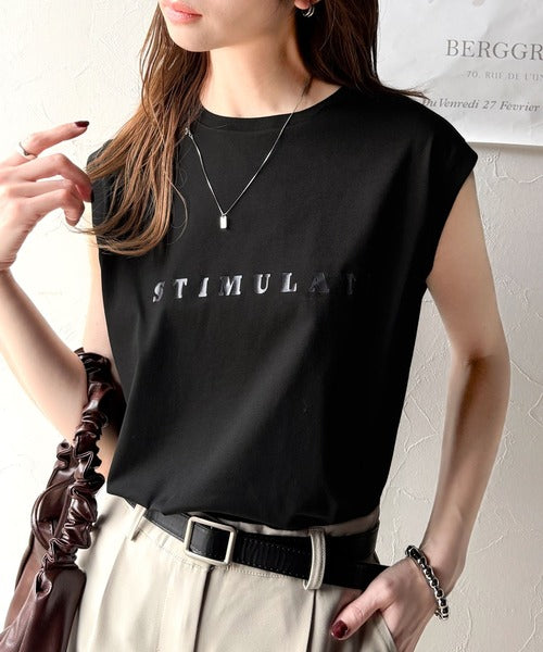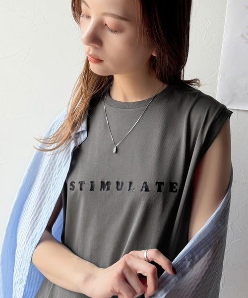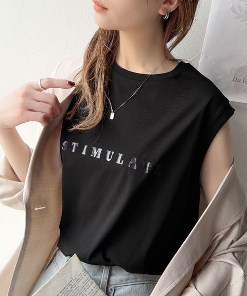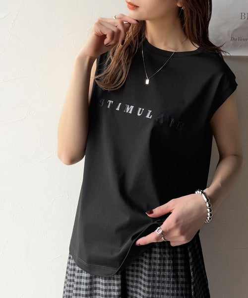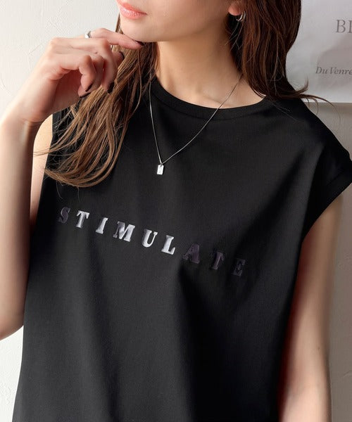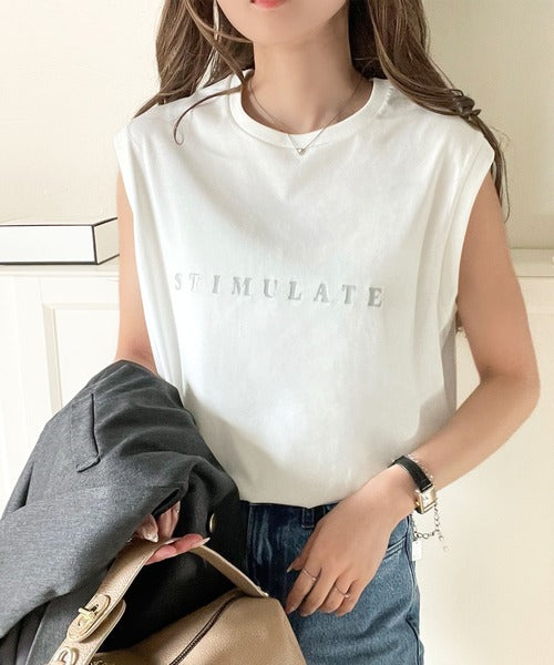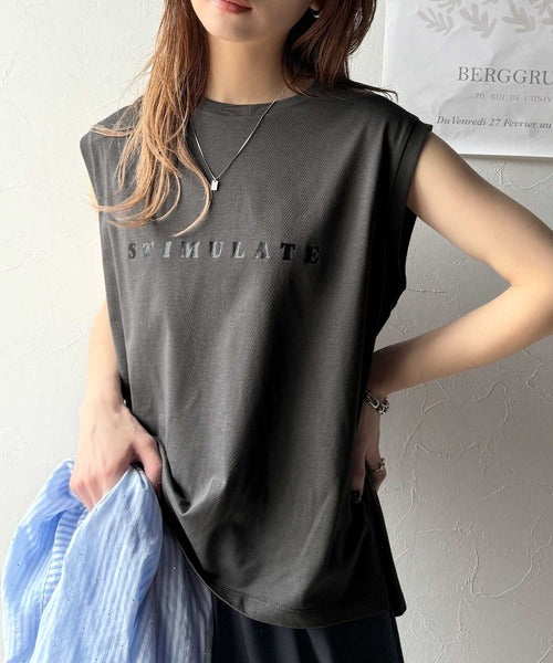 夏コーデの即戦力!接触冷感レターロゴプリント上品見えノースリーブカットソー ce1050295