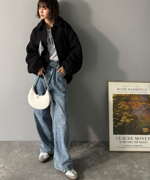 抜け感ときちんと感の絶妙バランスを実現したコクーン襟付きボアジャケット。