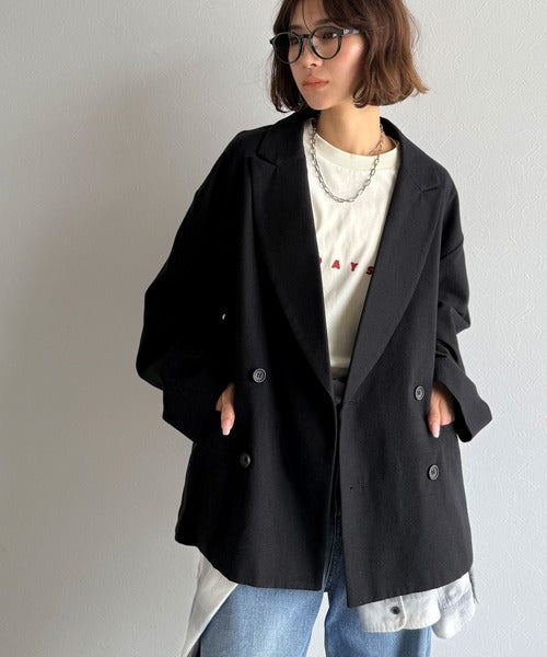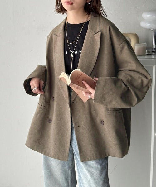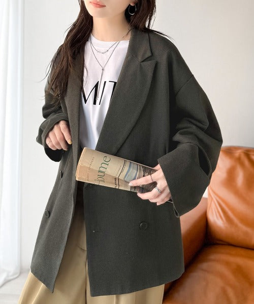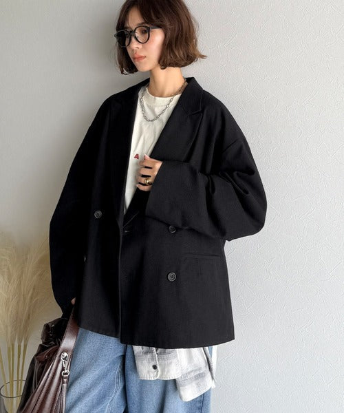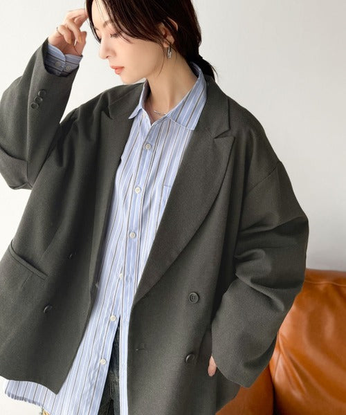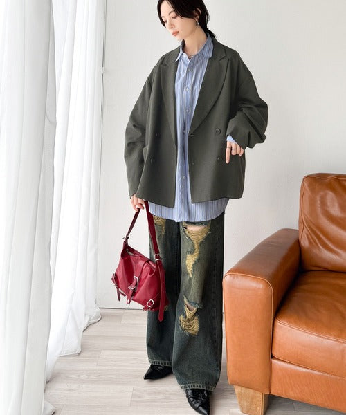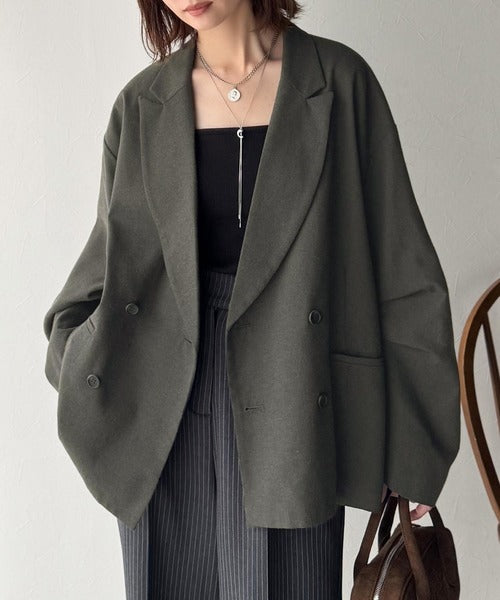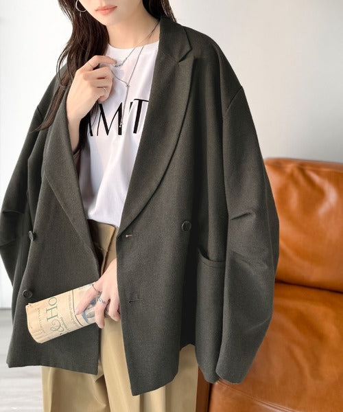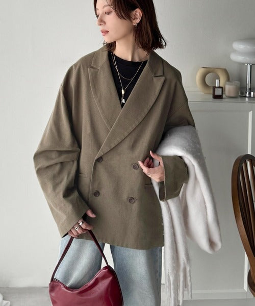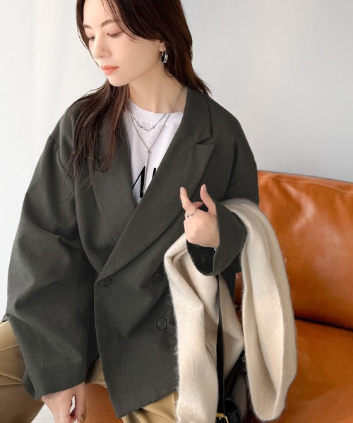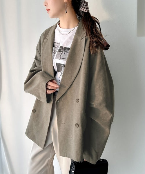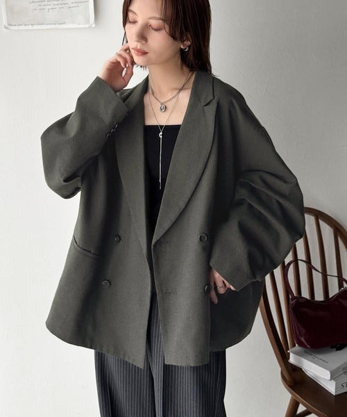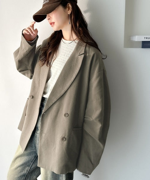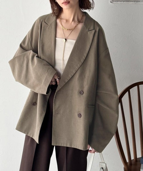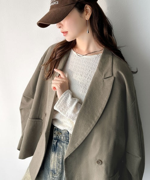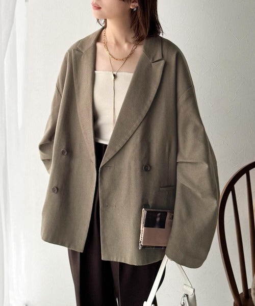 きちんと見えるのに、かたくない。袖タックダブルボタンテーラードジャケット(長袖) ce1070170