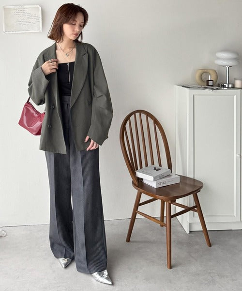 ピンストライプや落ち着いた色味で、オンオフ問わず活躍。