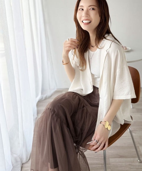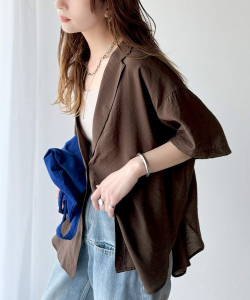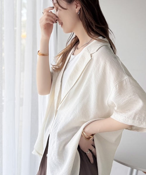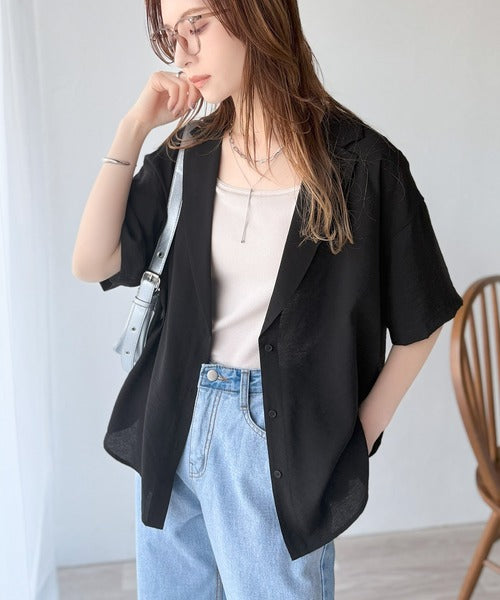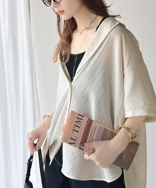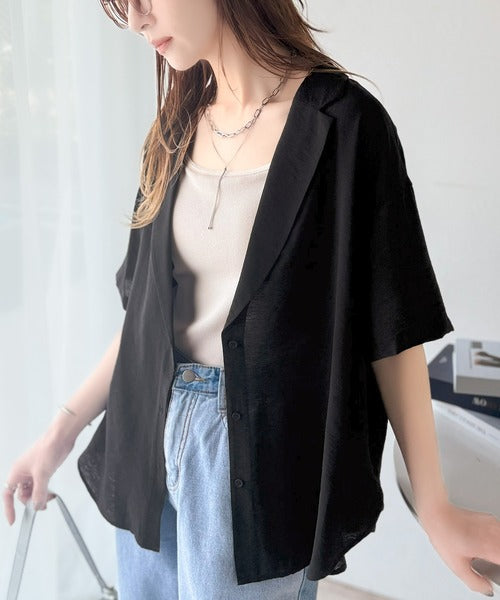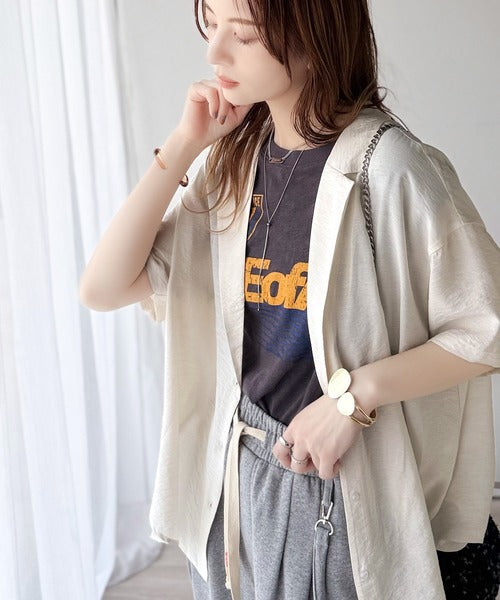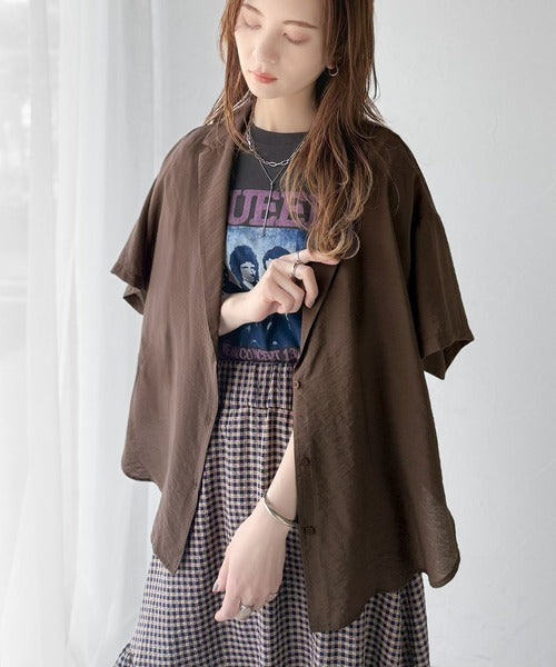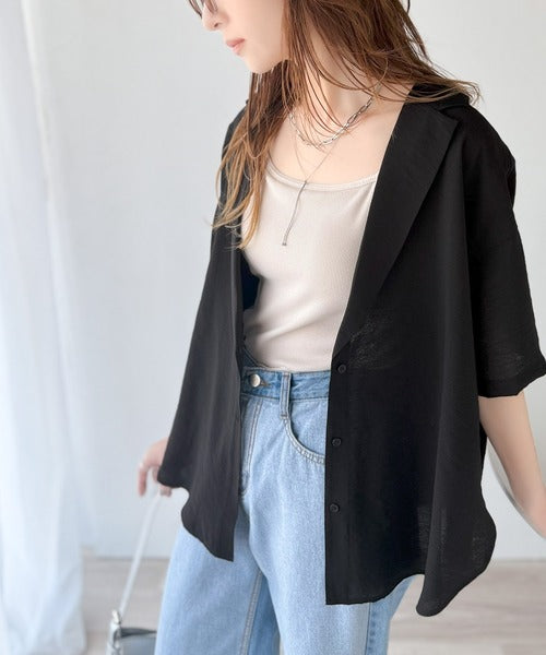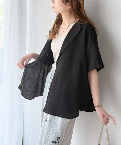 透ける、揺れる、魅せる。ヴィンテージライクシアー素材開襟シャツブラウス(半袖) ce1110125