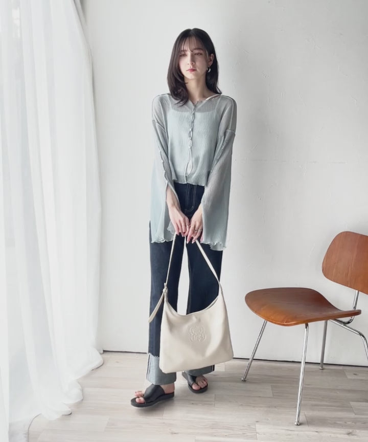 大人の上品な透け感を纏う。前後2wayシアー楊柳素材フレアスリーブブラウスカーディガン(長袖) ce1240083