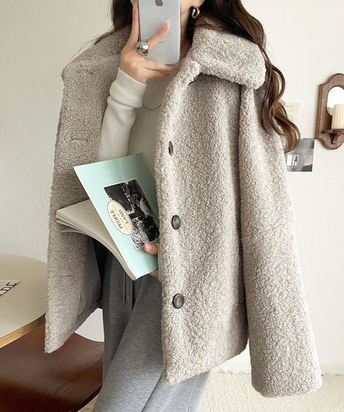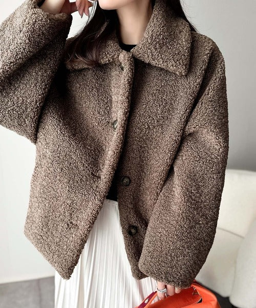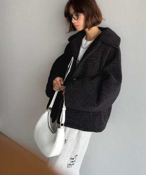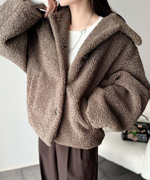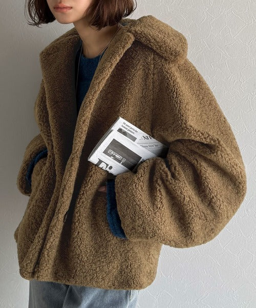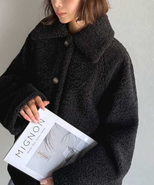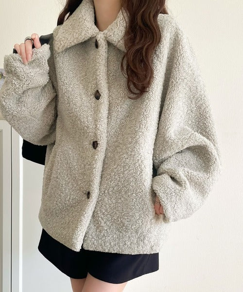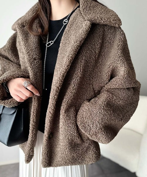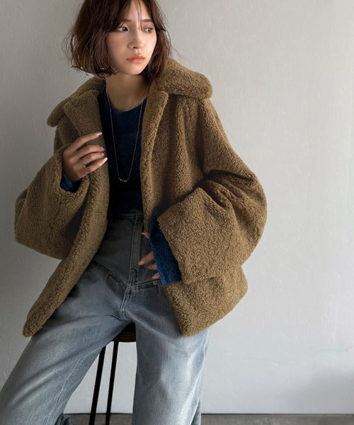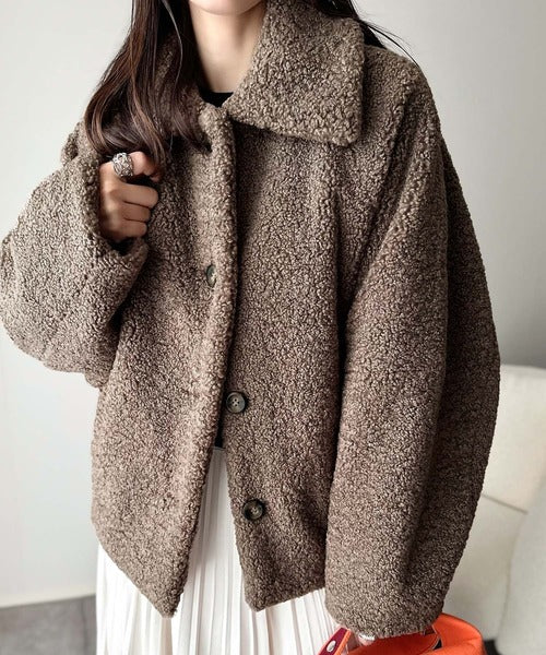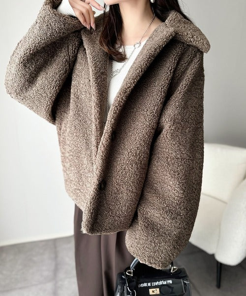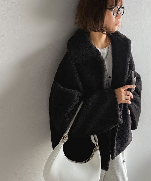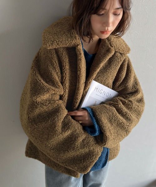 モコっとかわいく、冬支度♪ふんわり軽やか×暖かみたっぷり!コクーンシルエットテディベアボアブルゾン ce1240104