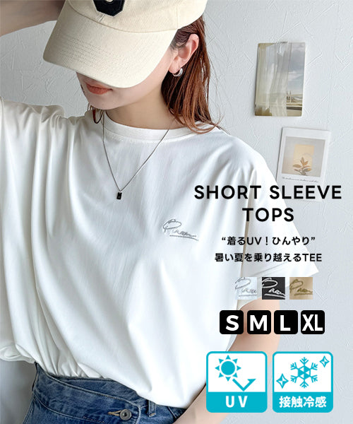 着るUV!ひんやりバックファスナードルマンスリーブ胸刺繍半袖トップス(接触冷感/UVカット/遮熱機能) ce1260389