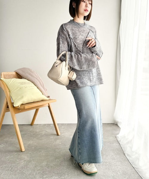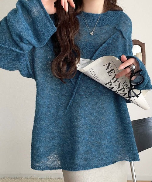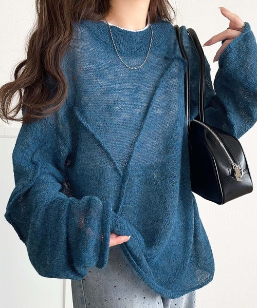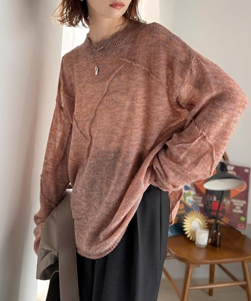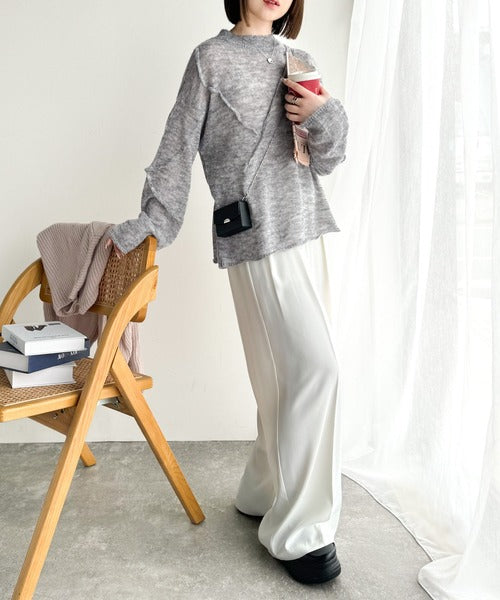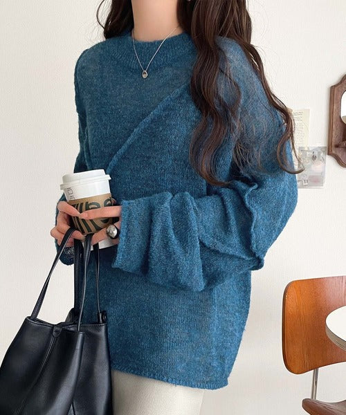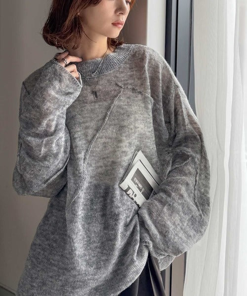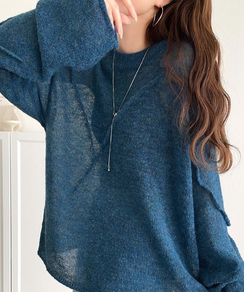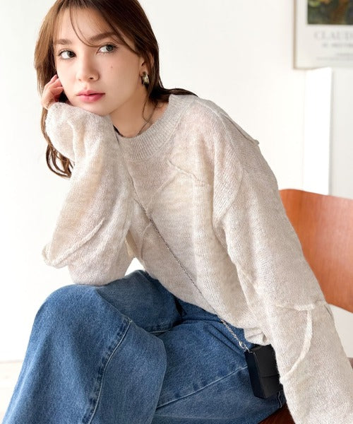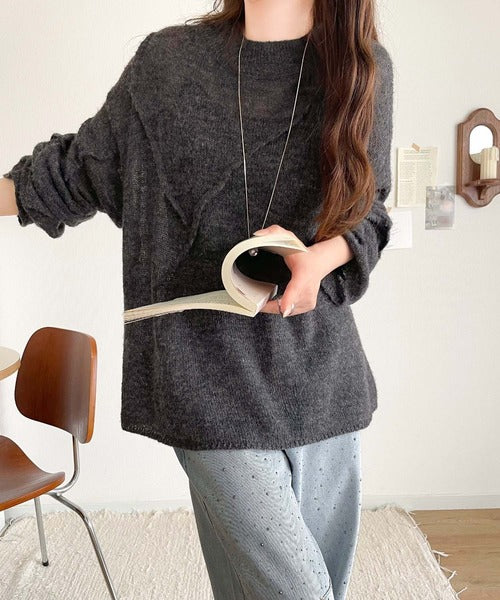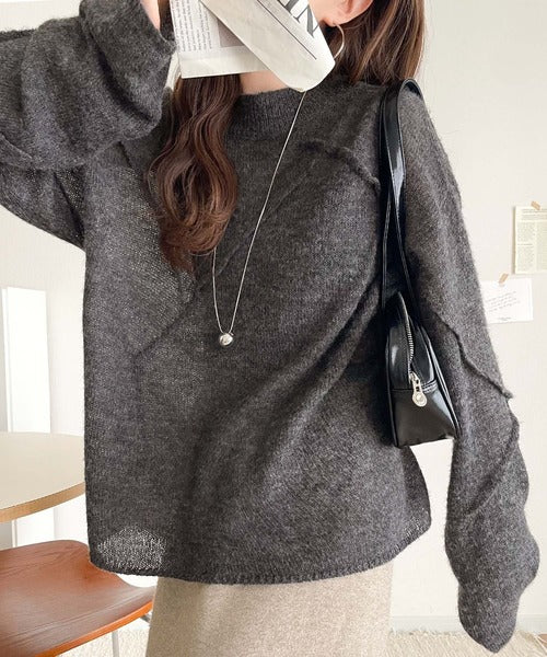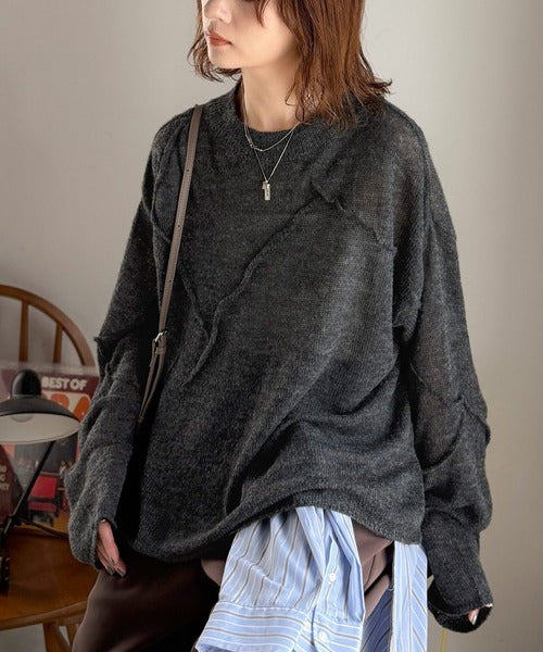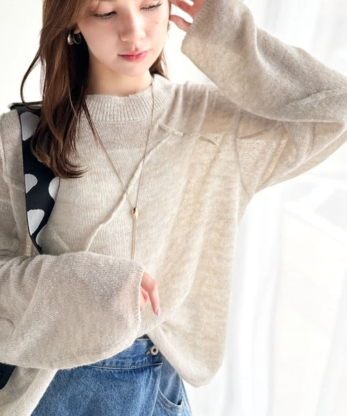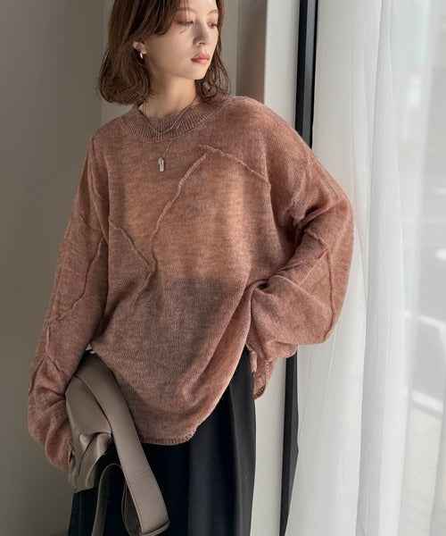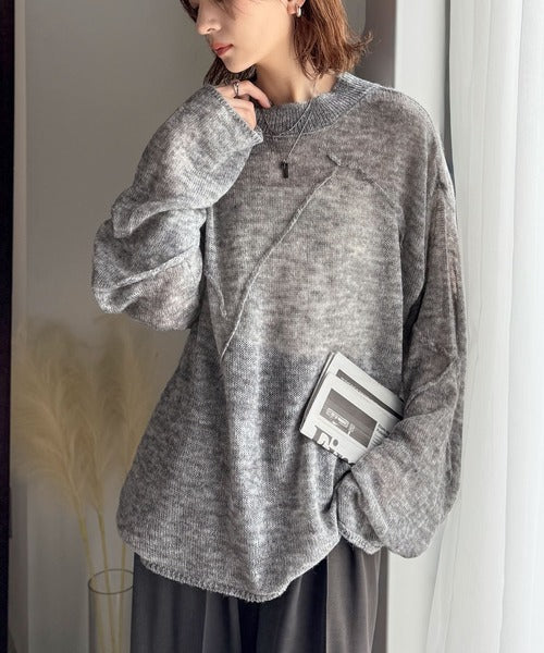 “ゆるっと”が叶える、1秒垢抜け!モヘアタッチシアー変形タック柄ニット(長袖) ce1260450