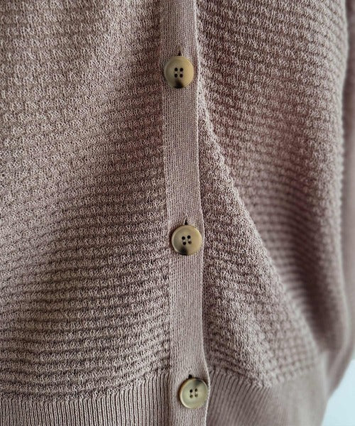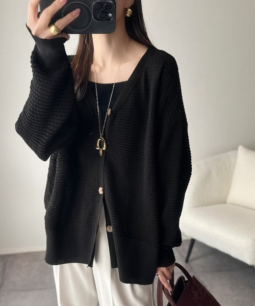 表面に変化のあるブークレ編みを贅沢に使用したニットカーディガン。