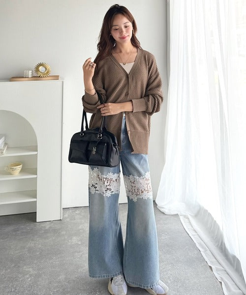 ふっくらとした立体感のある編地が、羽織るだけでコーディネートに奥行きを与えてくれます。
